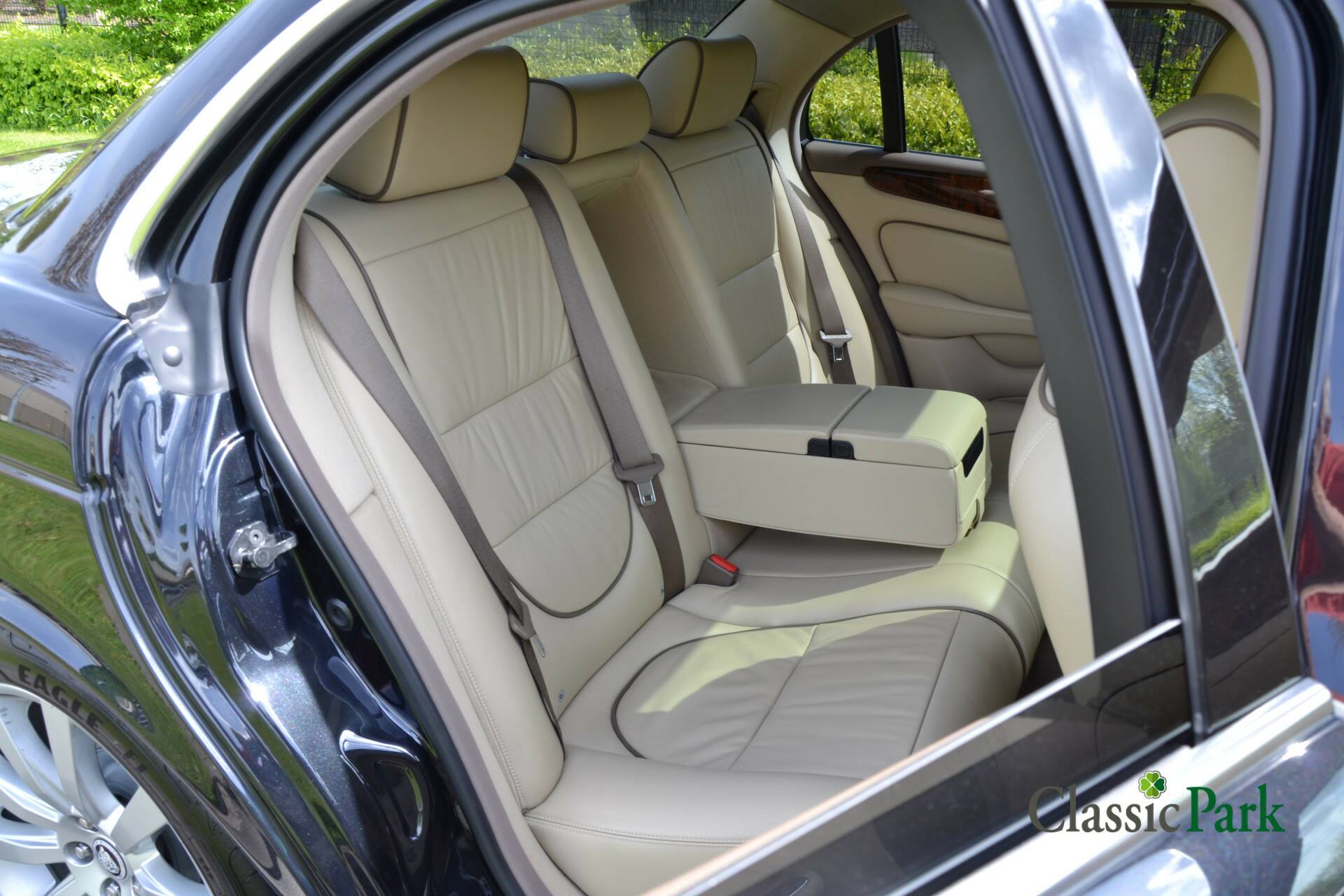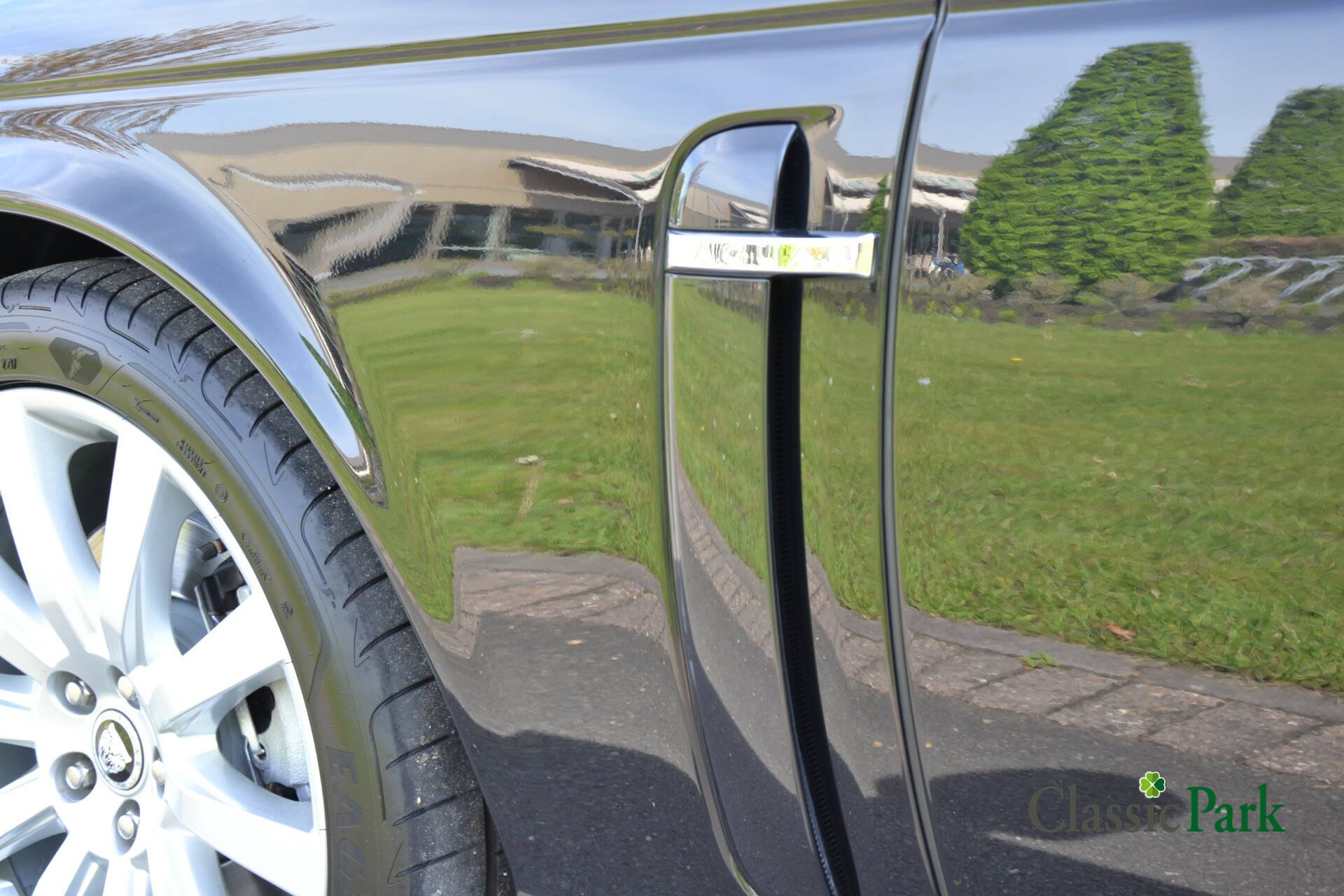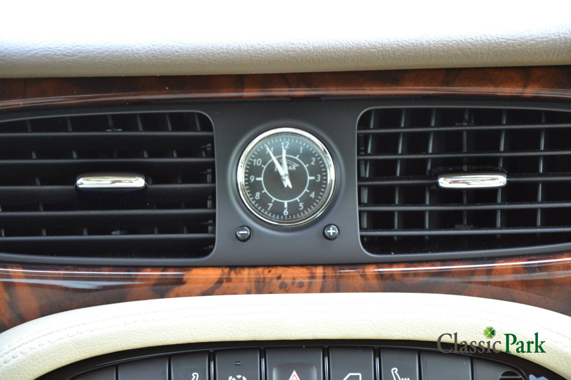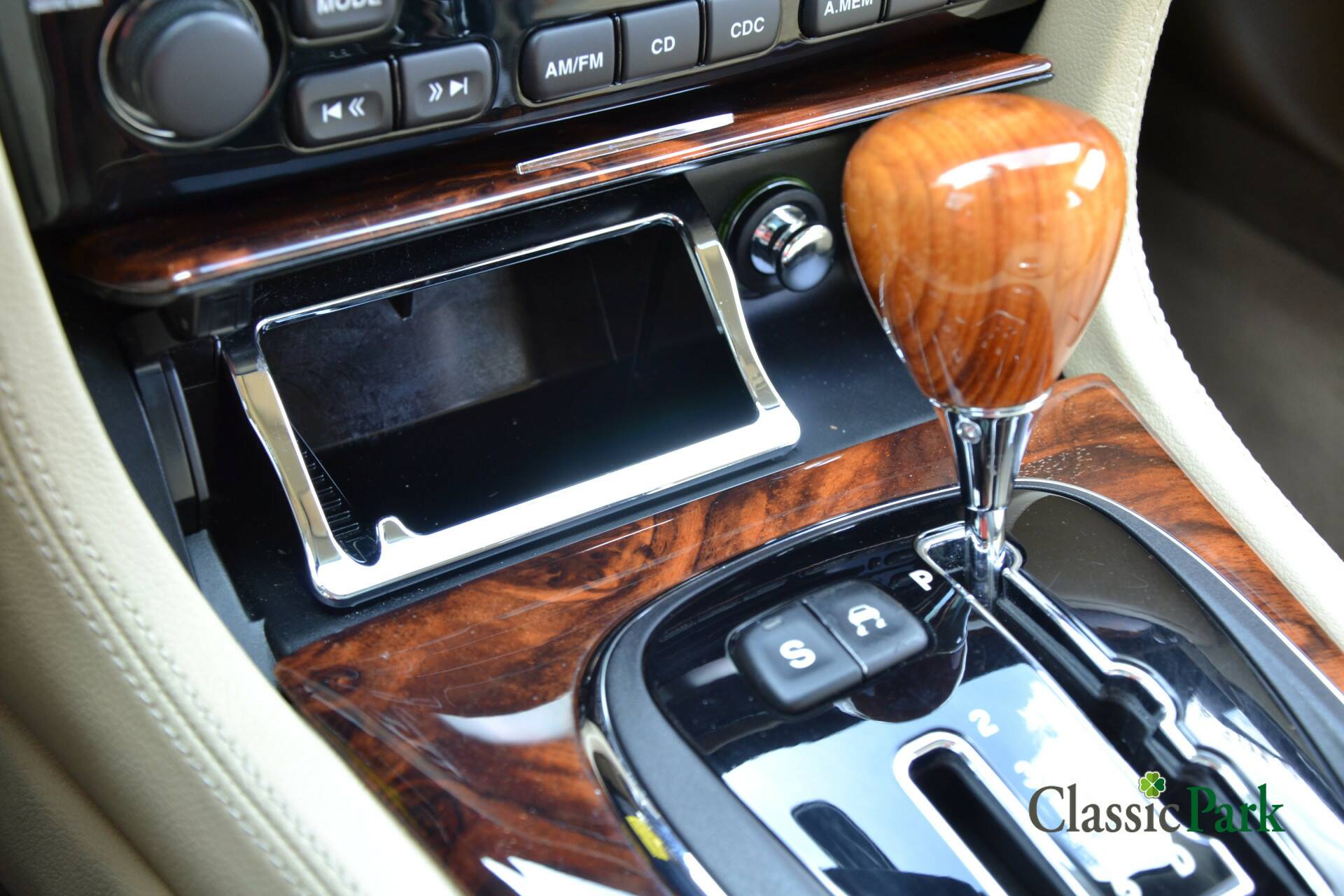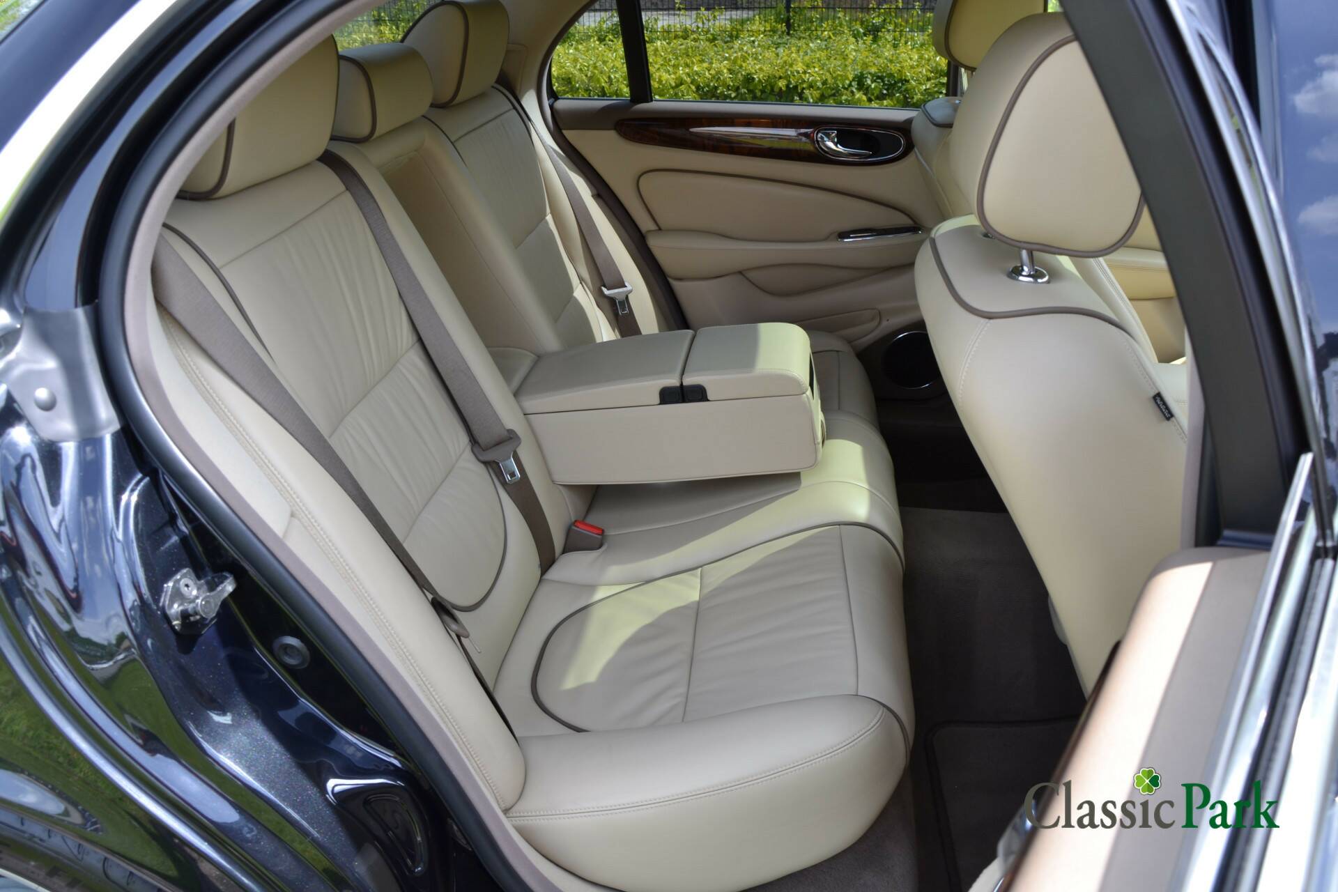This Jaguar XJ with its 2.7 liter V6 twin turbo diesel engine is pre-eminently a car for long, comfortable journeys. With its black paint and beige interior, it is extremely representative. And with its torquey diesel engine and silky-smooth automatic transmission, it's powerful and comfortable to drive. The odometer reading of 118,161 km is low for a car from 2008 with such an engine. The Jaguar sports the rich equipment from the last model years. This includes a sliding/tilting sunroof, 10-spoke alloy wheels, rear privacy glass, leather upholstery, contrast piping on the seats, heated seats, wood inlays, partial wood steering wheel, CD changer in the trunk, navigation, and much more. The whole is in very good condition.