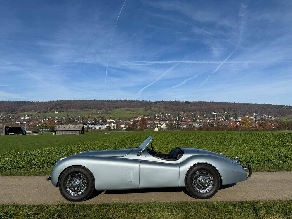 Dieser wunderschöne Jaguar XK120 OTS SE Roadster befindet sich in hervorragendem Zustand und überzeugt sowohl optisch als auch technisch. Ursprünglich in Texas an den ersten Besitzer ausgeliefert, kam der Wagen Anfang der 90er Jahre von Texas nach Deutschland, wo er komplett restauriert wurde – alles dokumentiert durch umfangreiche Bilder und Rechnungen. 2011 wechselte der XK120 in die Schweiz und 2016 wurde der Motor vollständig revidiert (Rechnung CHF 30'000.– vorhanden). Über all die Jahre wurde der Wagen regelmässig gefahren und stets äusserst sorgfältig gepflegt. Der XK ist sehr gut dokumentiert, inklusive Heritage Trust Certificate und zudem handelt es sich um die seltene SE-Version - Matching Numbers! Dieser Jaguar ist nicht nur ein echtes Bijou, sondern auch ein Traum zum Fahren. MFK 10.2024 Veteran!