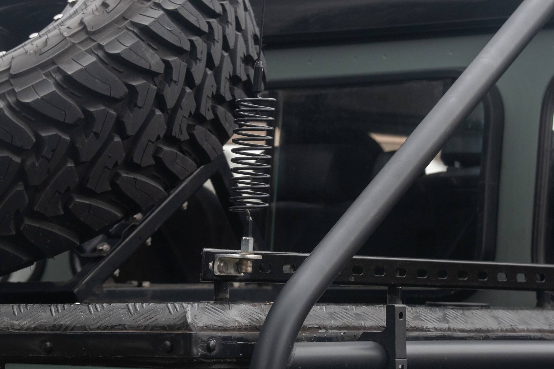 Bespoke wheel carrier and back lid for secure and practical storage.