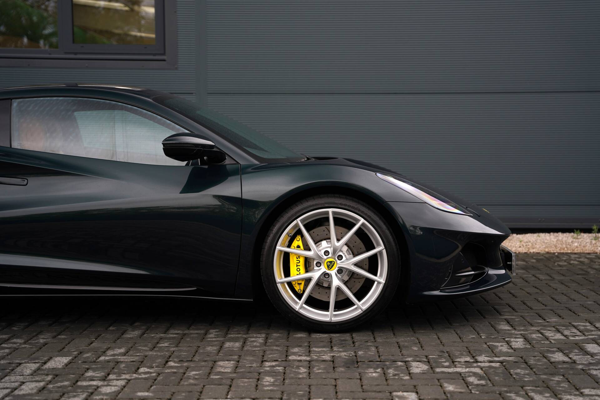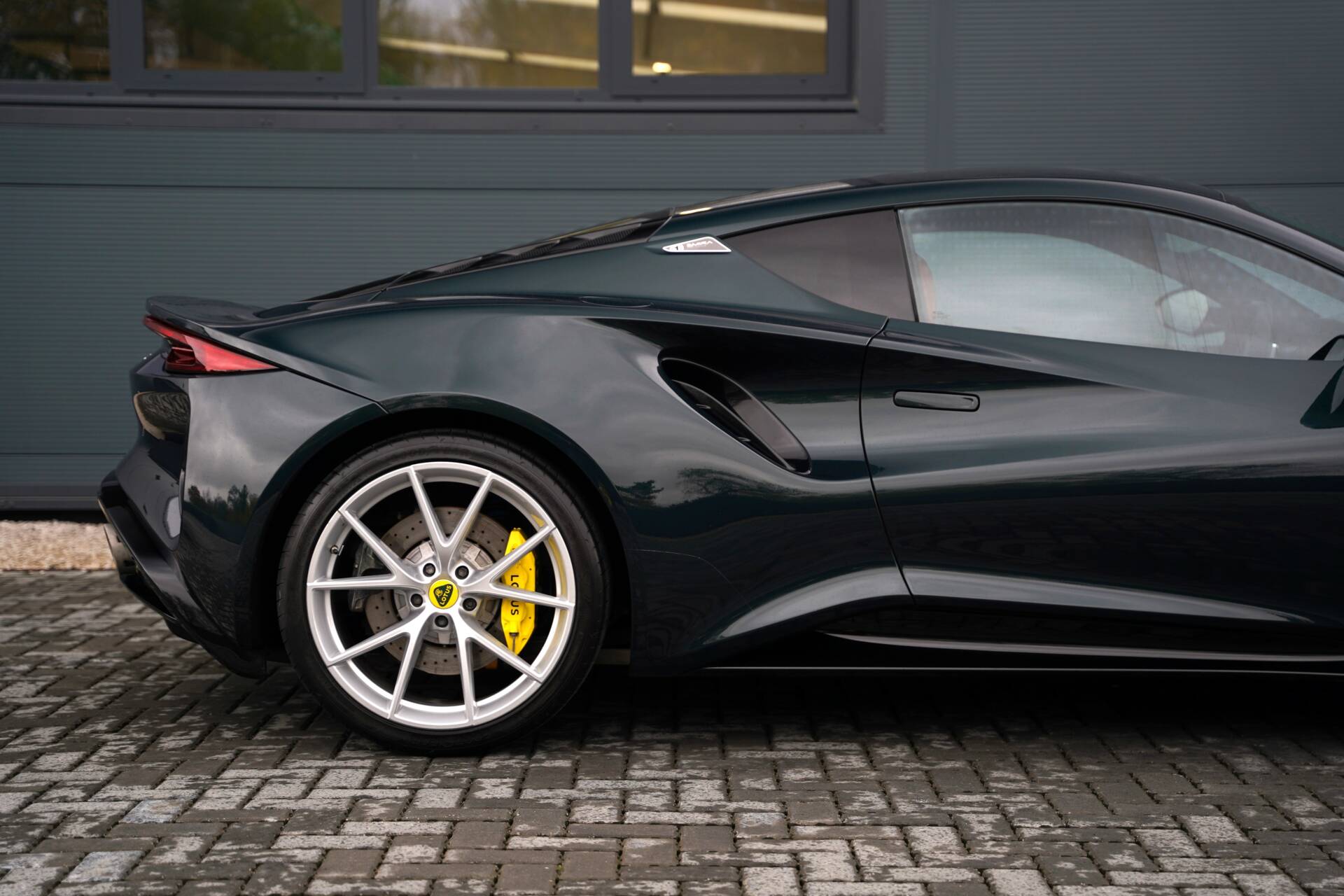 This particular Emira is finished in the fantastic colour of Verdant Green, without Black Pack, and with freshly refurbished, bright silver ultra-lightweight forged wheels. The interior is finished in the equally fantastic Saddle Tan leather with a black highlights and carpet.
