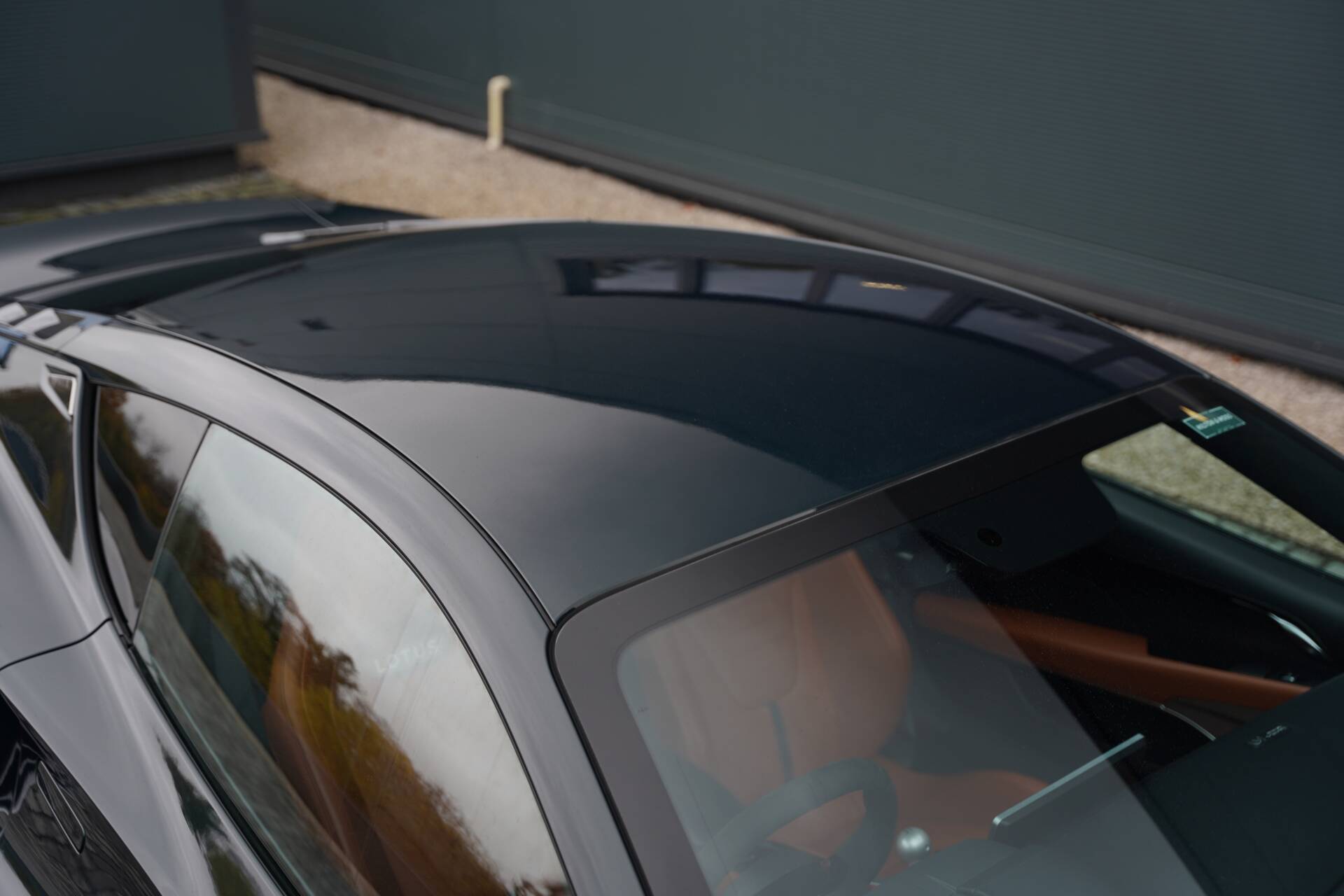 This Emira is fitted with a 6-speed manual gearbox and the Touring suspension and is finished with yellow brake calipers. This car is specified with a number of packs. The Convenience Pack brings with it front and rear parking sensors, reversing camera, rain sensing wipers and auto dimming rear view and wing mirrors. The Design Pack brings privacy glass, sports pedals, black alcantara headlining and Emira branded floor mats, as well as the lightweight wheels and contrast brake calipers. Finally, the Drivers Pack includes Track Mode with display, switchable exhaust modes and in this specific model, a Limited-Slip Differential (LSD).