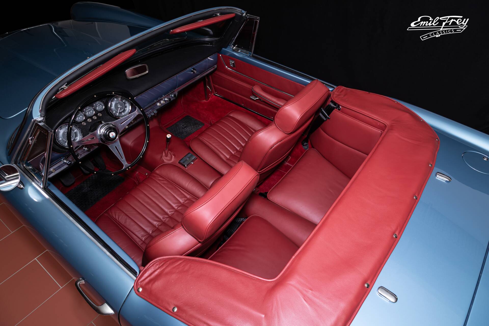 Der angebotene Spyder begann sein Leben in Italien und ging 1983 nach Deutschland. 1994 kam der Wagen schliesslich in die Schweiz und wurde in mehreren Etappen bei lokalen Spezialisten umfassend restauriert. Es sind alle Belege seit 1994 vorhanden; zusätzlich dokumentiert das offizielle Maserati-Zertifikat die Ursprungsspezifikation, welche das Fahrzeug aktuell präsentiert.