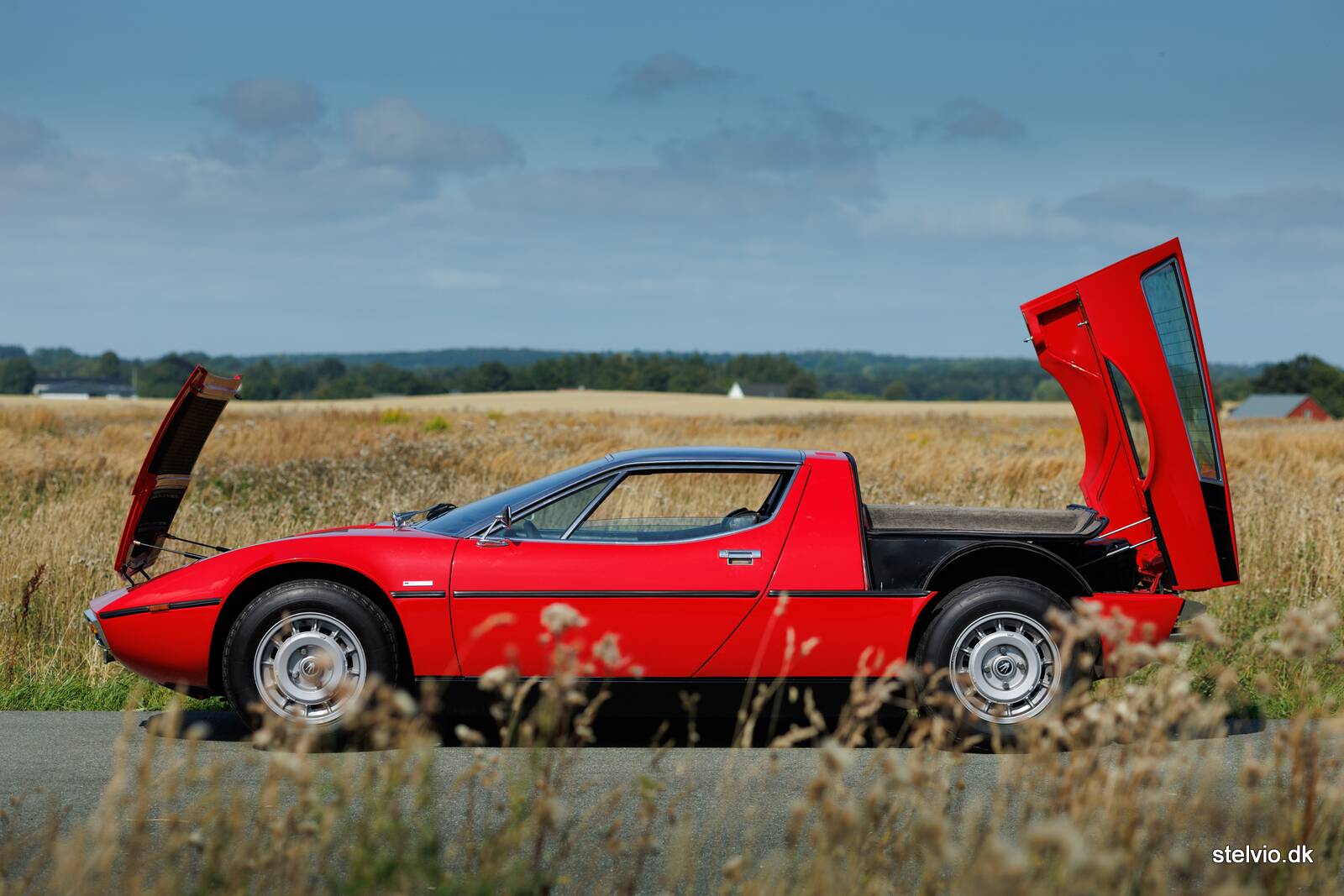 When Maserati in March 1971 presented the Tipo AM 117 at the Geneva Motor Show, it was a quantum leap in both technology and design. Maserati’s first mid-engine car with independent suspension all around and a beautiful body designed by no less than Giorgetto Giugiaro, with superior details such as a stainless steel roof and a Cv value of only 0.30. Equipped with Maserati’s own powerfull 4.7 liter V8 engine in aluminum with roots from the 450S racing car, equipped with four overhead camshafts and 4 double Weber carburetors. In the best Maserati tradition, the model was named after a wind – in this case the “Bora”.