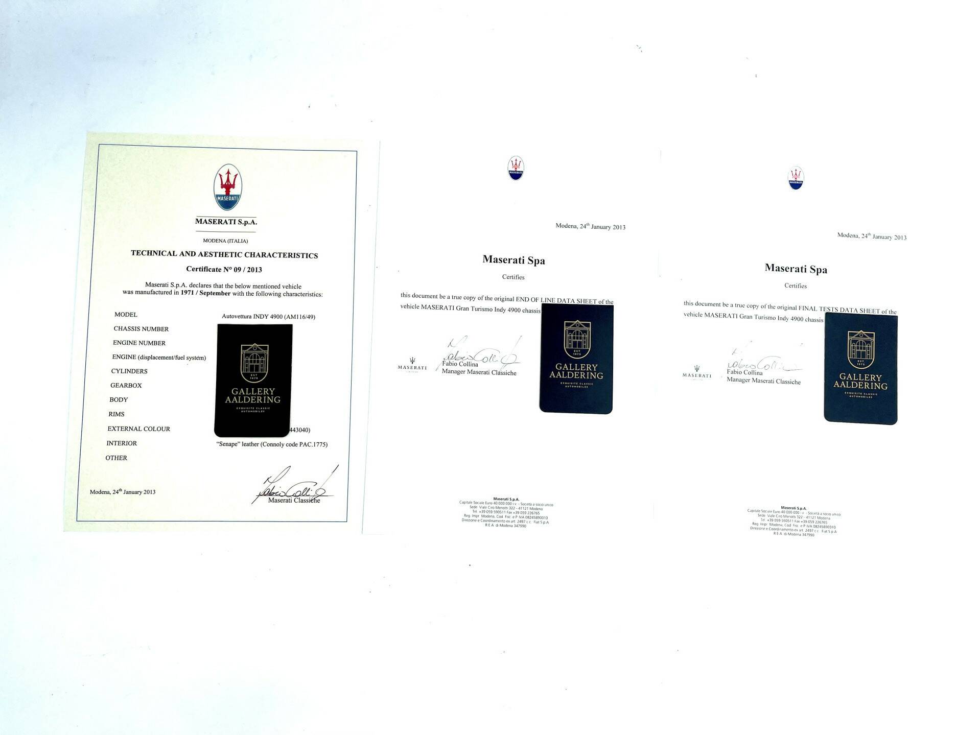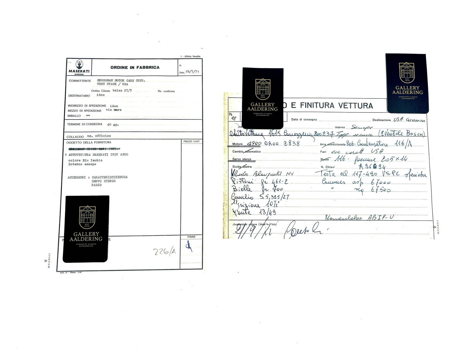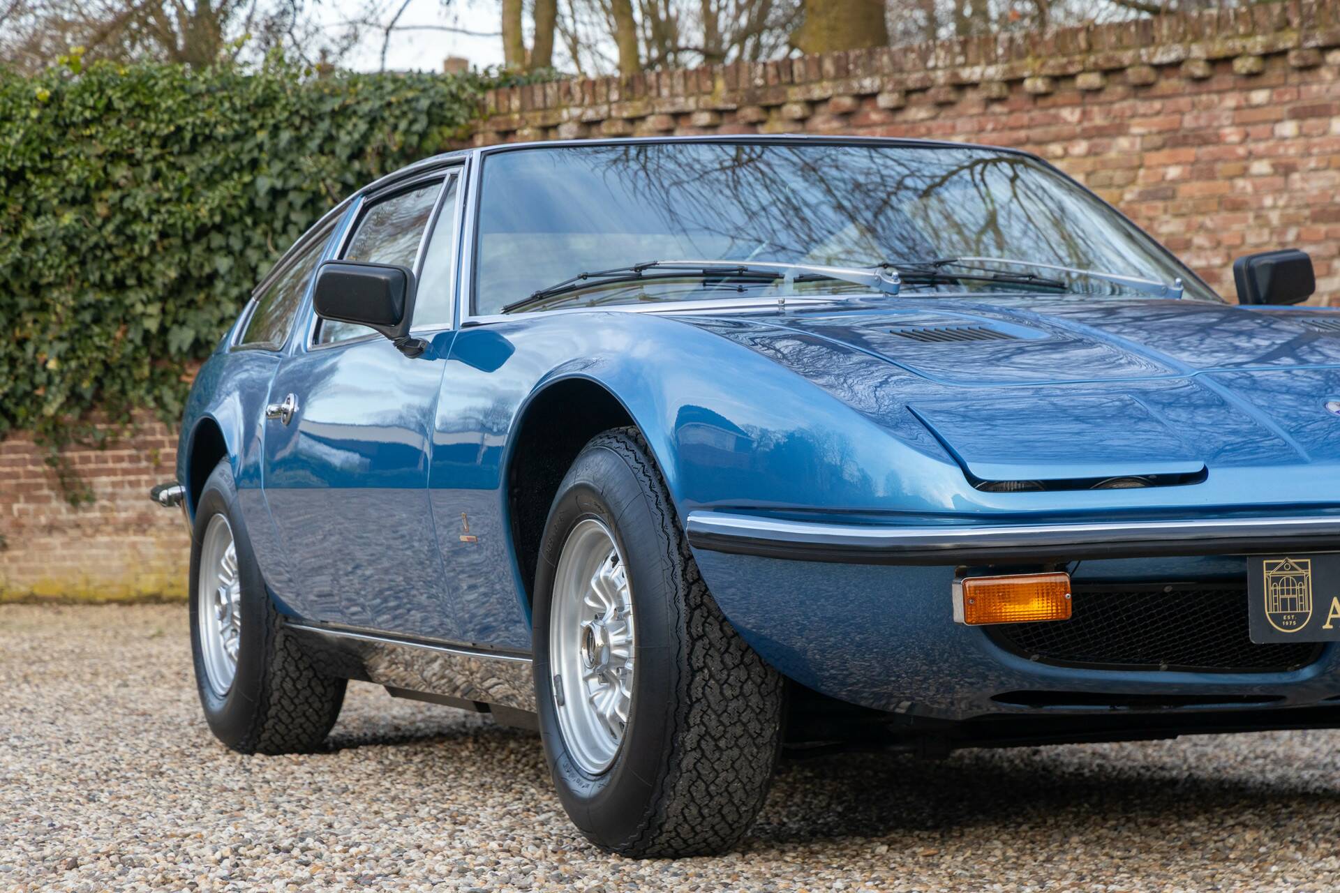 Maserati Indy America 4900 "Blu Ischia" Accompanied by the “Internal Factory Order” with all certificates Maserati Classiche, Restored by a reputable specialist in the Netherlands,Factory-version with power steering, "Blu Ischia with Rosso Senape leather" - Stability and vigorous, One of 39 US-market cars equipped with five-speed ZF gearbox, "Quintessential Grand Tourer combining room for four adults",