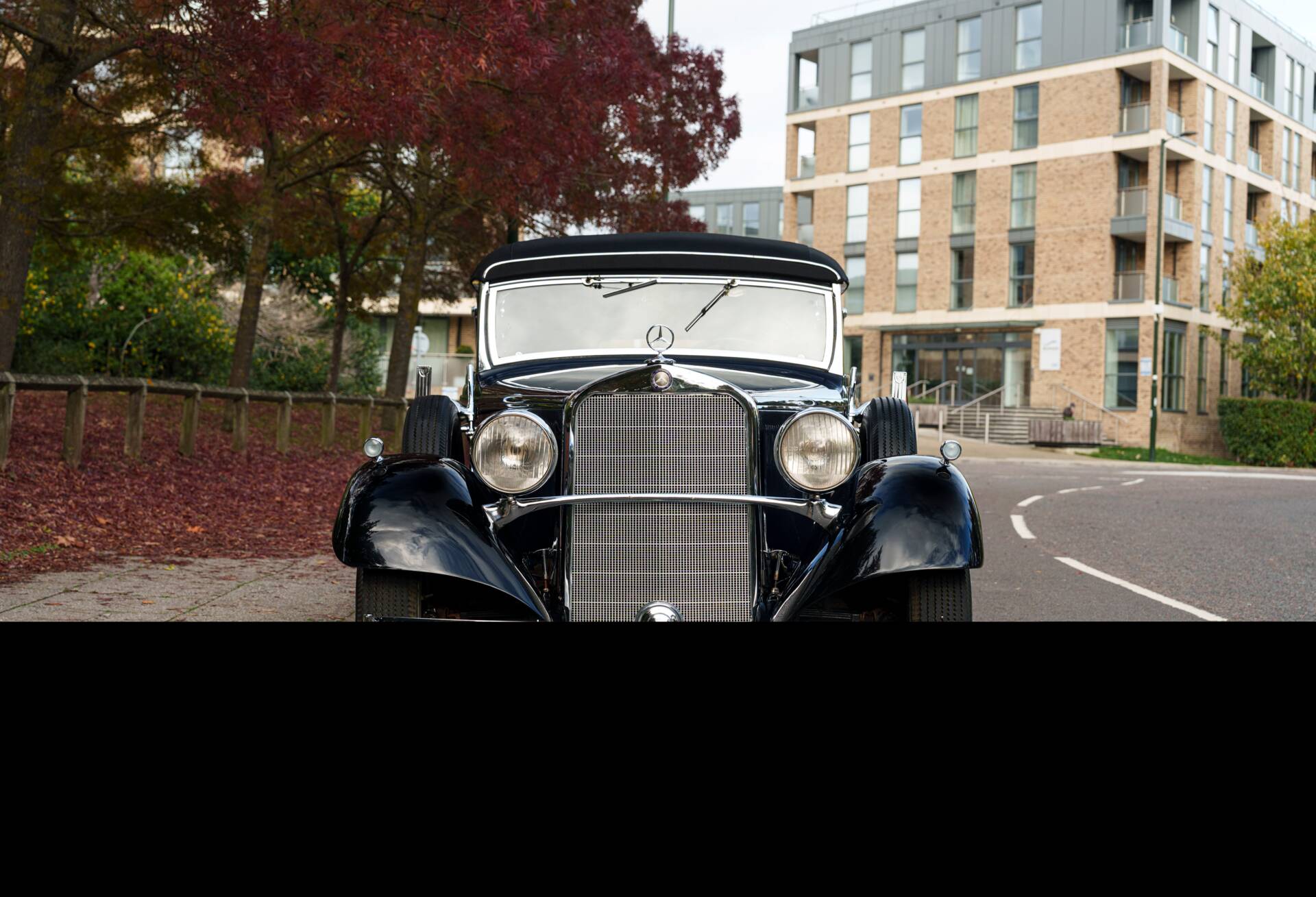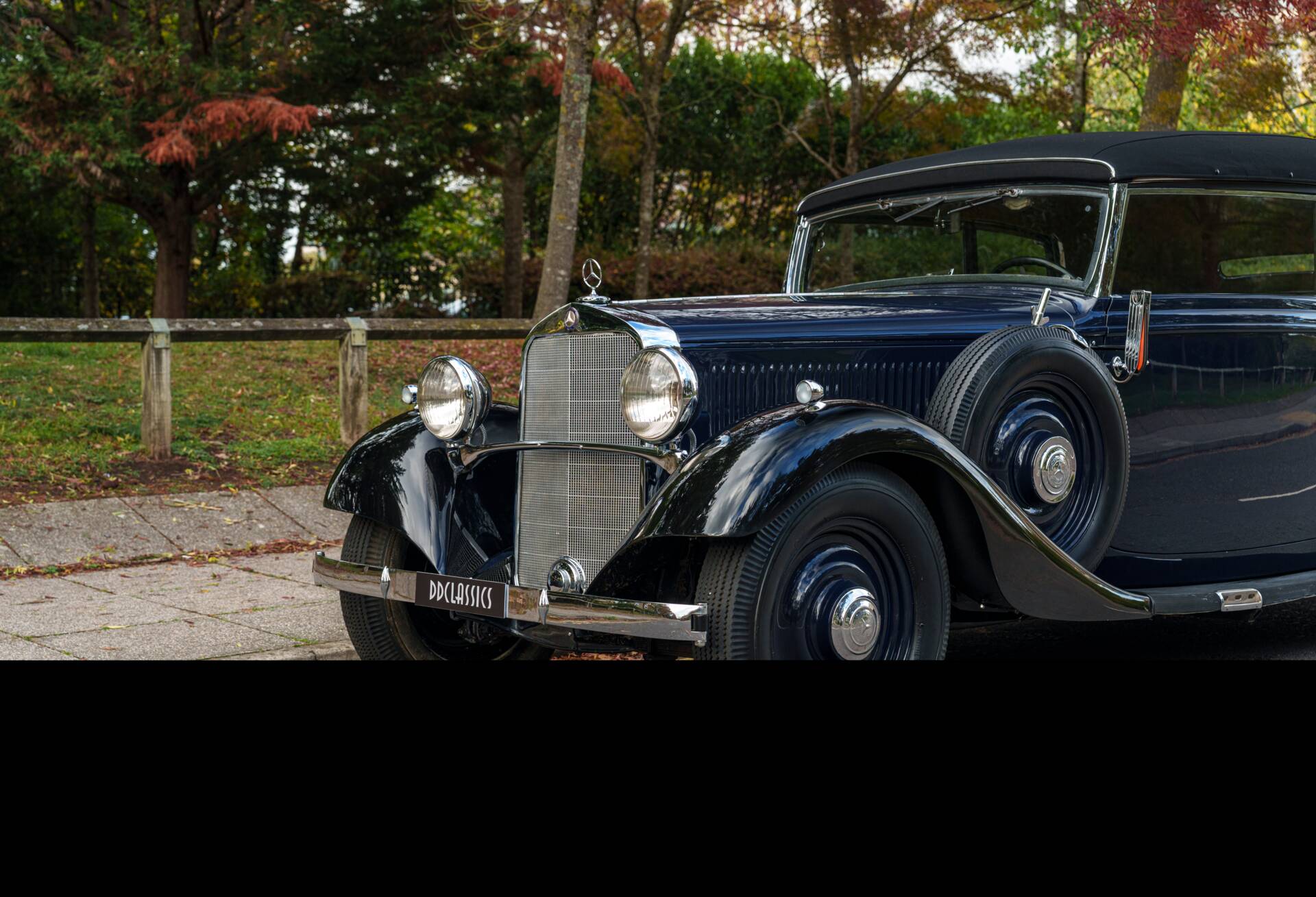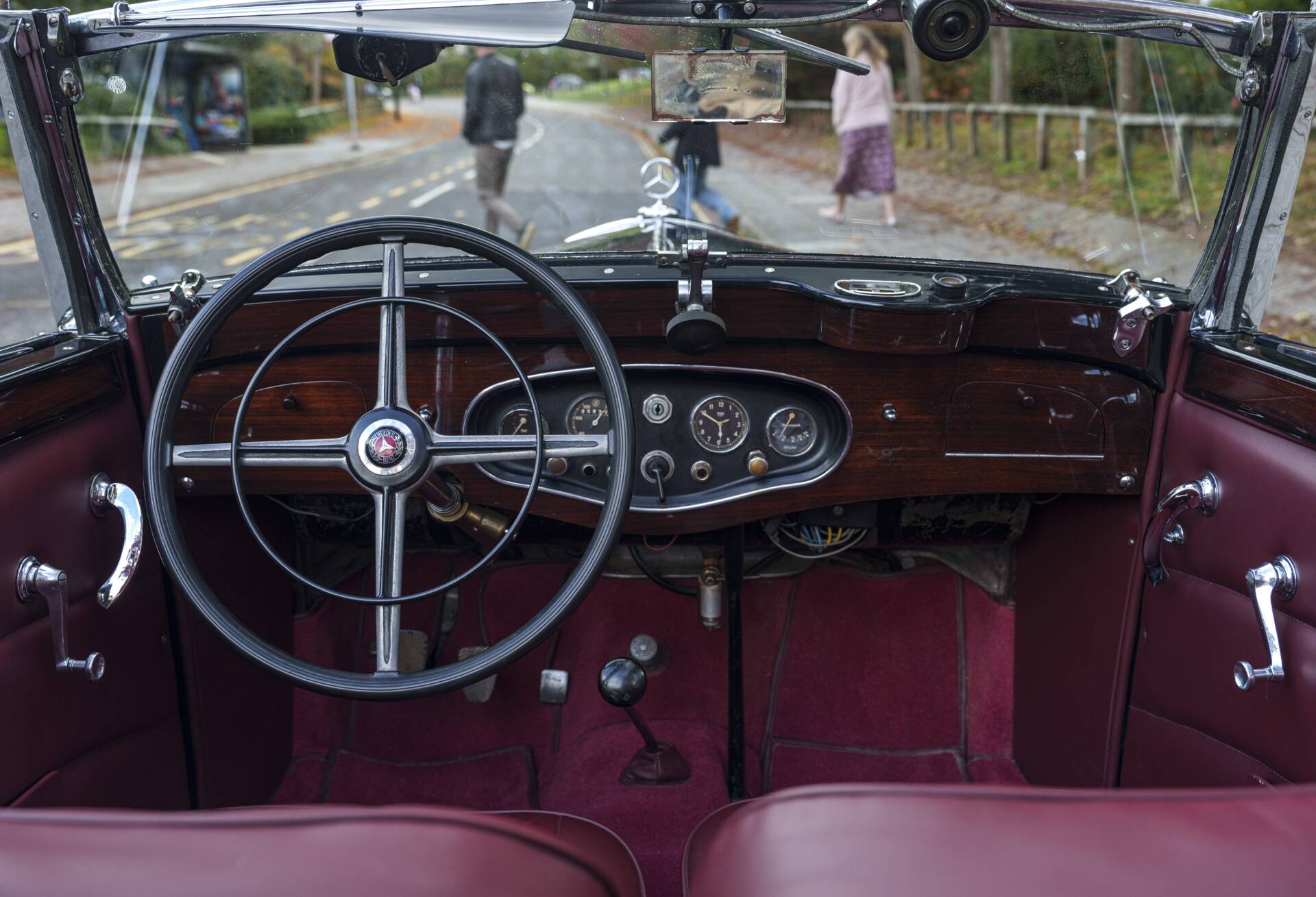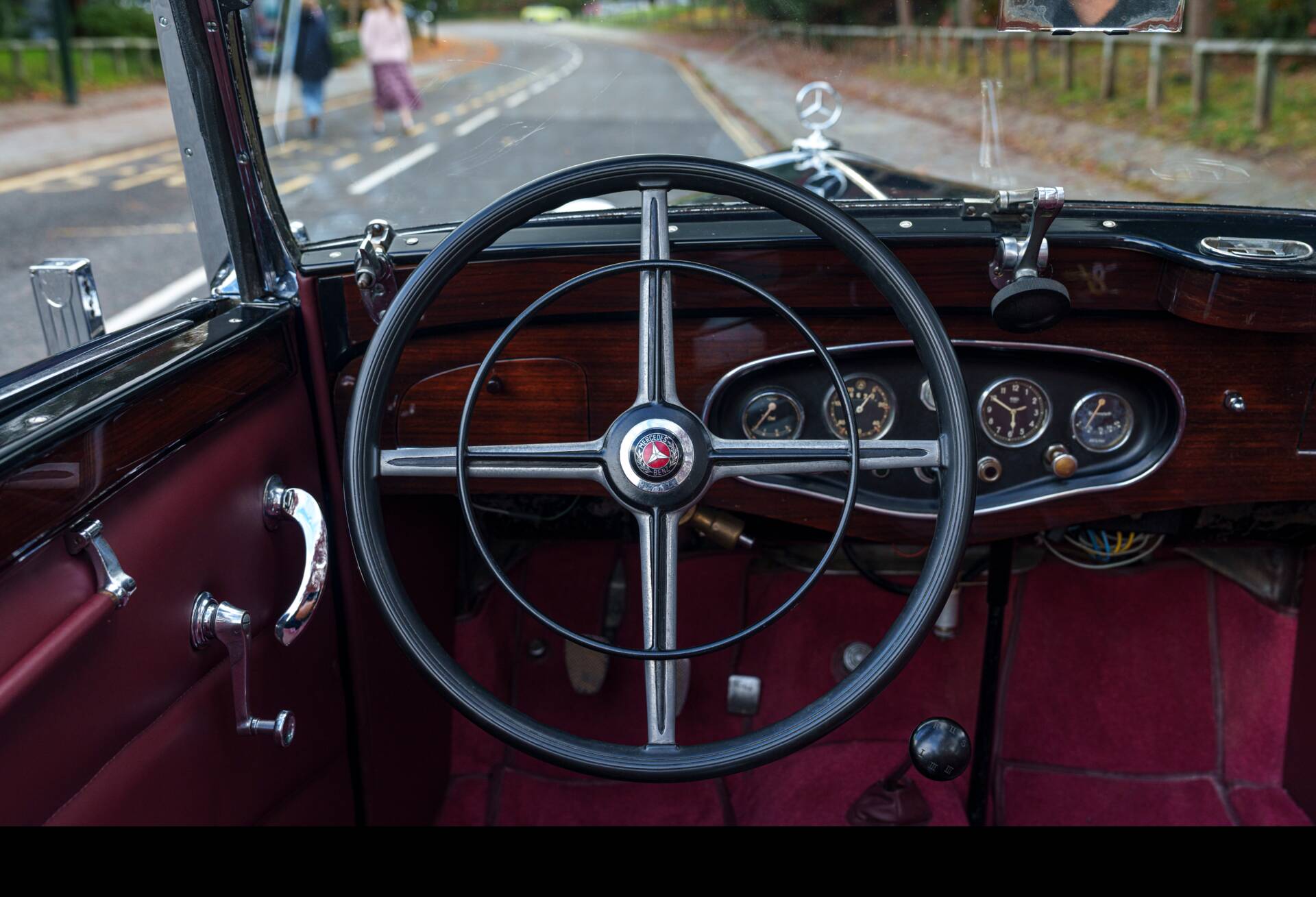 This particular example, first registered in 1935, is one of the desirable long wheelbase versions introduced from 1934. Under the bonnet lies Mercedes’ smooth 6-cylinder 2,089 cc engine, producing around 40 horsepower — enough to deliver composed, effortless performance that made the model a favourite among discerning drivers of the period. The side-opening bonnet panels and detailed coachwork speak to a time when craftsmanship and design were inseparable.