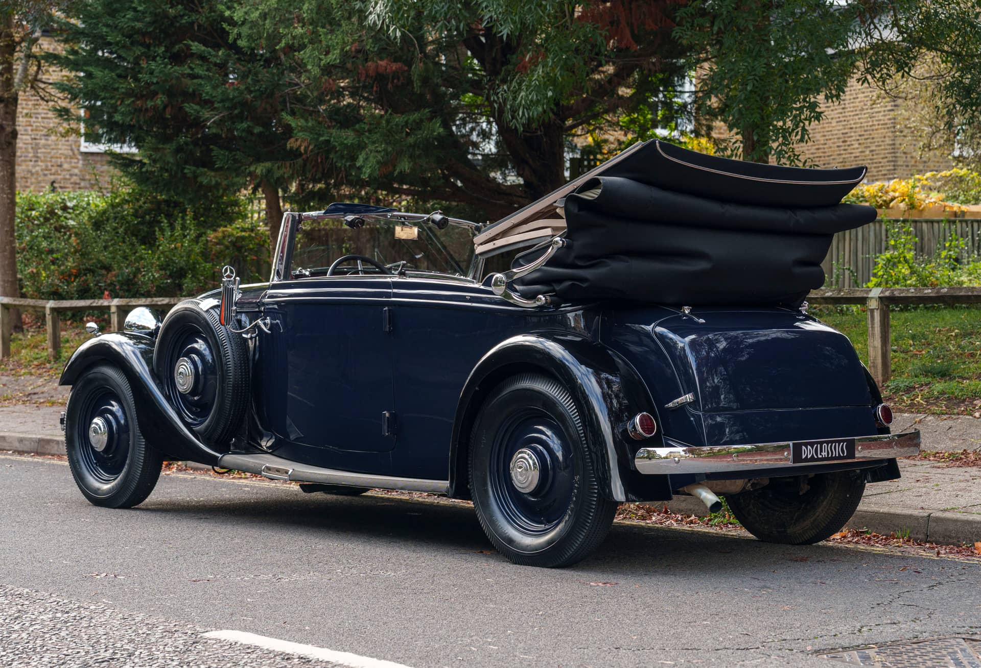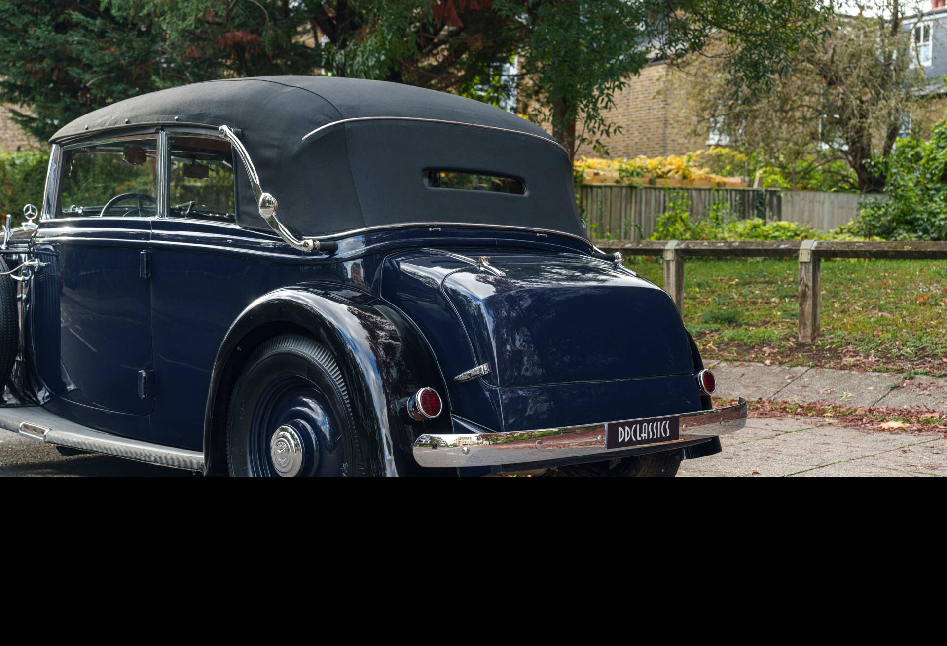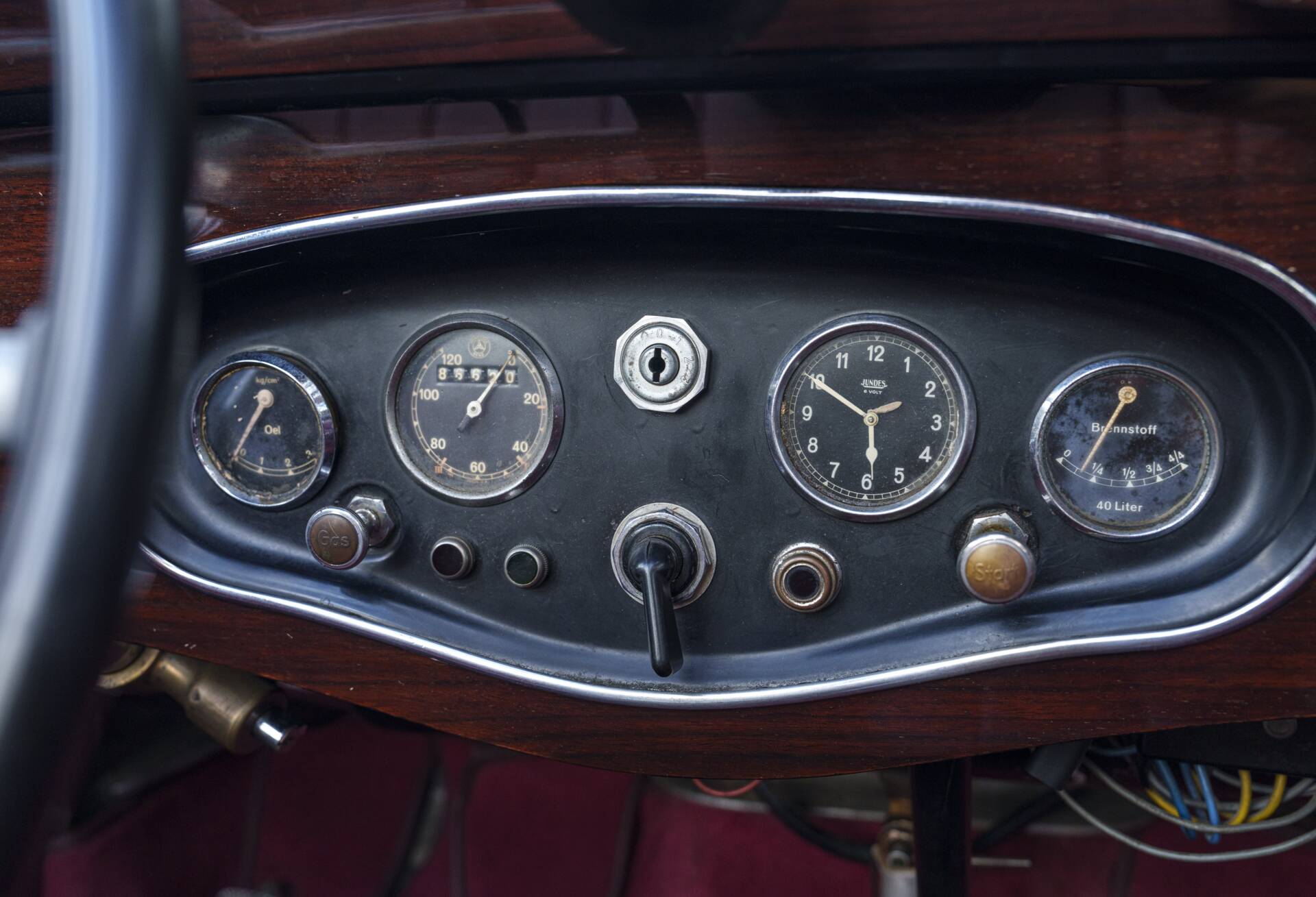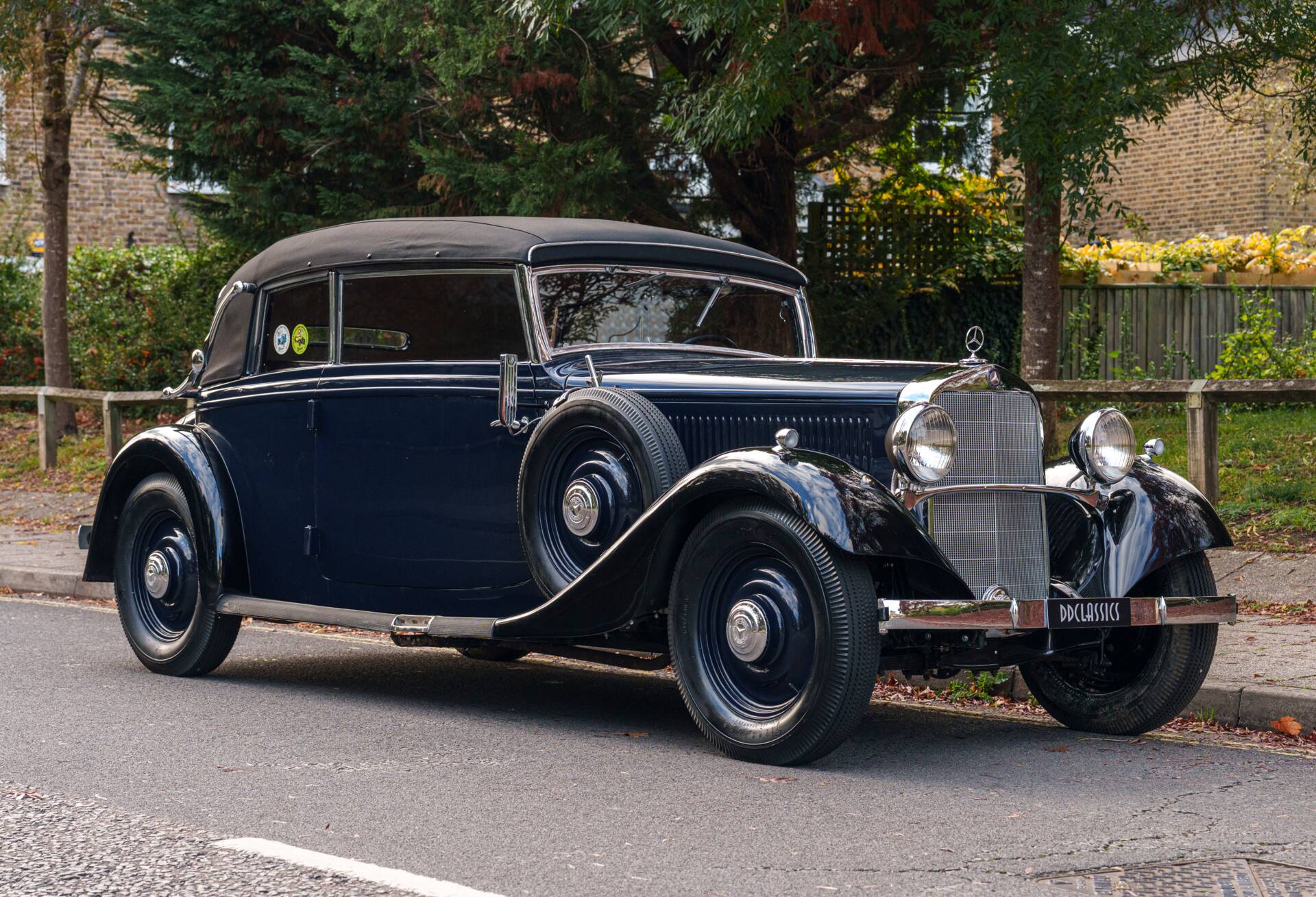 This particular example, first registered in 1935, is one of the desirable long wheelbase versions introduced from 1934. Under the bonnet lies Mercedes’ smooth 6-cylinder 2,089 cc engine, producing around 40 horsepower — enough to deliver composed, effortless performance that made the model a favourite among discerning drivers of the period. The side-opening bonnet panels and detailed coachwork speak to a time when craftsmanship and design were inseparable.