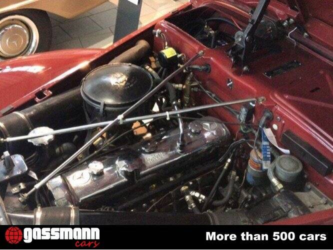 Dieses klassische Fahrzeug wurde am 23. Mai 1952 produziert und am 30. Mai 1952 nach Stockholm, Schweden ausgeliefert in Mercedes-Rot (DB 526), braunes Leder (1056) und beigefarbenes Stoffdach (979).