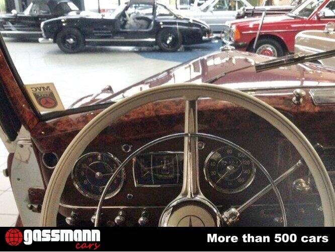 In den Anfang der 90er Jahre wurde das Fahrzeug einer umfassenden Restauration unterzogen. Die Ledersitze scheinen original zu sein und wurden damals fachmännisch aufgearbeitet sie präsentieren sich heute mit einer besonders schönen Patina, die dem Fahrzeug Charakter und Authentizität verleiht. Anhand der vorliegenden Bilder schätzen wir die damaligen Kosten auf rund 100.000 EUR. Heute würde diese Arbeit deutlich mehr kosten!