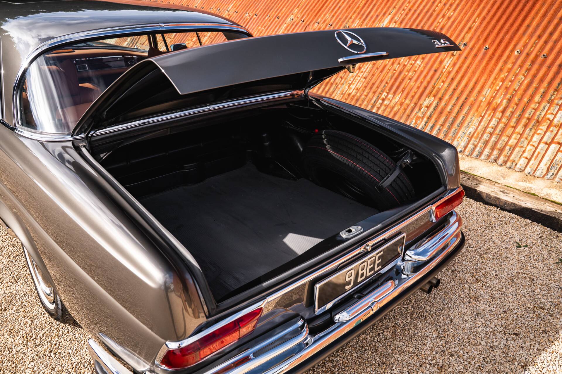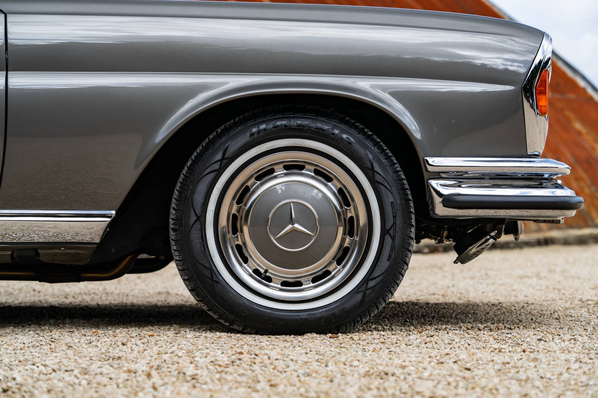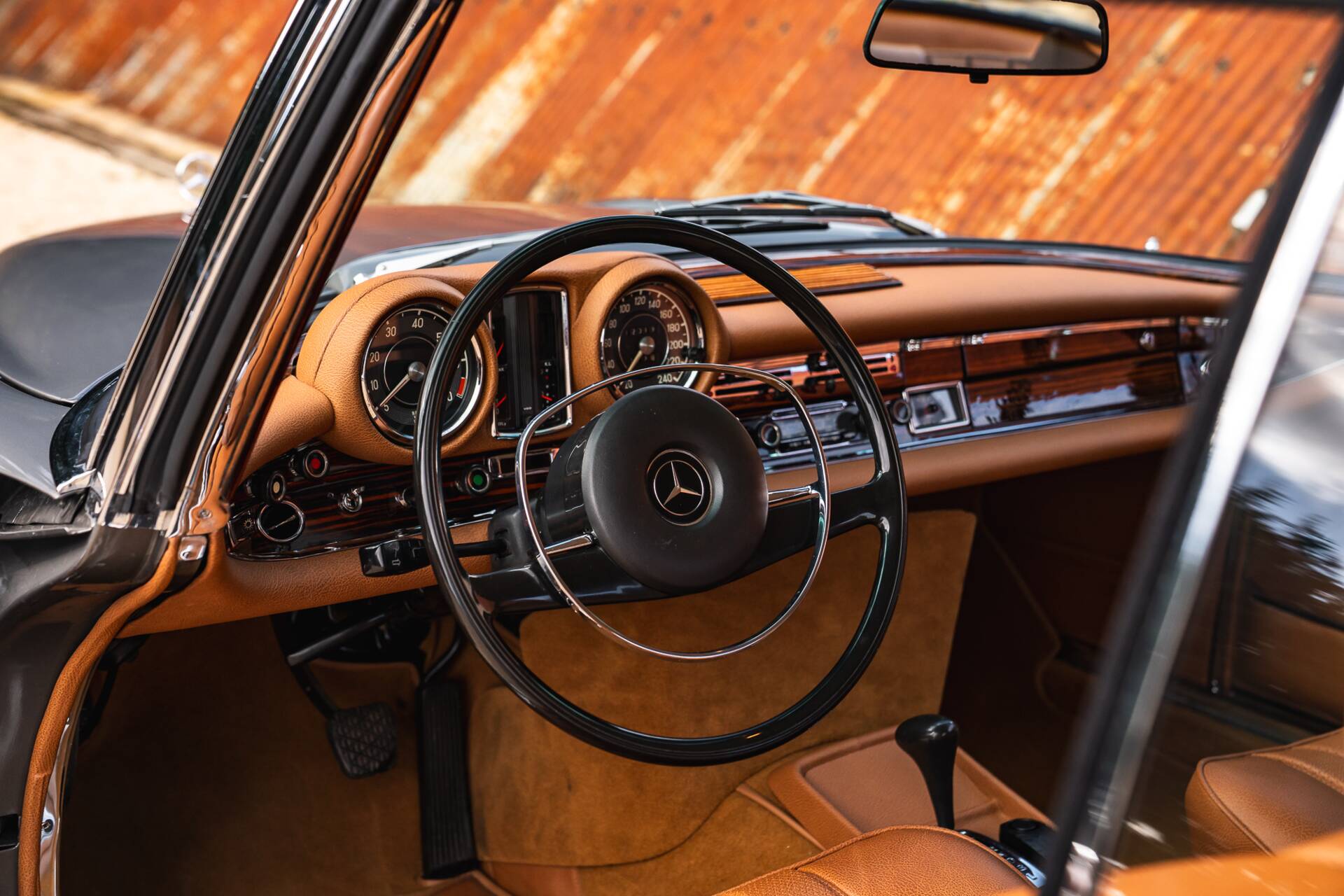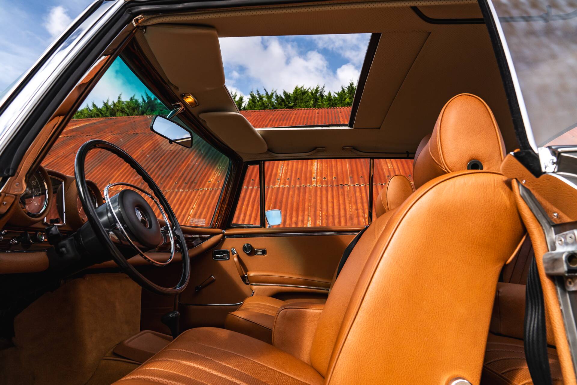 Mechanically, the car is equally impressive. Its 3.5-litre V8 was overhauled by respected Mercedes specialist Peter Finkemeyer, with a complete rebuild including pistons, bearings, gaskets, and valve seats. Suspension, steering, braking, and fuel systems were all rebuilt, while the gearbox and rear axle were serviced and resealed. The result is a car that not only looks spectacular but also drives with the refinement and vigor expected of a freshly delivered 280 SE 3.5.