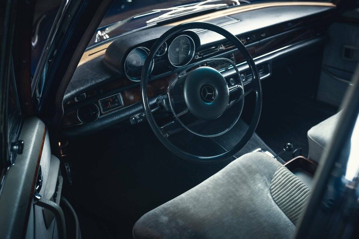 Mercedes-Benz 300 SEL 6.3 – Luxus mit Leistung. Der 300 SEL 6.3 von 1968 vereint den Komfort einer Oberklasse-Limousine mit der Kraft des legendären V8 aus dem 600 Pullman. Feines Holzdekor, edle Stoffausstattung und – wir finden – eines der schönsten und elegantesten Lenkräder aller Zeiten machen ihn zu einer automobilen Ikone: kraftvoll, stilvoll und seiner Ära weit voraus.