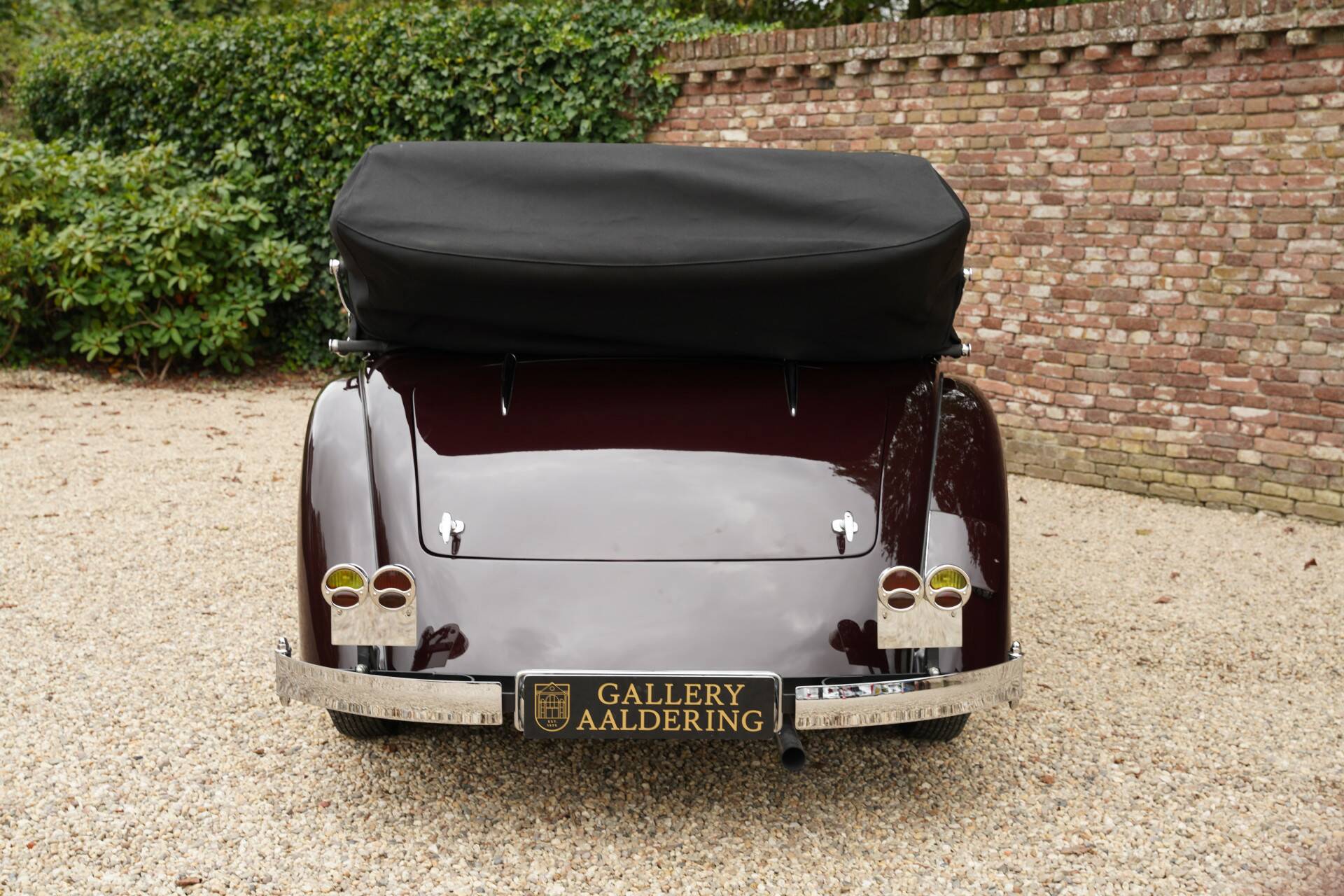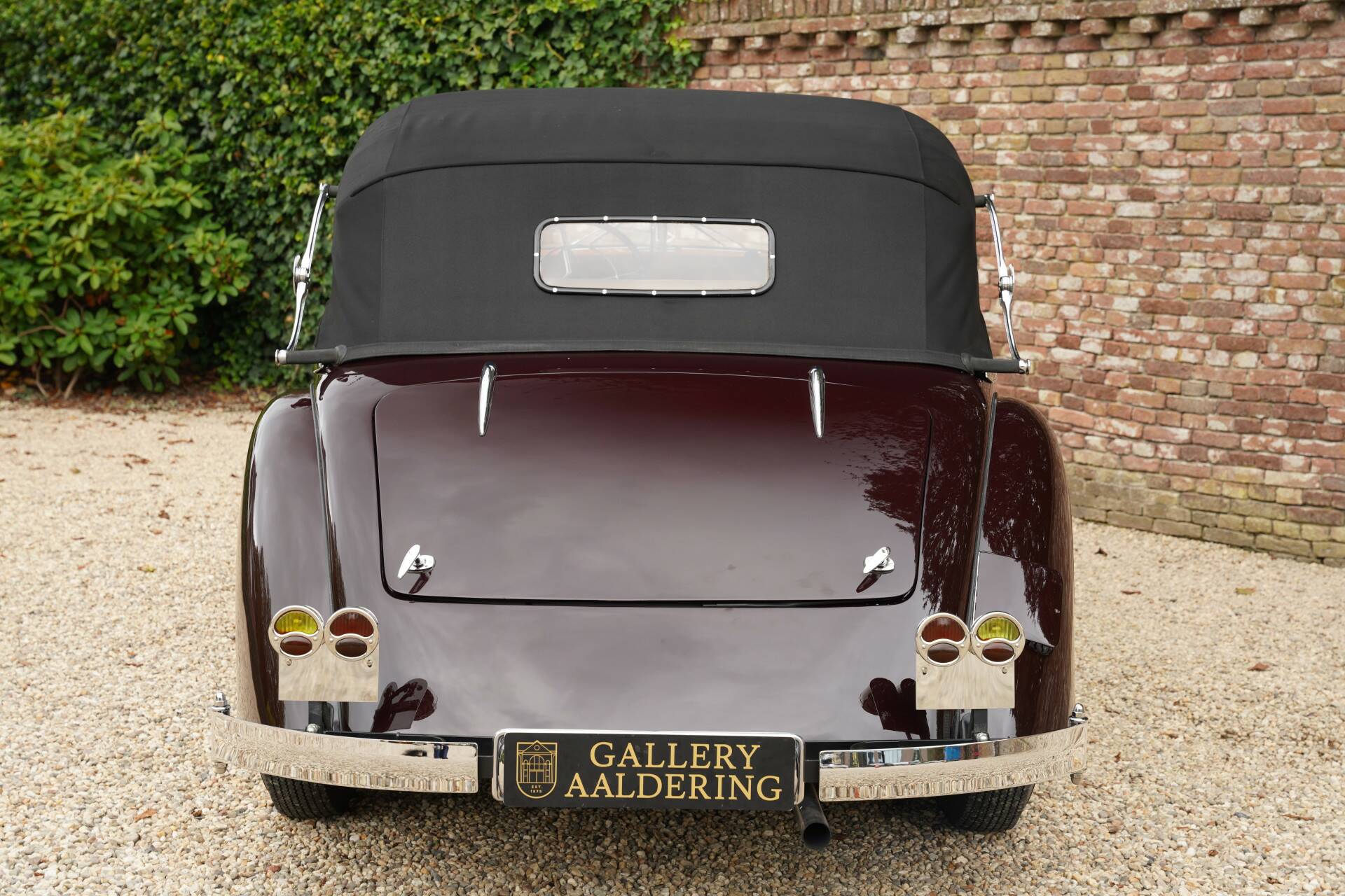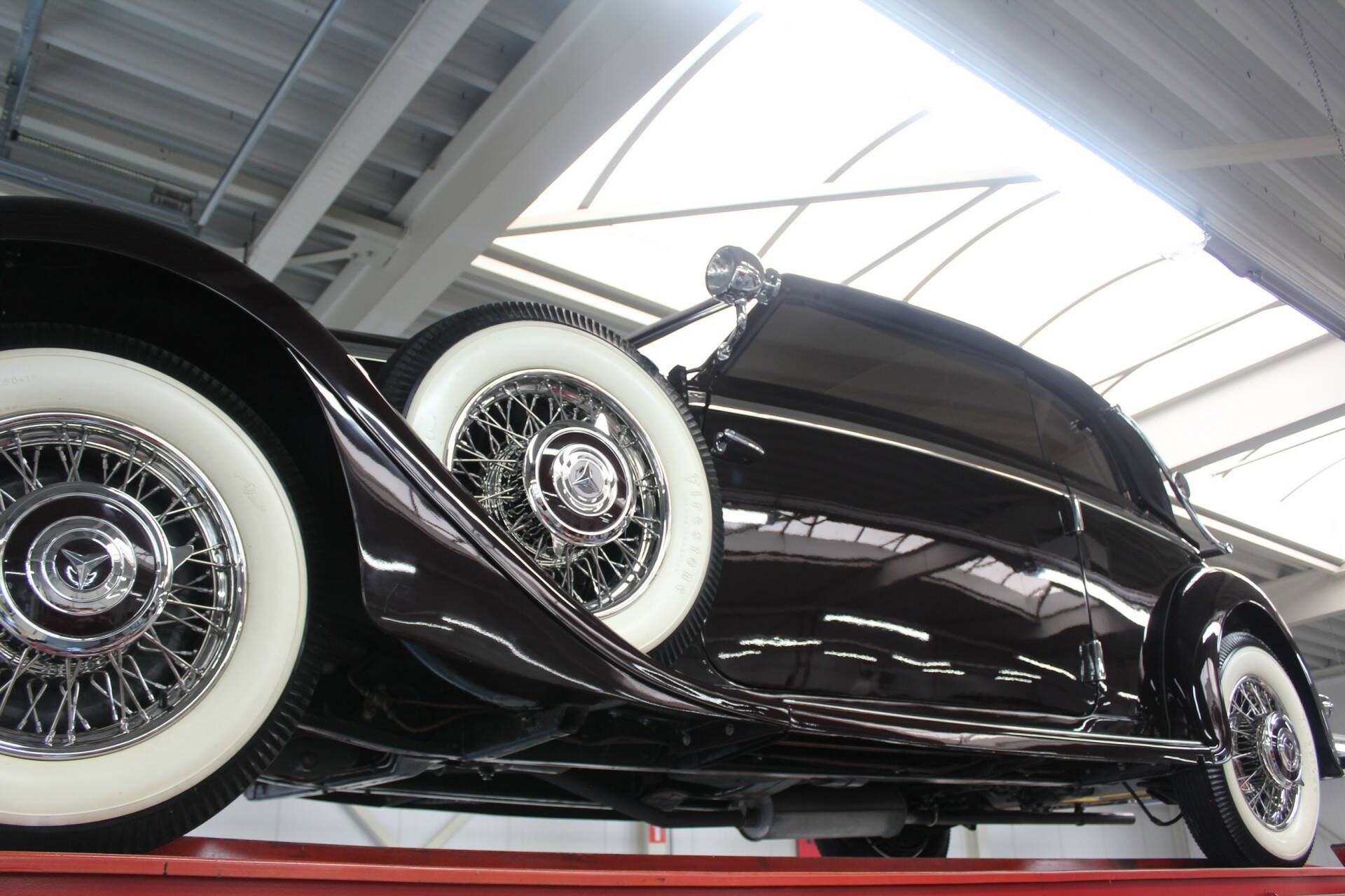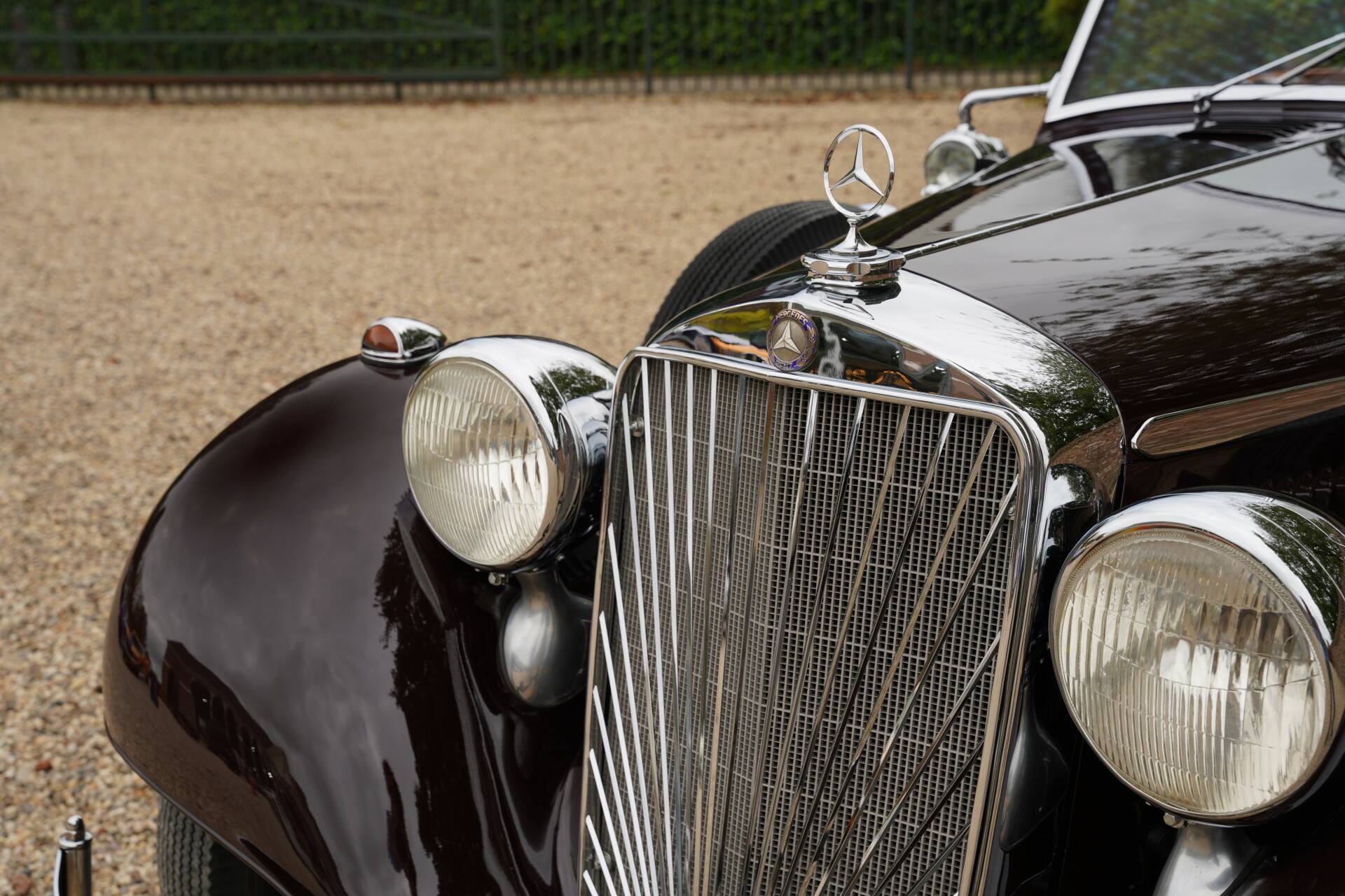 No detail was overlooked in restoring this Mercedes-Benz to its former glory. The extensive restoration and mechanical overhaul, spanning several years, included a complete renewal of the woodwork. The engine has been fully rebuilt, and the entire vehicle has been brought to fantastic condition. The restoration was executed by leading specialists, evident in the exceptional quality of workmanship. An extensive photo album documenting the restoration process is available, showcasing the meticulous care and attention lavished on this automobile. The car is now in absolute top condition and ready to dazzle at any concours event.