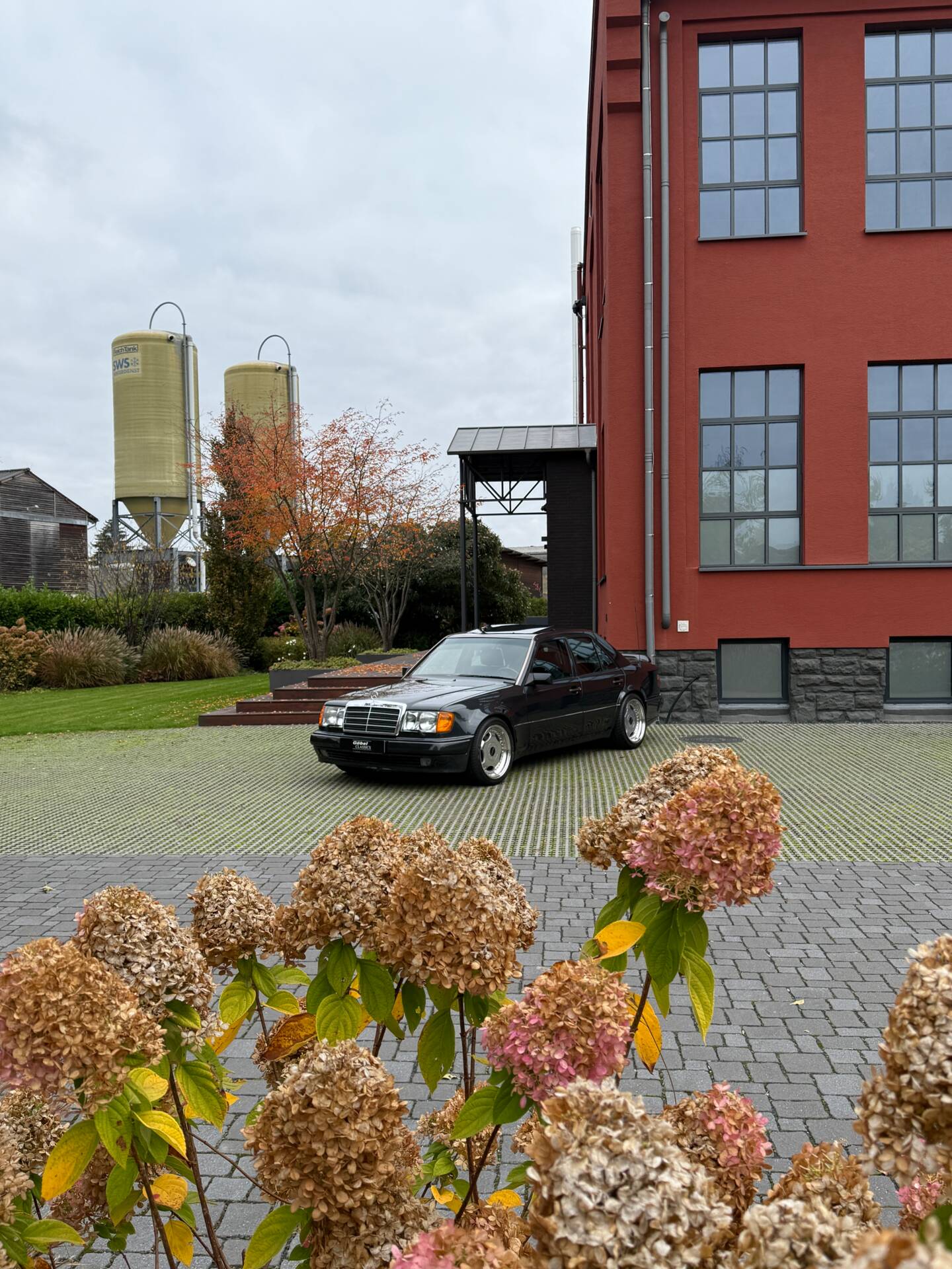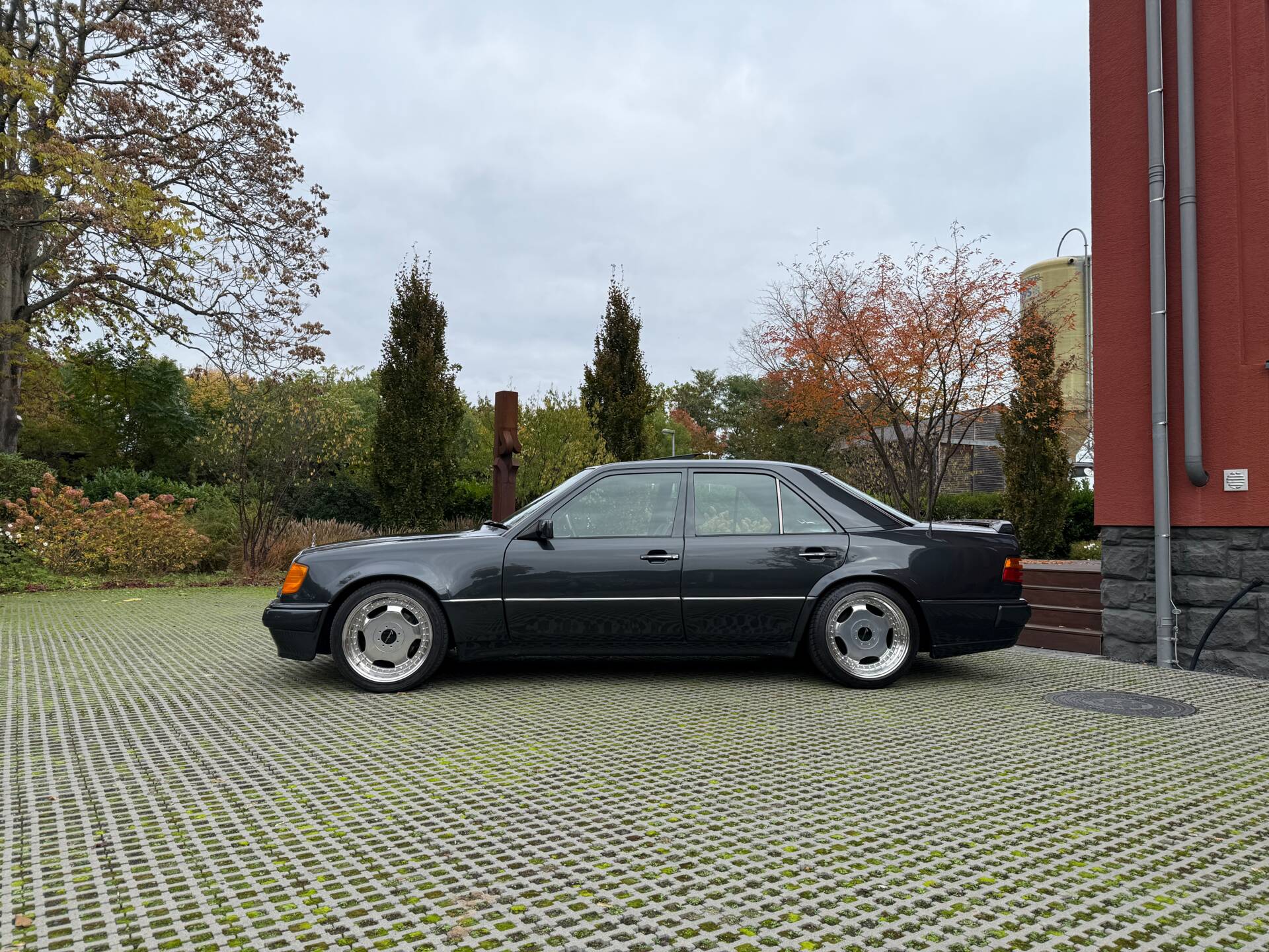 Dieser 500 E war der Werkswagen und das Messefahrzeug der Firma Lorinser. Anschließend übernahm ein Arzt das Auto, bis es zu seinem heutigen Besitzer - einem Autohausinhaber - gelangte. Dieser will seine Sammlung verkleinern, daher steht dieser sehr gepflegte 124er zum Verkauf.