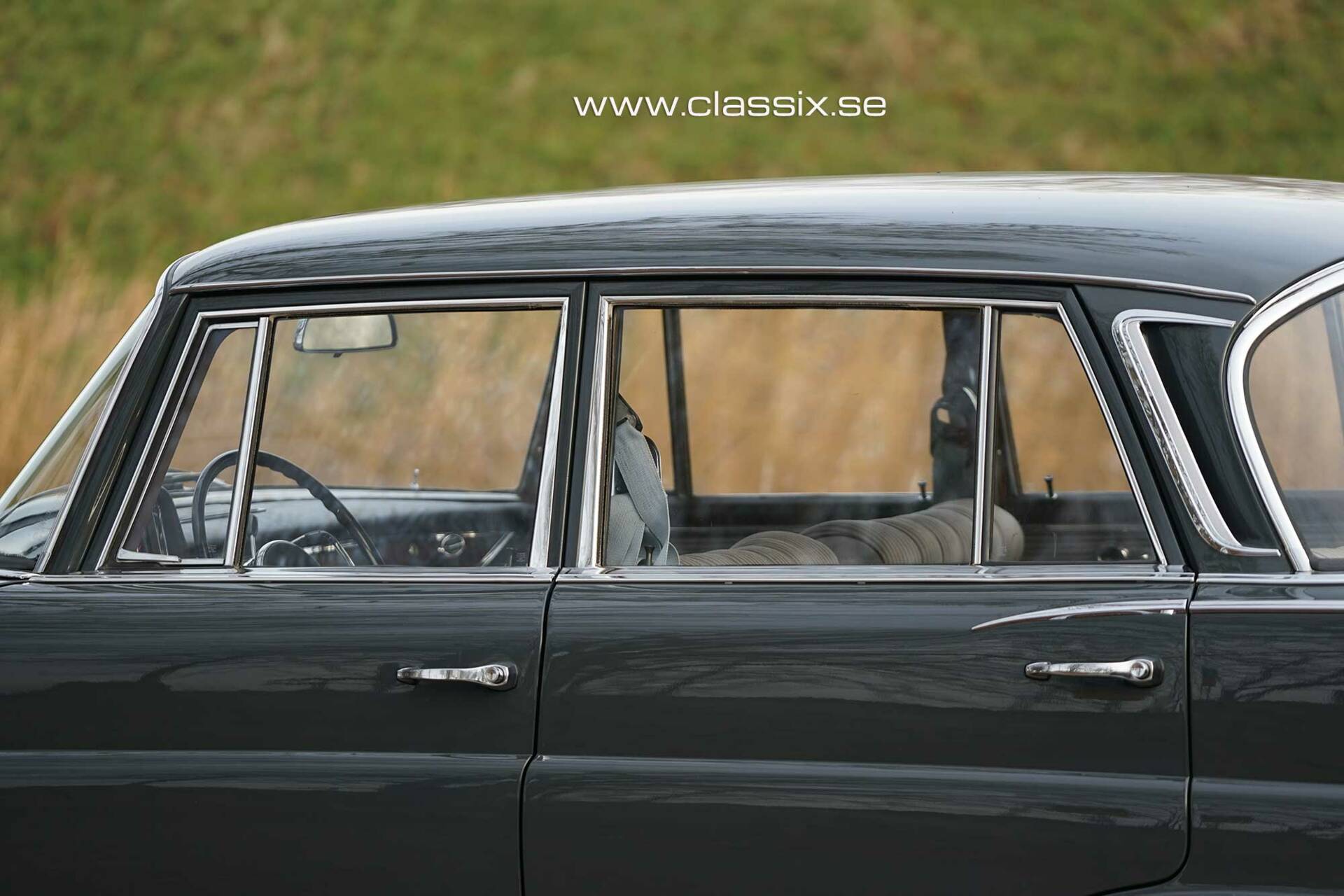 Exterior: The Mercedes W111 220 SB from 1965 we are presenting here had a professional repaint 1992 with km reading 125.496. And the W111 Mercedes has travelled 8556km since. It is today in very close to perfect original condition. All of the chrome details are just beautiful and shiny. All rubber details are in a healthy state and the front windscreen was replaced when the car was repainted. In November 2025 a new set of Michaelin tires with a thin white line was installed giving this large saloon the handling Mercedes intended it to have while still being smooth. The underside of the car is free from corrosion and has no welding scars.