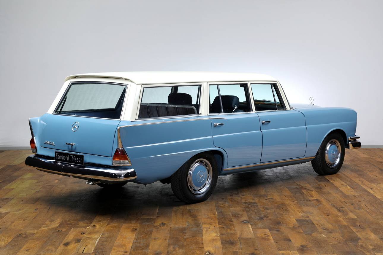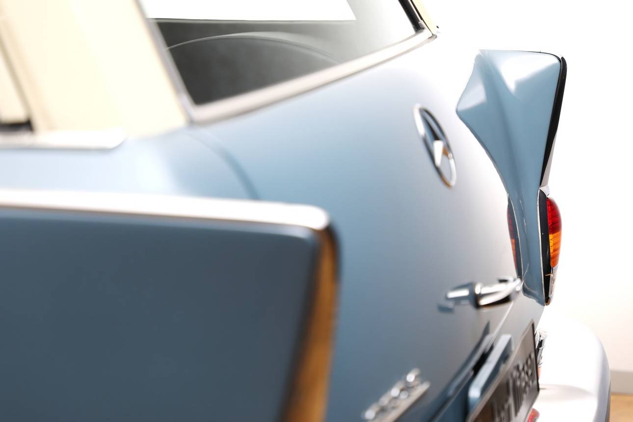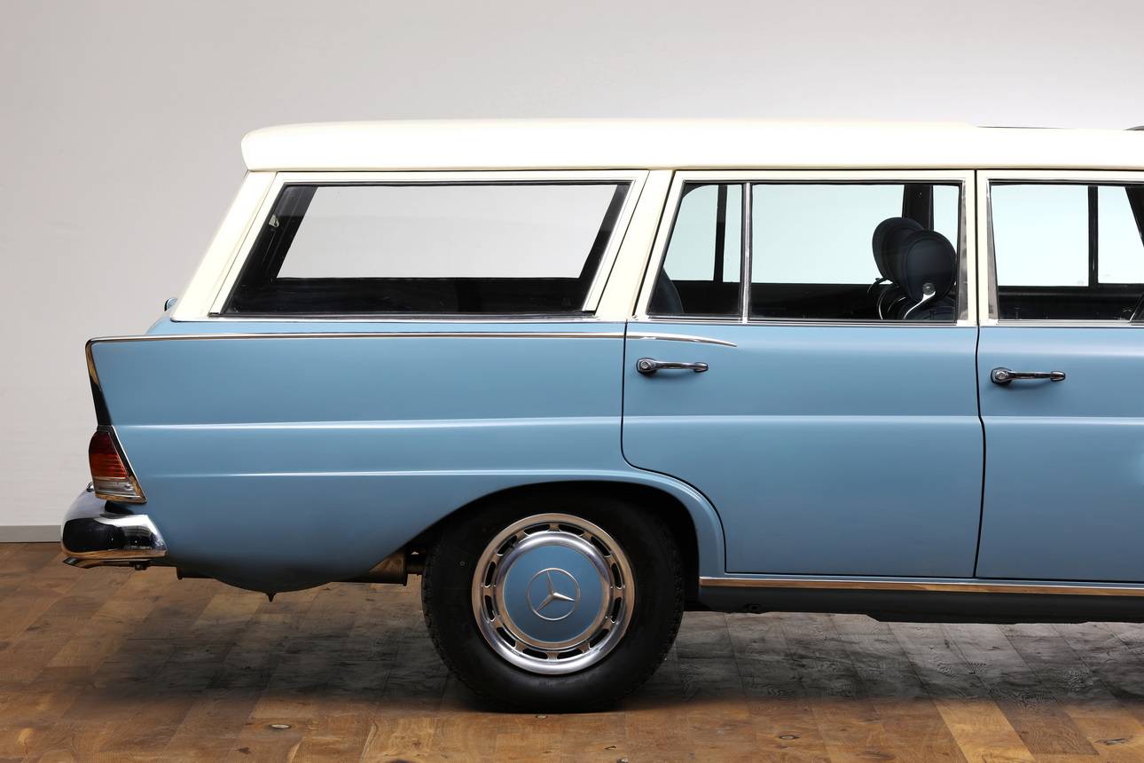 This 230 S Universal received a new sheet metal dress in the 1990s, when it was still possible to purchase doors, wings and the underbody system from Mercedes. The original invoices for this work and material are available. After the factory-new remnants of the special trim were installed in this car by a specialist company, it will be difficult to embark on such a restoration adventure in the future. Great importance was attached to originality in the bodywork and interior. In terms of technology and drive, emphasis was placed on speed, safety and driving comfort. Thus, the car is equipped with an overhauled 280 SE W108 engine from the contemporary period and an automatic transmission, which ensures relaxed driving. Moreover, the axles were fitted with disc brakes. The Mercedes 230 S Universal is certainly the most beautiful and rarest estate car sold by Mercedes. Like hardly any other classic car of the 1960s, it embodies the style and spirit of its time with plenty of space and a high utility value – for example for a classic car experience with the whole family.