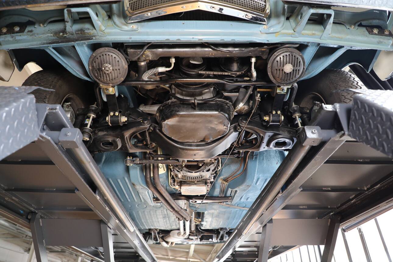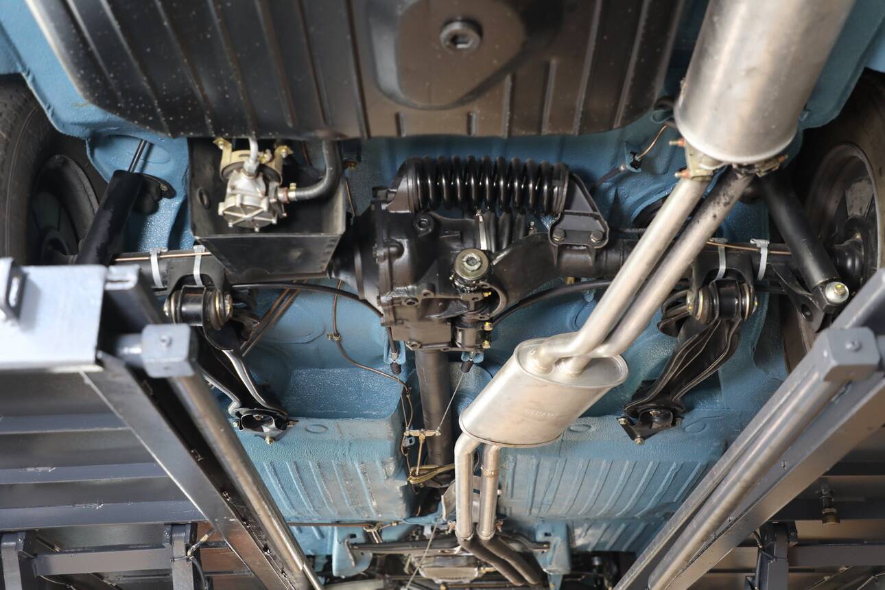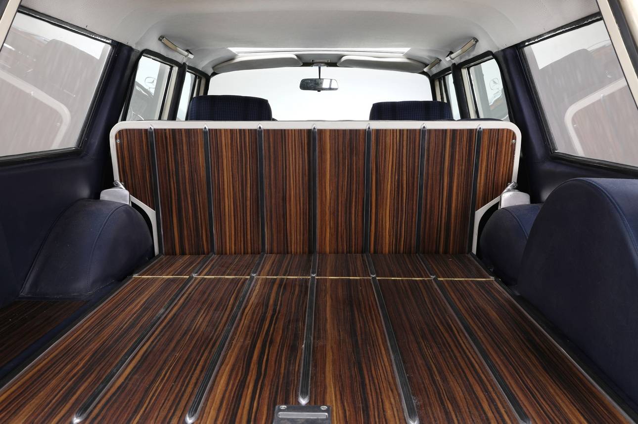 - Very authentic and period-correct two-tone paintwork in white over light blue plus a newly manufactured interior in check fabric blue.