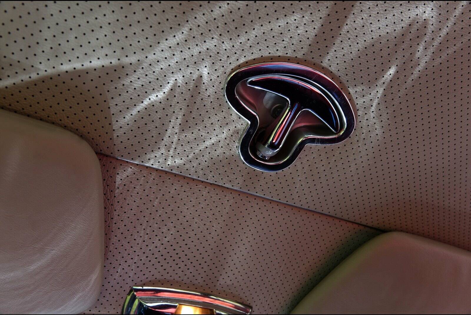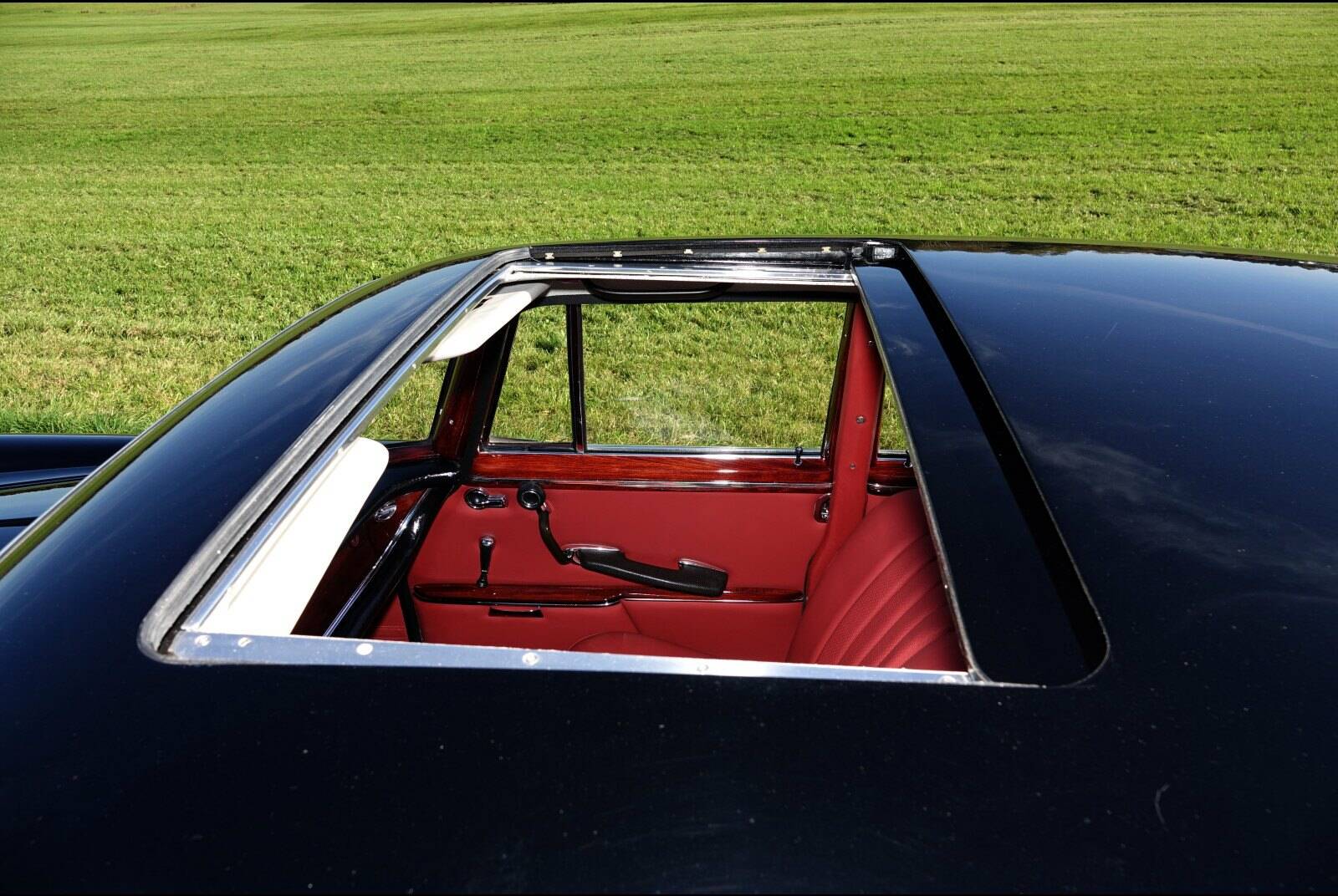 Der Benz hat übrigens auch das begehrte Schiebedach und die Luftfederung hält die Bodenfreiheit weit über ein halbes Jahr und selbst nach einem dreiviertel Jahr ist er noch lange nicht auf dem Boden. Das Radio müsste auch original sein und funktioniert (auch die automatische Antenne). Die Doppelstoßstangen sind parallel, die Scheinwerfer klar.