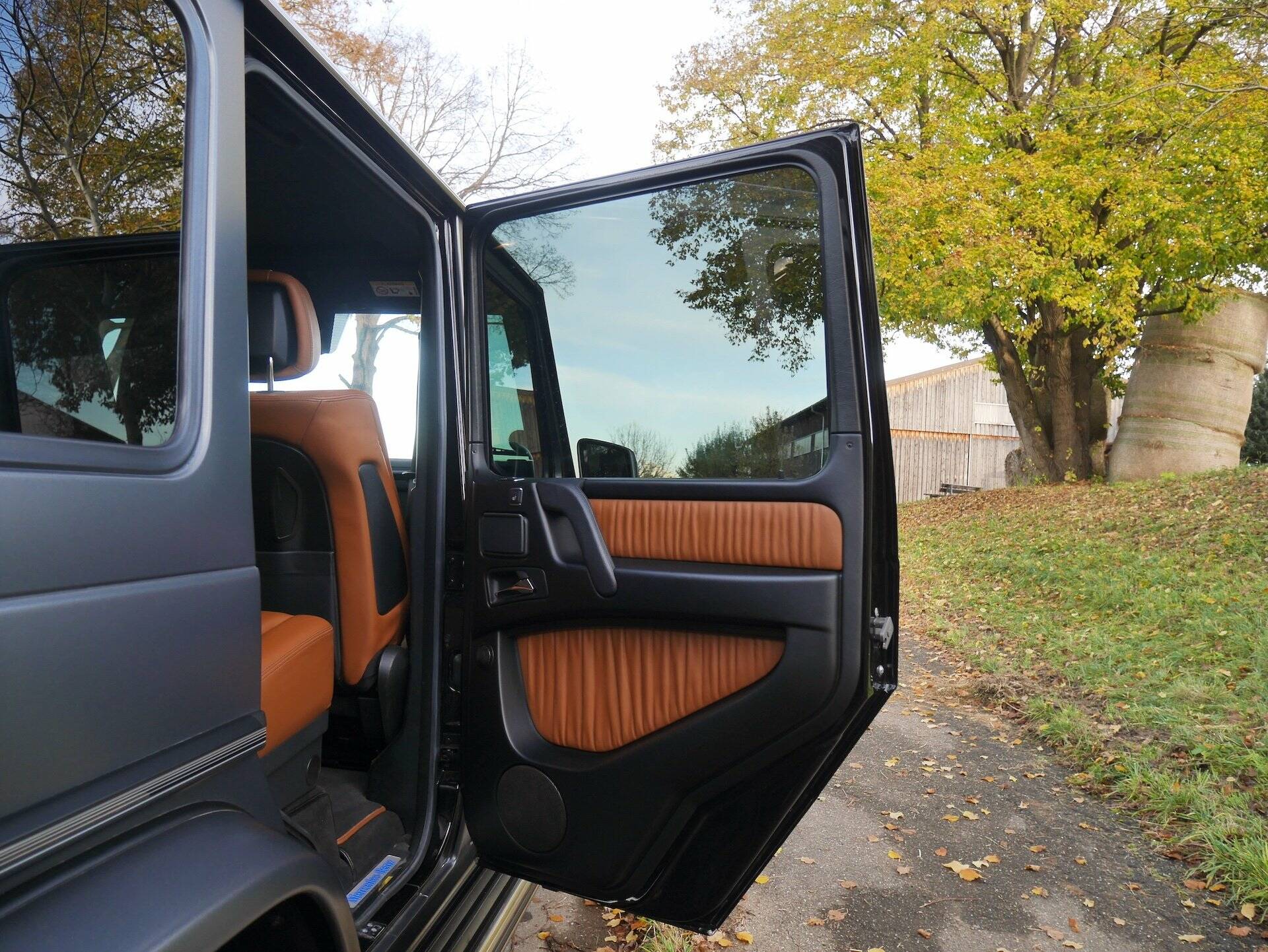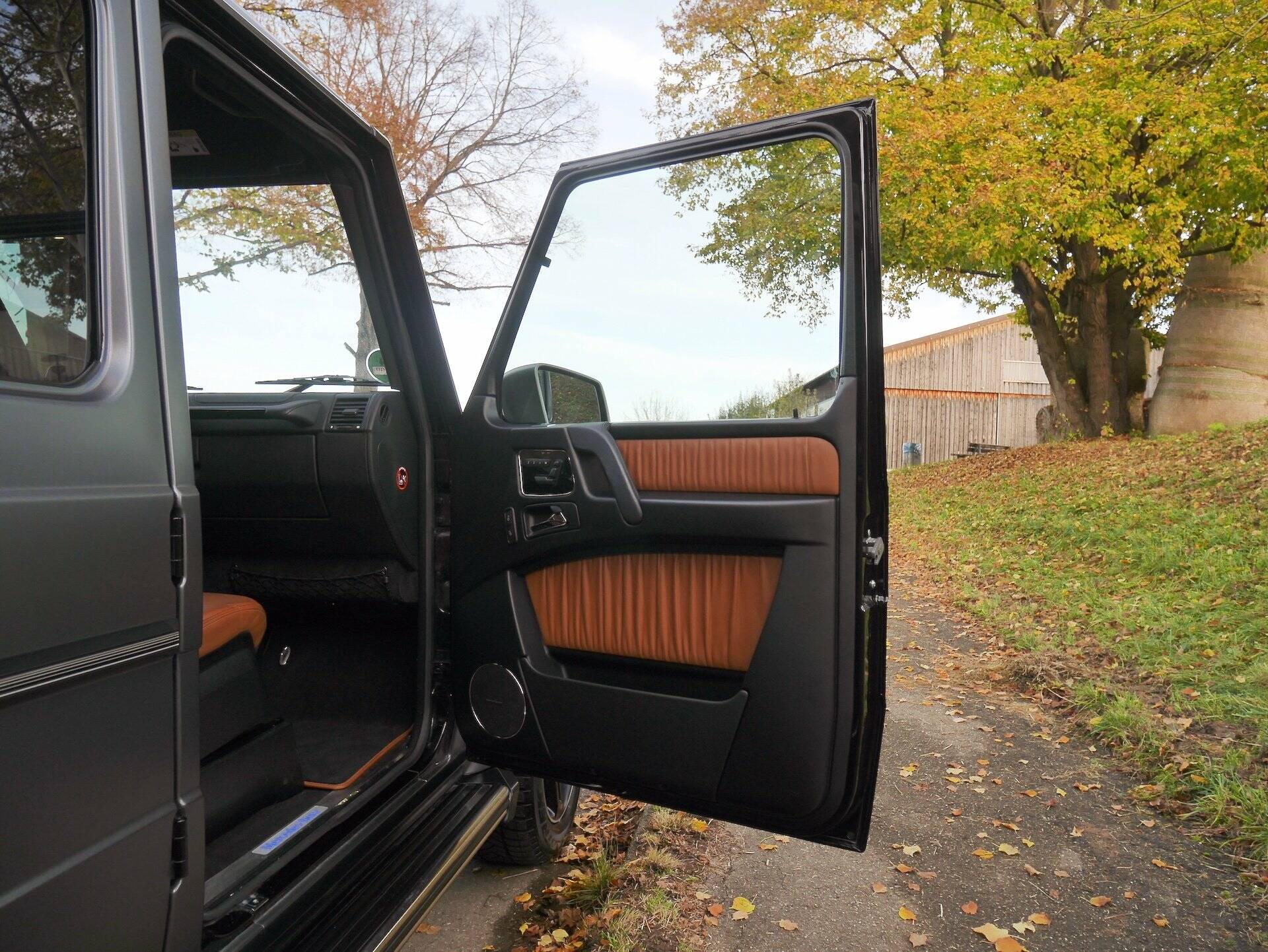Erleben Sie die beeindruckende Präsenz des Mercedes-Benz G 500 aus dem Jahr 2016. Dieser außergewöhnlich gepflegte Geländewagen mit Allradantrieb bietet die perfekte Kombination aus Luxus und Geländetauglichkeit. Das Fahrzeug wurde von professioneller Fachwerkstatt komplett in semimatt-anthrazit (gun metal grey) foliert, wodurch der originale Lack obsidian schwarzmetallic bestens erhalten blieb. Die Sonderausstattung läßt keine Wünsche offen und macht den angebotenen G500 zu einem begehrenswerten Einzelstück, das sich wohltuend von üblichen Angeboten abhebt.