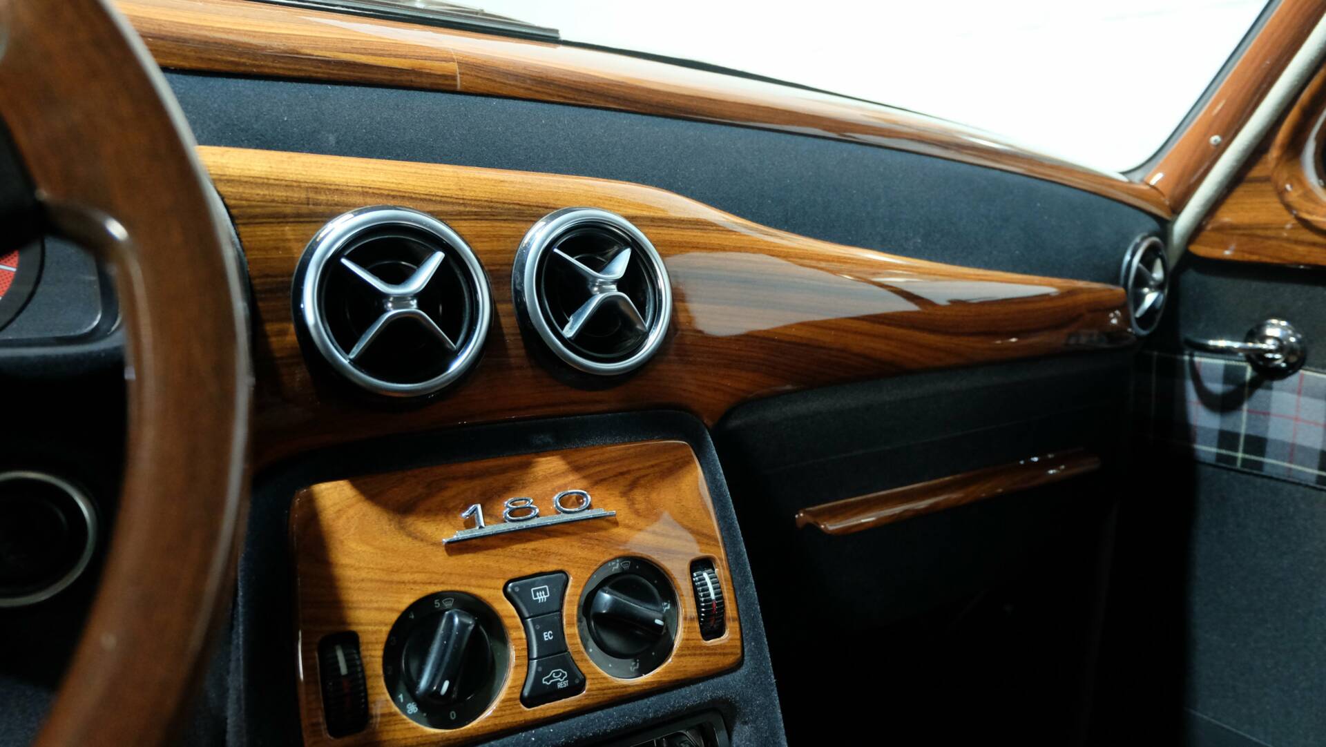 Im Interior findet sich auch die C-Klasse wieder mit technischer Ausstattung eines modernen Mercedes: Klimaanlage, Tempomat und ABS, welche das dynamische Fahrgefühl der C-Klasse toll übermitteln ohne in der Erscheinung einbüßen zu müssen. Auch bei der Langstreckentauglichkeit lässt dieser Restomod Mercedes nichts zu wünschen übrig, eine Reisegeschwindigkeit von 160/170 Km/h ist entspannt zu erreichen und die Fahrgeräusche verhalten sich sehr moderat und durchaus angenehm.