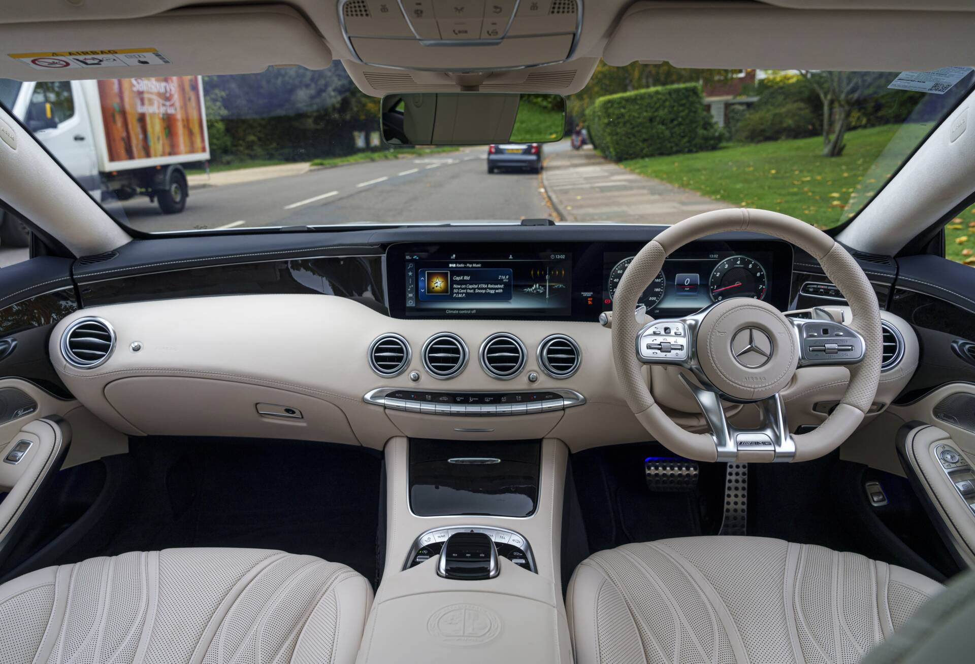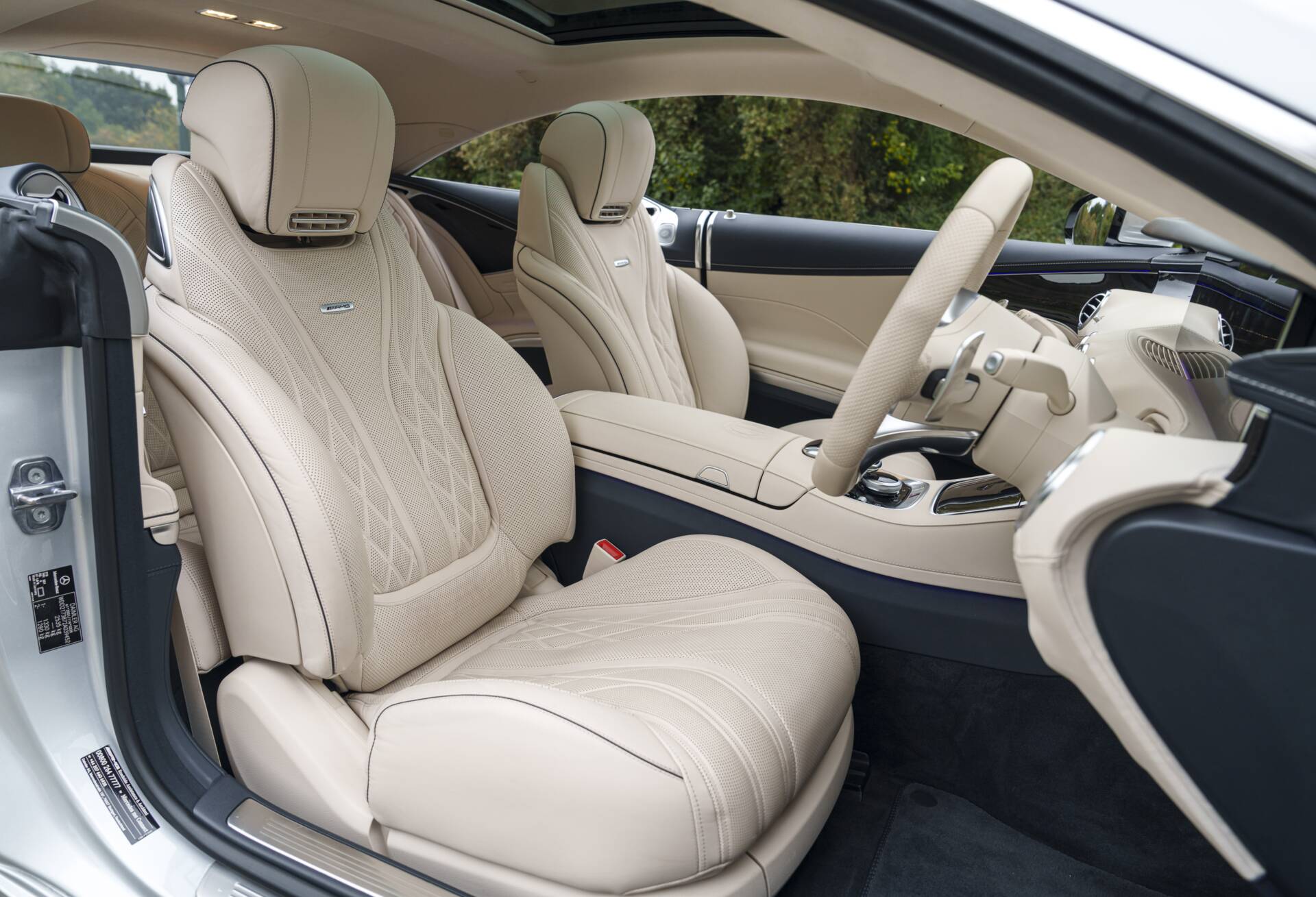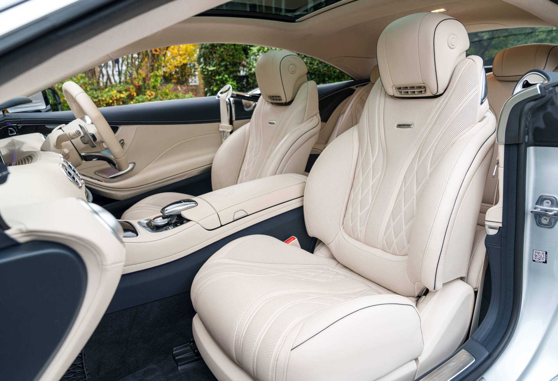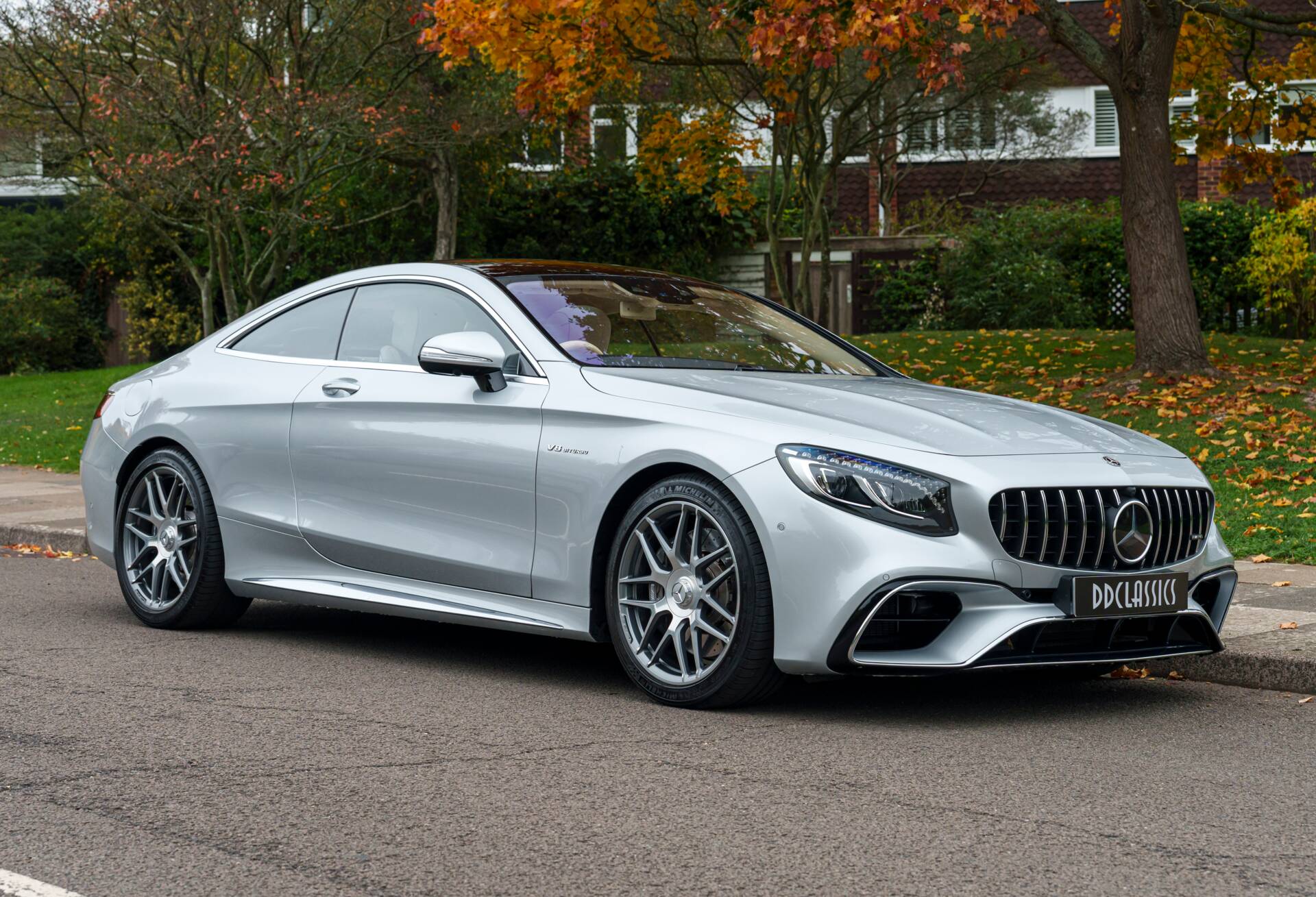 Presenting an exceptional example of the 2019 Mercedes-Benz S63 AMG Coupe, finished in the captivating Diamond Silver Metallic with a beautiful Designo Porcelain and Deep Sea Blue Leather Interior. With only 8,250 miles from new, this luxurious and high-performance coupe combines a striking colour scheme with top-of-the-line features and technology. The S63’s handcrafted 4.0-litre V8 Bi-turbo engine delivers 603 horsepower and 664 lb-ft of torque and the signature AMG Performance exhaust system, creating a commanding and refined driving experience.