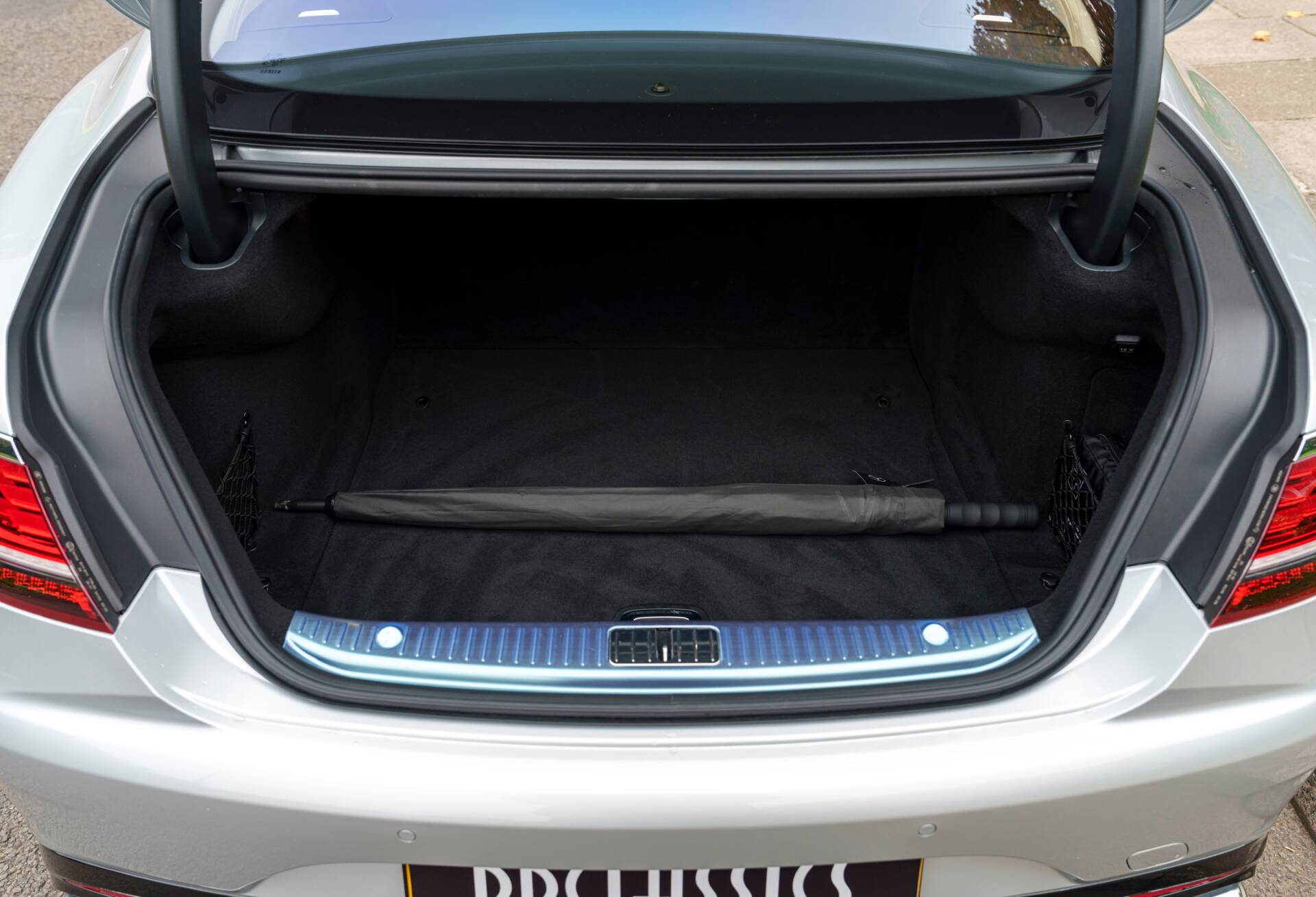 Features include Panoramic Roof, 360° Camera, Driving Assistance Package Plus, and the Burmester High-End Surround Sound System