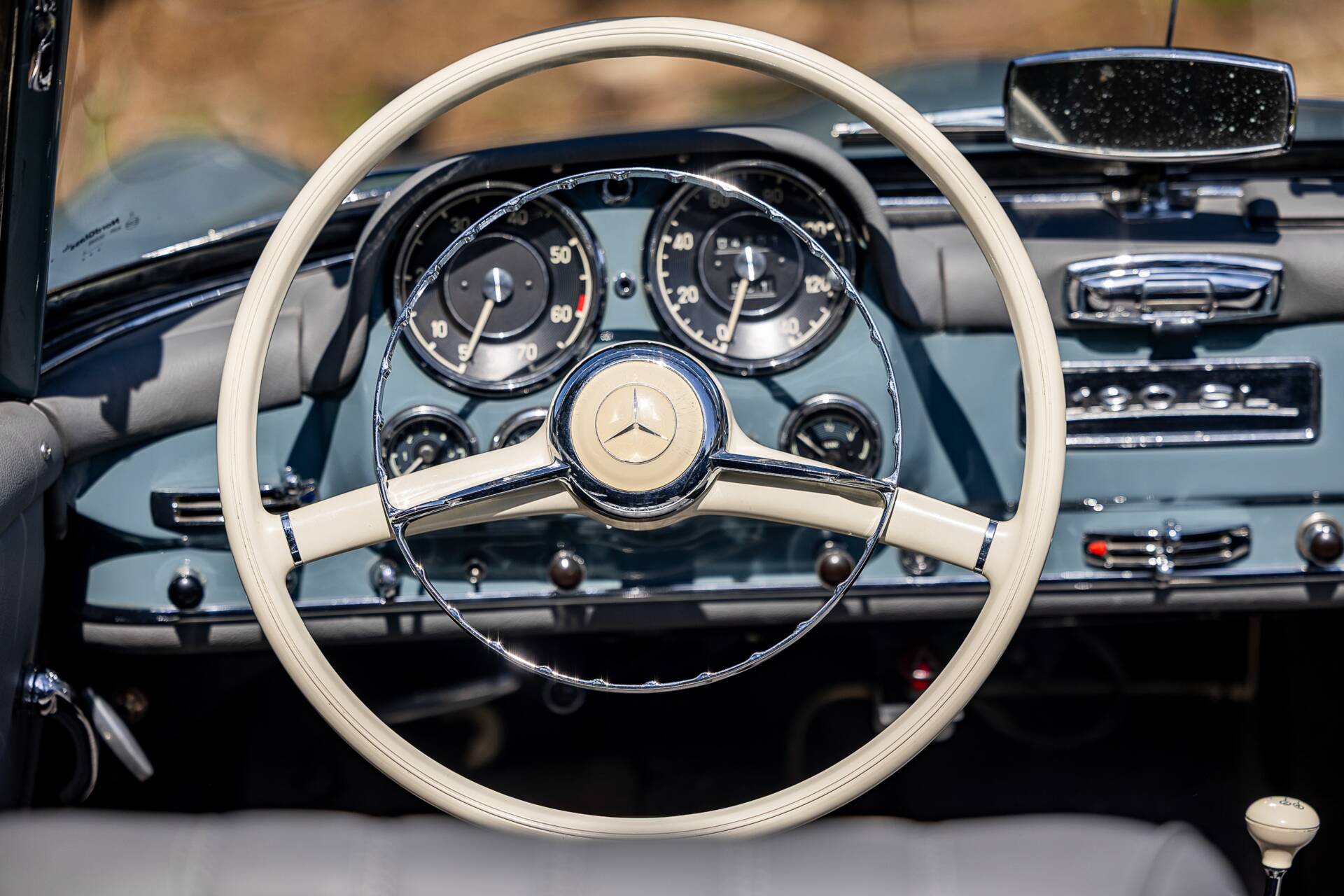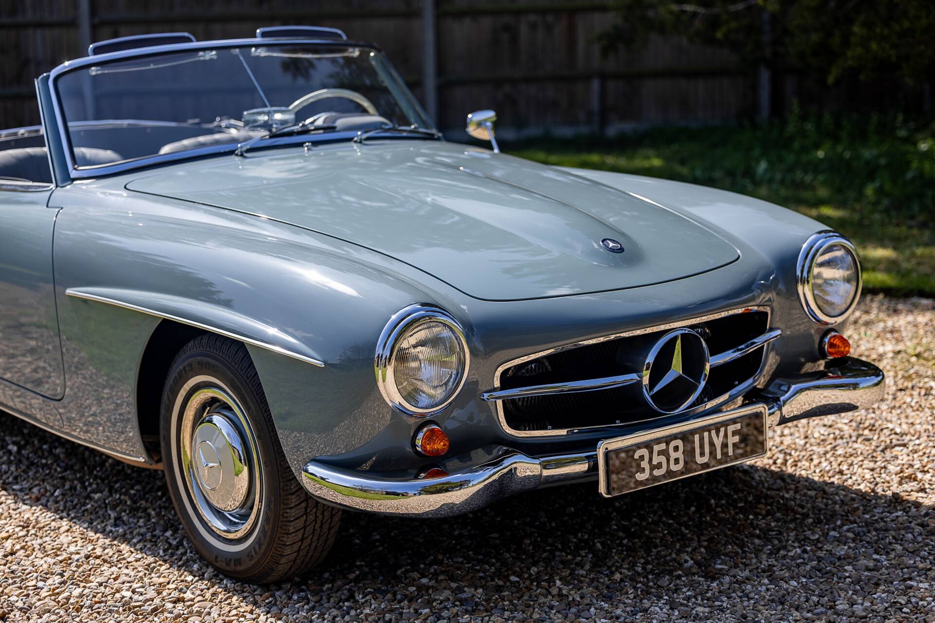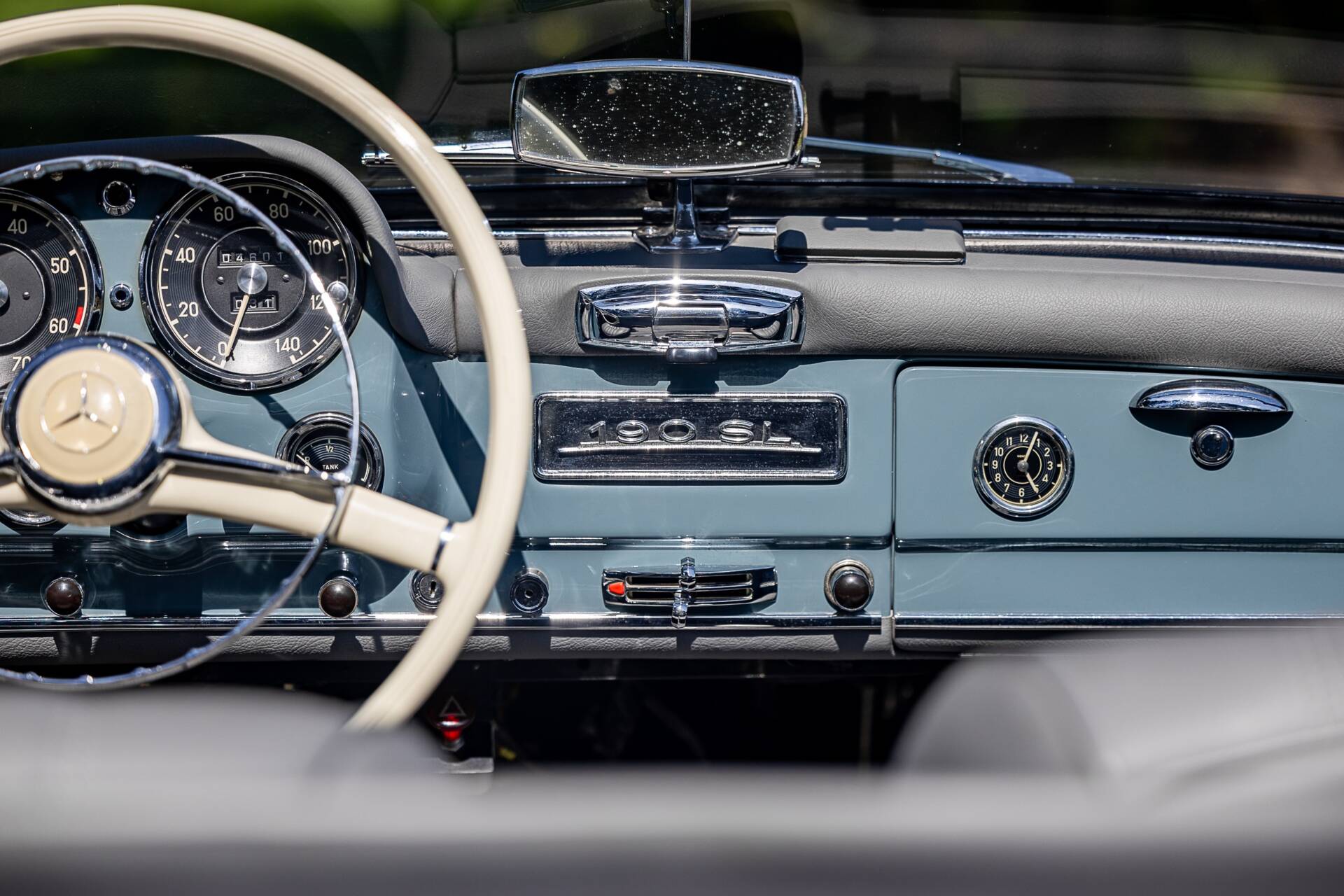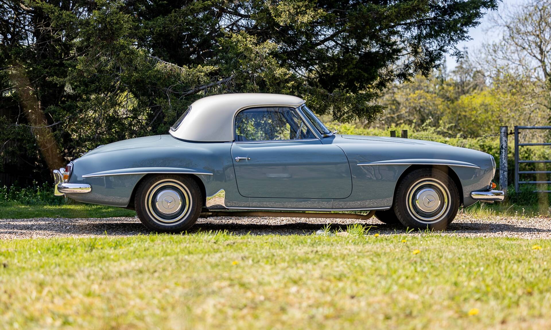 This beautifully restored matching numbers example of the iconic 190 SL is presented in a light blue with contrasting black hood, white hardtop roof and beautifully retrimmed blue leather interior. Commissioned by our vendor, who has owned the car since 2014, to be fully restored by a leading restorer in Europe for which there is a photographic record of the process explaining all works in detail, a no expense spared program followed and was completed in 2016 culminating in the finished article we have here. The engine boasts twin Webers and was rebuilt during restoration. The detailed period dashboard is a stunning place to be, the glovebox has an inset clock and the chromework is excellent. Ultimately, the Mercedes-Benz 190 SL stands as a car that embodied the glamour of postwar Europe and the growing international reputation of Mercedes-Benz. It wasn’t the fastest sportscar of its time, but it delivered style, quality, and everyday usability, making it an enduring classic and a cornerstone of Mercedes-Benz’s rich heritage in open-top motoring, this example is amongst the very best found on the market today.