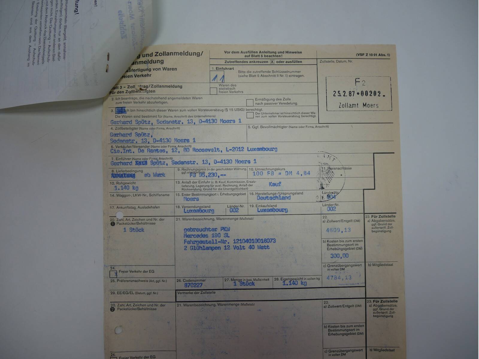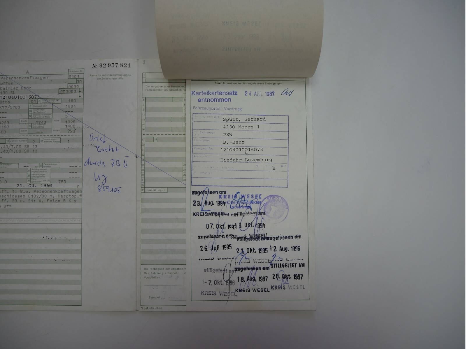 Dieser Mercedes-Benz 190 SL ist ursprünglich eine europäische Erstauslieferung und wurde im März 1960 als Coupe in den Iran nach Teheran ausgeliefert. Nach seiner Zeit in Teheran wurde das Fahrzeug nach Luxemburg importiert, bevor es 1987 nach Deutschland kam. Seit 1987 war der 190 SL bei seinem letzten Besitzer. Das Fahrzeug ist komplett matching-numbers und hat eine absolut originale Karosserie. Zusätzlich verfügt das Auto über sehr gute Fahreigenschaften mit den originalen Solex-Vergasern. Das originale Hardtop liegt bei. Zustandsnote 2, Marktwert 135.000 €.