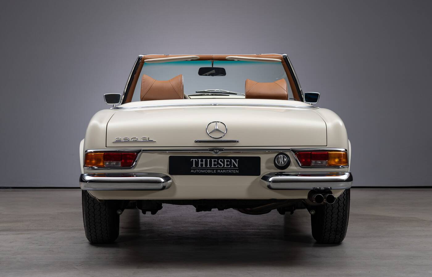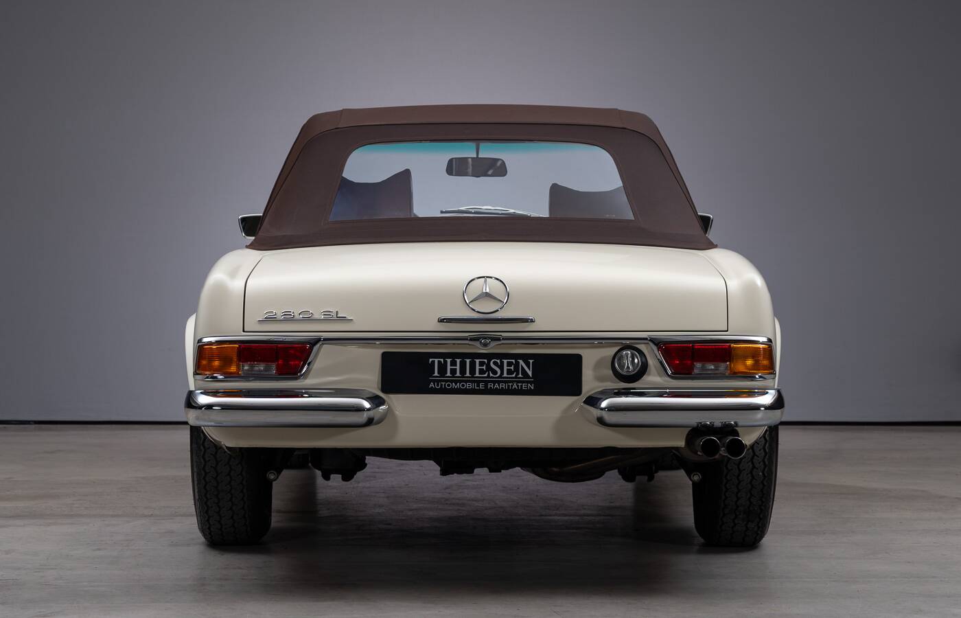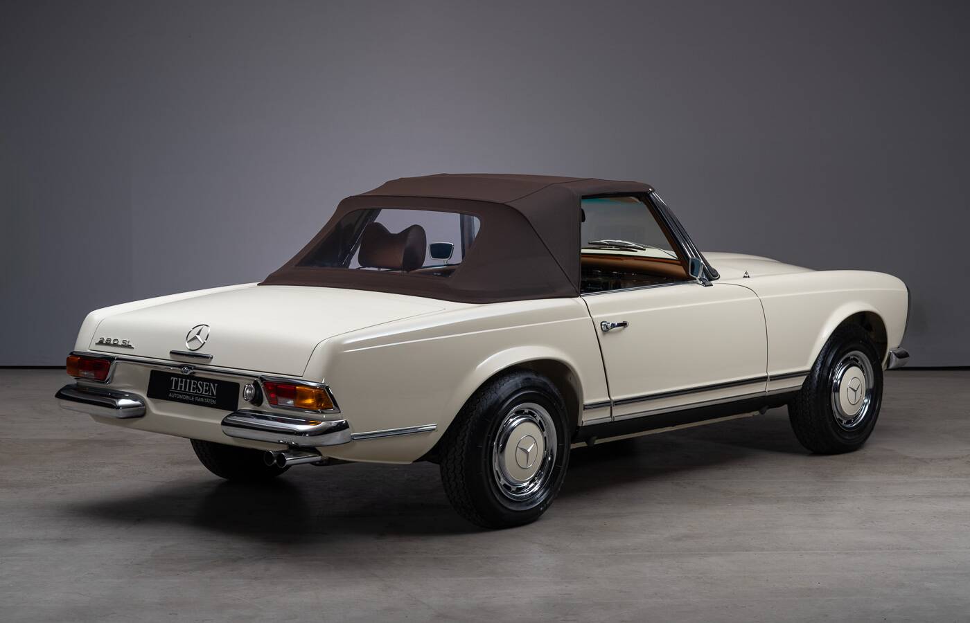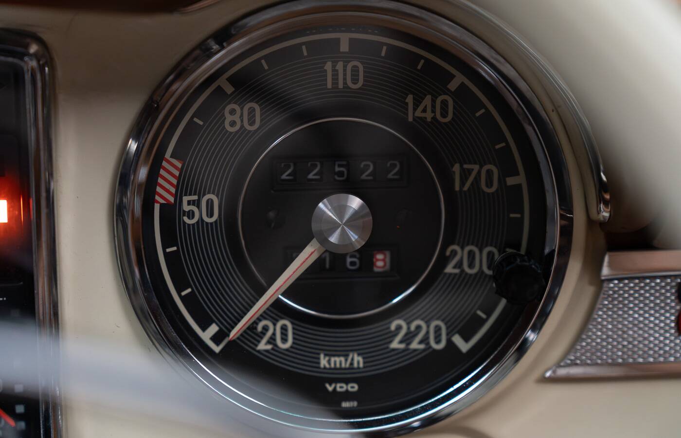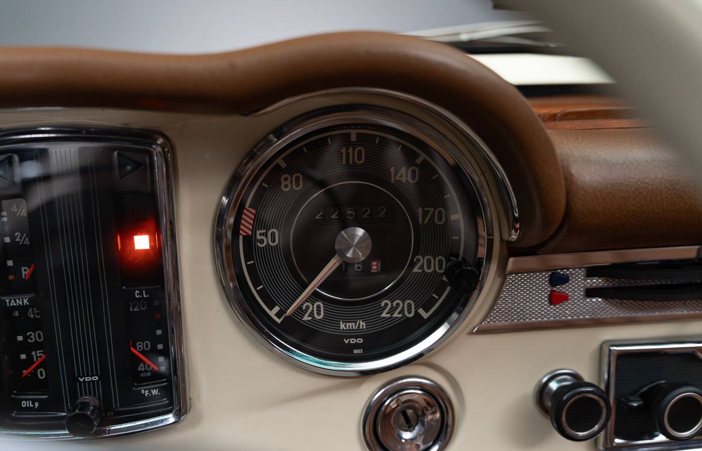 The Mercedes-Benz 280 SL offered here was imported from the United States to Germany several years ago and subsequently underwent a complete restoration under the supervision of its current owner, who is the proprietor of a Mercedes-Benz dealership. During the restoration, the car was visually converted to European specifications. The stamped engine number and the attractive Light Ivory colour correspond to the original delivery specification.