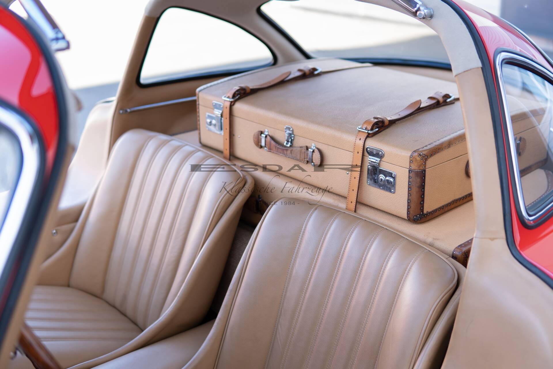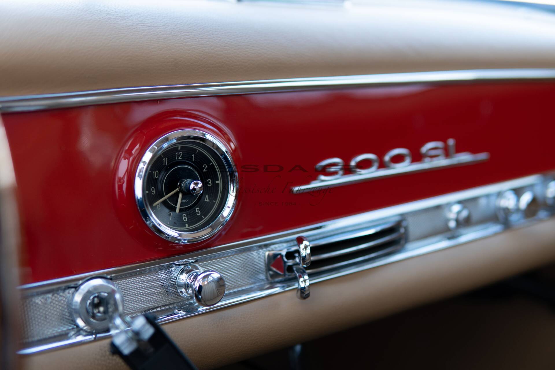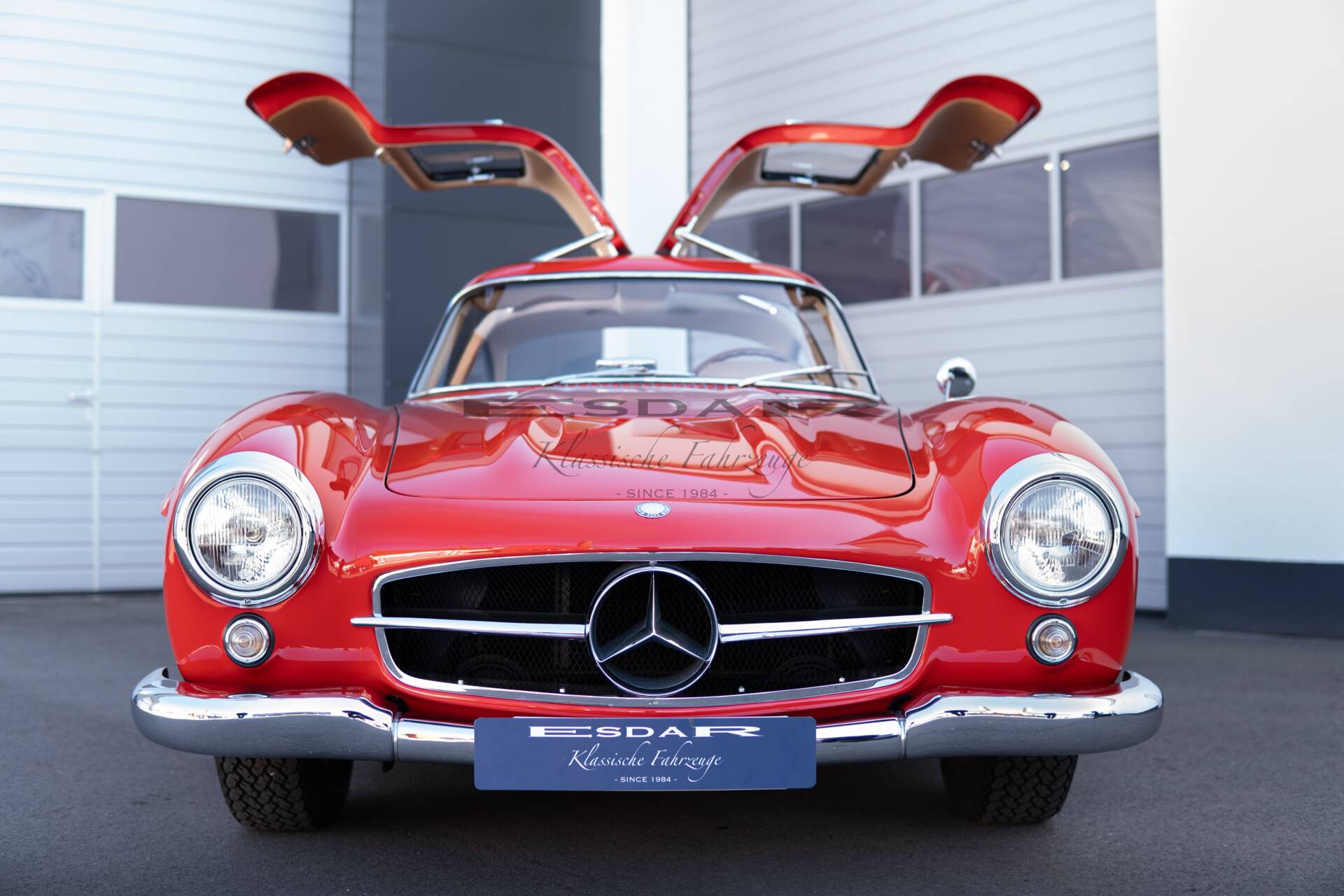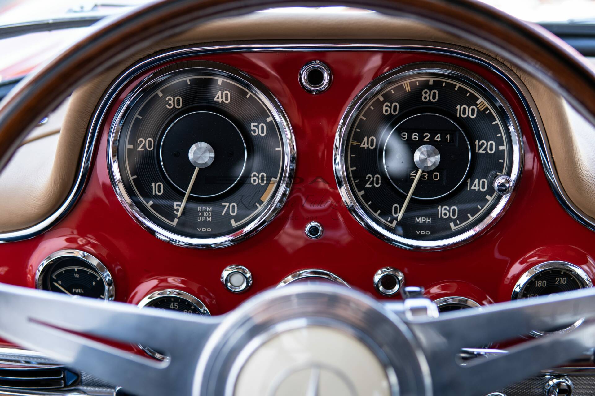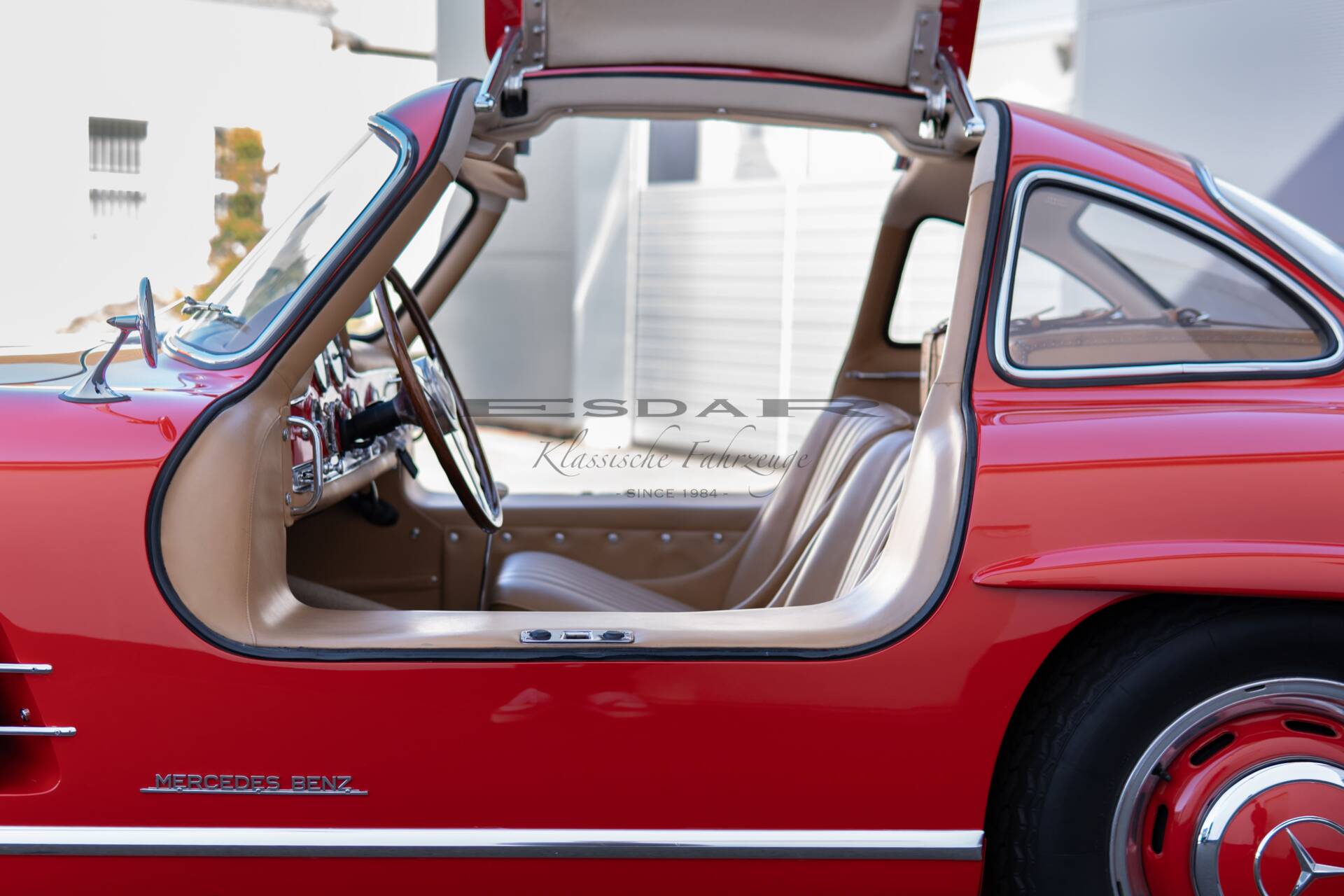 Ausgeliefert wurde der 300 SL in der seltenen Farbkombination DB 534 Feuerwehrrot mit einer Innenausstattung in L2 MB-Tex Beige. Damit entspricht das Fahrzeug sowohl technisch als auch optisch weitgehend dem Originalzustand. Lediglich 158 Exemplare wurden in dieser Außenfarbe produziert.