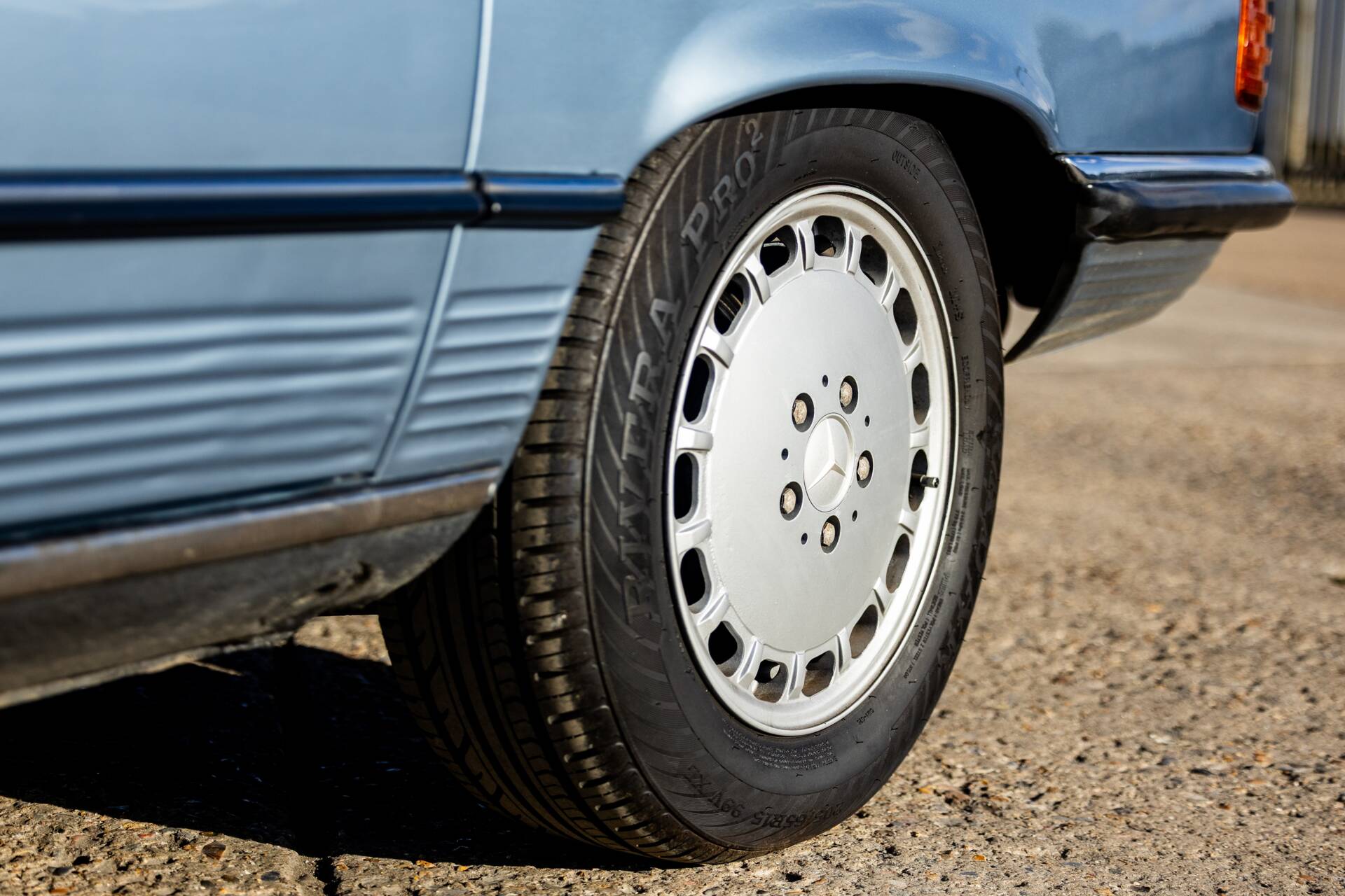 This stylish example of the Mercedes icon was supplied by franchise dealer Normands of Park Lane, London and registered in January 1987. The car presents nicely in pale blue metallic coachwork with a classic Mercedes-Benz contrasting tartan check interior and benefits from a desirable factory hardtop. The original service book is present and shows 14 service stamps and it's MoT test certificate is valid until the 8th June 2026. The sale also includes the cherished number plate MBZ 877. This sensibly priced SL is ready to be enjoyed. Consigned by Dominic Lake