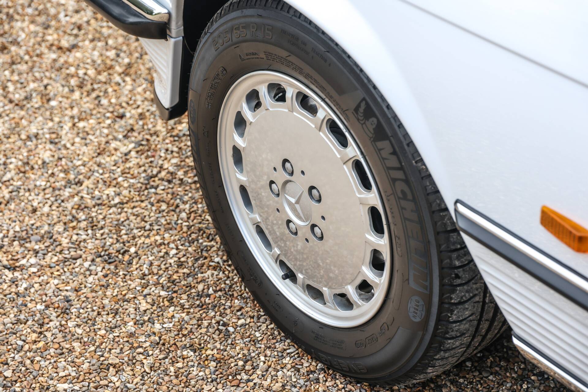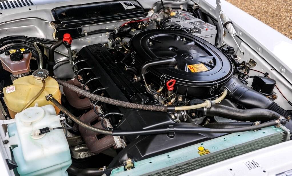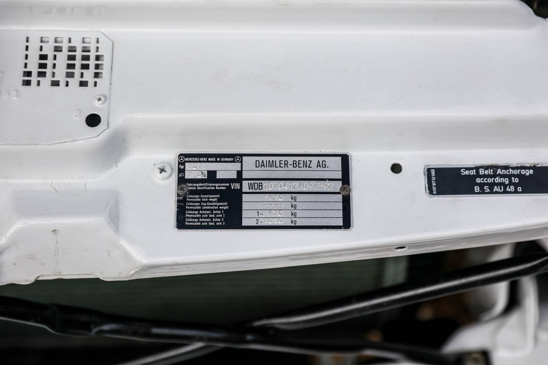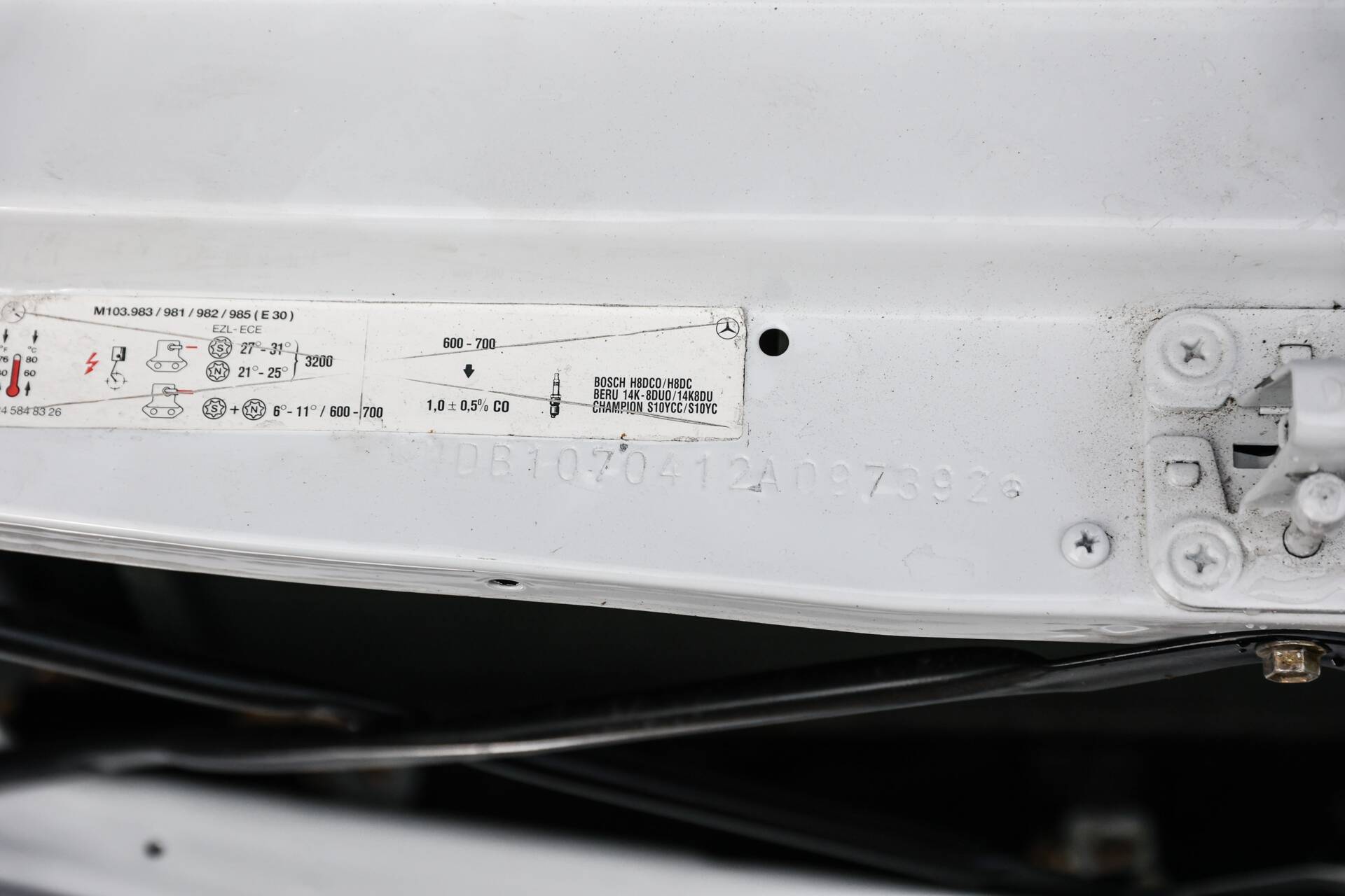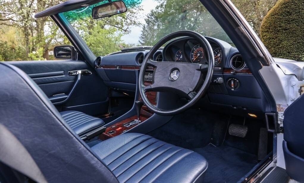 This is an opportunity to own one of the lowest-mileage Mercedes-Benz R107s in the world, with a condition that is surmountable with not only the mileage but with a high level of care and maintenance. It was first registered on 9th February 1989 and features gleaming white coachwork, with blue MB Tex trim to the front and the optional bench seat in the rear topped off with a blue contrasting mohair hood.
