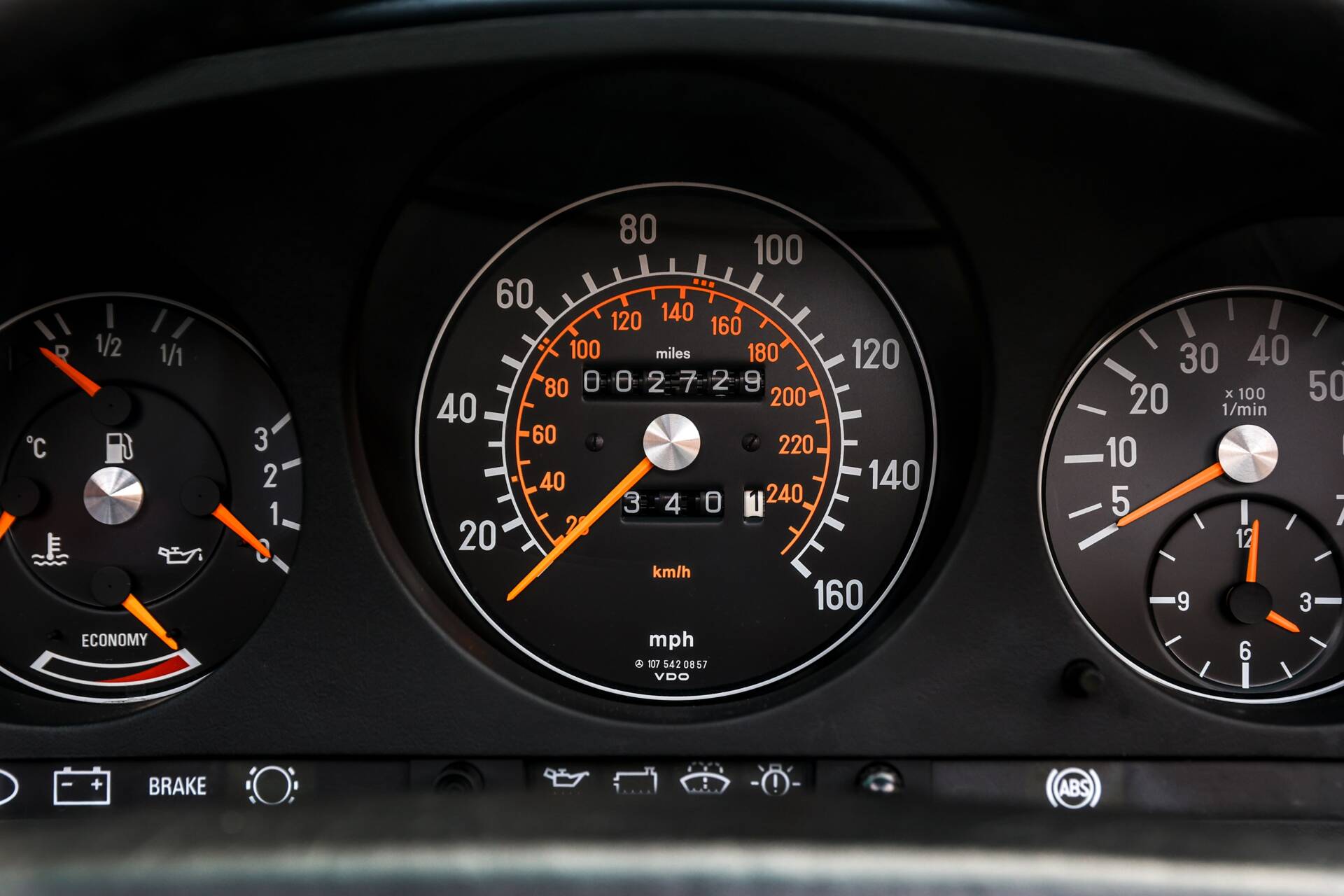 Originality is indeed the key word here and save for its tyres the car is completely original, unrestored, and as it would have been when it left the showroom in 1989, including the Blaupunkt cassette radio, an option from new. This 300 SL hasn’t lost any of Mercedes-Benz’s signature reliability and practicality either: it’s offered with two keys, handbooks, full size spare wheel, hardtop, and fitted lap belts in the rear, it also sailed through its most recent MoT, unsurprisingly with no advisories. This is undoubtedly one of the most collectable time-warp examples money can buy, in scarcely believable condition.