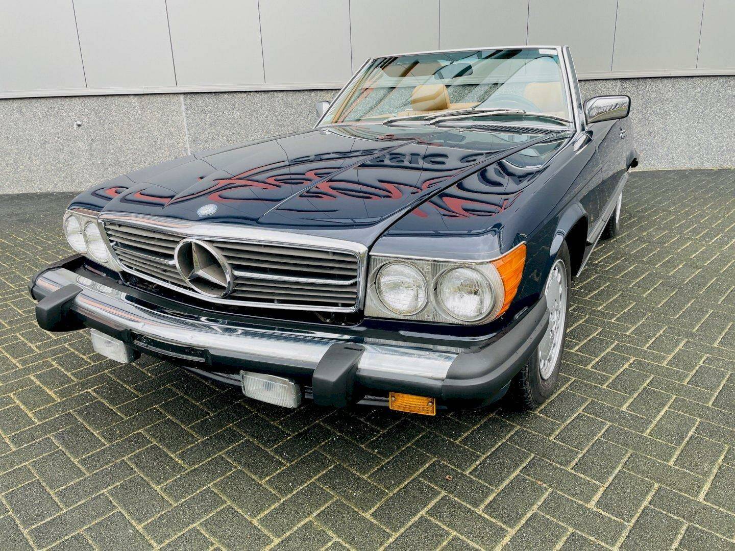 Beautiful factory color combination. This 560SL with only 75,342 miles has completely original and rust-free bodywork. The chrome is in good condition and the paintwork is reasonably tidy, although the right rear fender may need some attention. The interior and woodwork are entirely original, with the left seat showing slightly more wear than the right. The soft top is in very good condition. Recent updates include returning the sport wheels to the original gray finish (from chrome) and replacing the windshield wipers. The phone antenna on the trunk lid is debatable.
