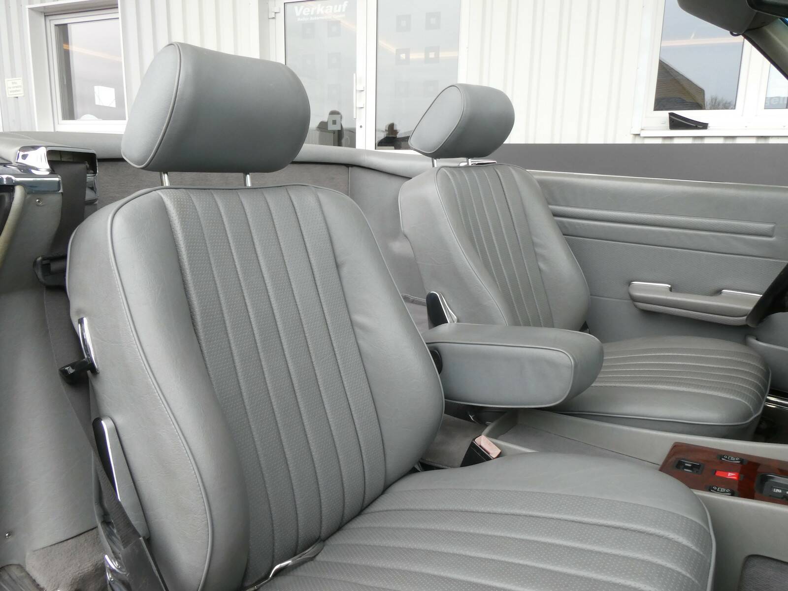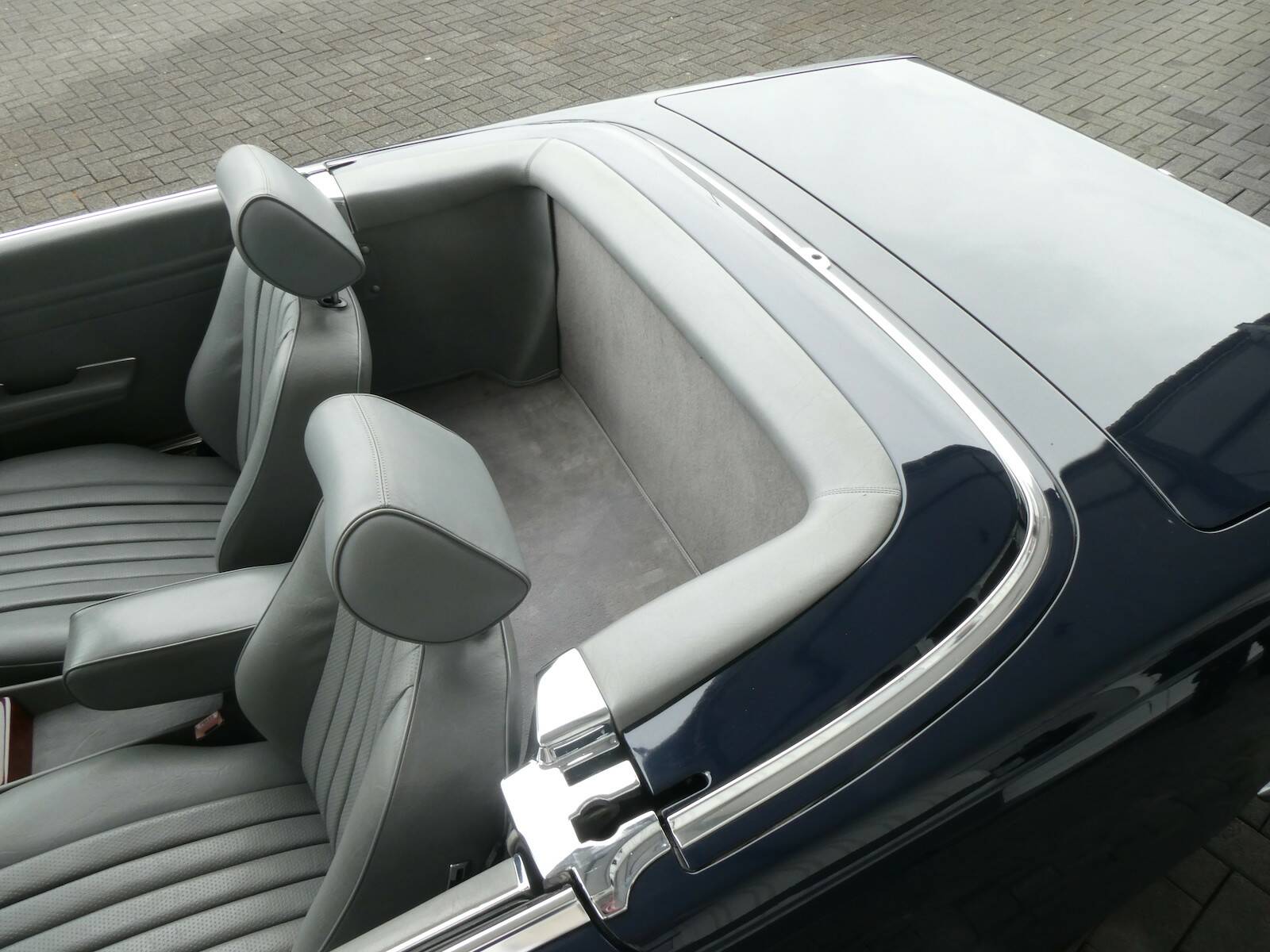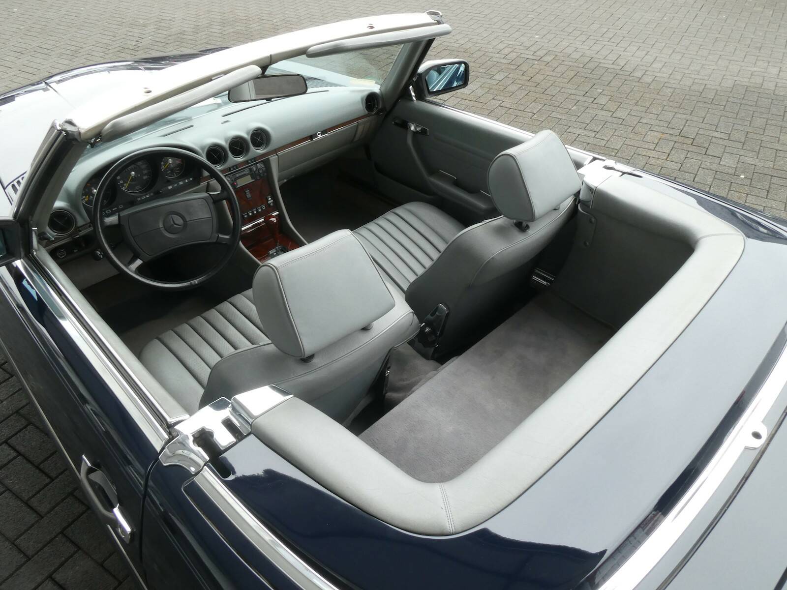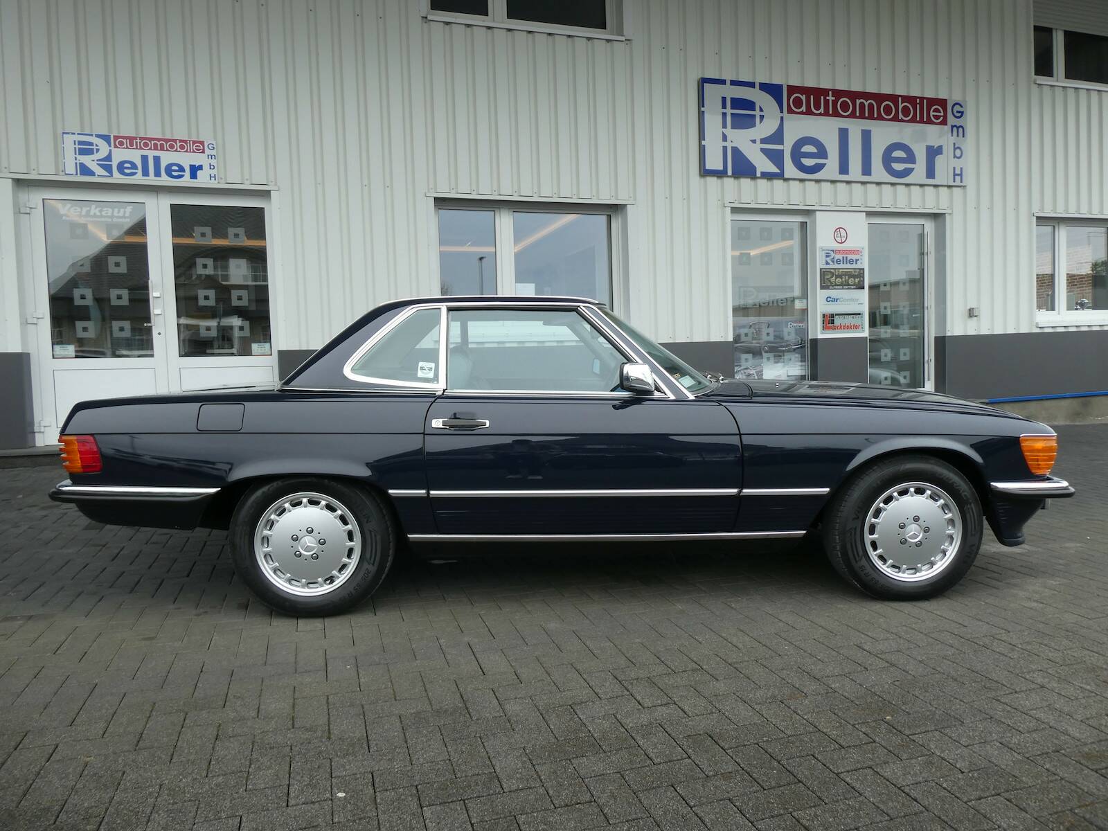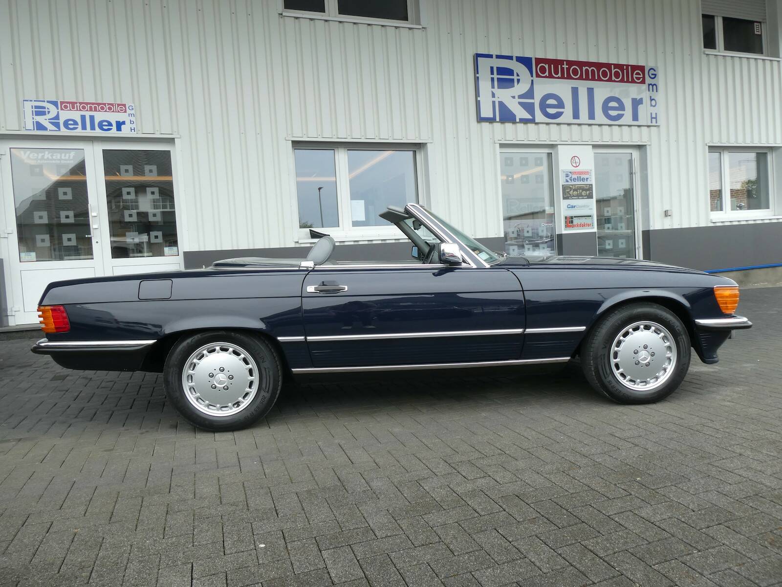 Dieser 560 SL wurde 1989 original in dunkelblau (904) ausgeliefert. Das Fahrzeug hat eine ungeschweißte und rostfreie Karosserie. Der SL besitzt eine H-Zulassung.