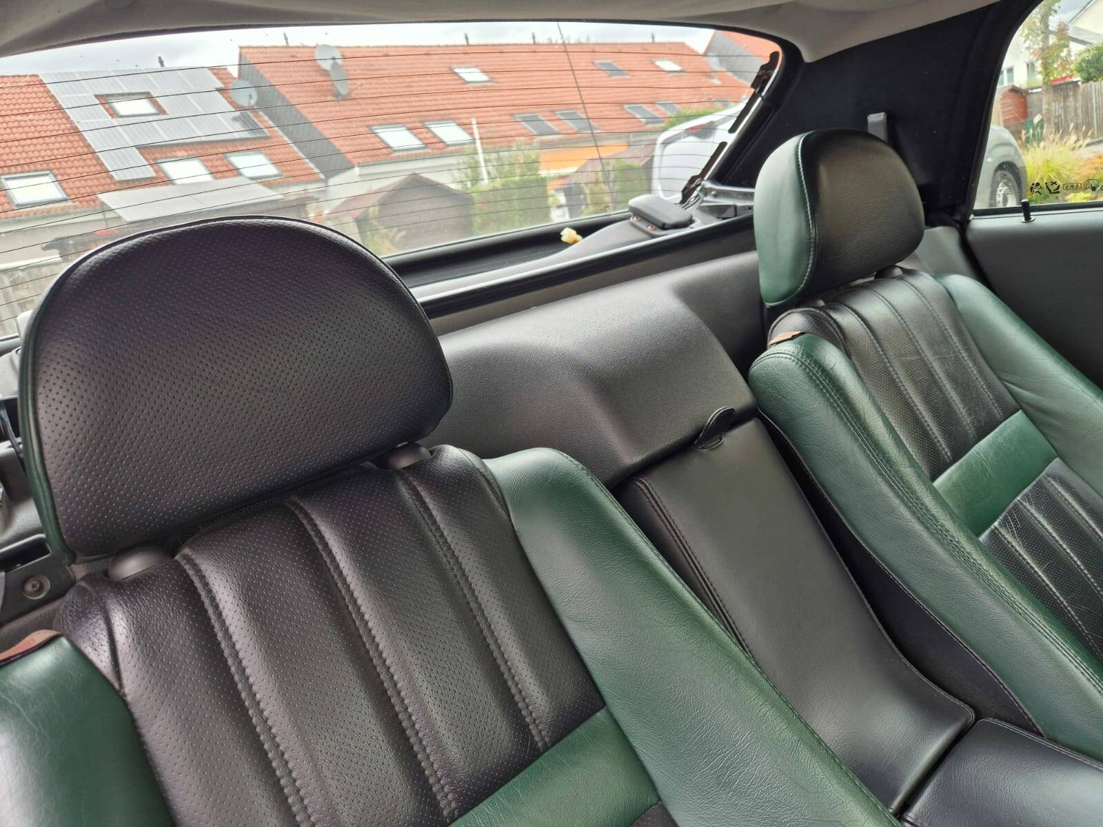 Das Fahrzeug wurde stets in einer Garage aufbewahrt und zeigt sich dementsprechend in gutem, gepflegtem Zustand. Die Lederpolster sind sauber, geruchsfrei und gut erhalten, was dem Innenraum ein gepflegtes und wertiges Erscheinungsbild verleiht. Die Karosserie weist nur minimale, altersgerechte Gebrauchsspuren auf, die den positiven Gesamteindruck keinesfalls mindern. Das schwarze Stoffverdeck und die klare Folienheckscheibe befinden sich in einwandfreiem Zustand, frei von Rissen oder Beschädigungen.