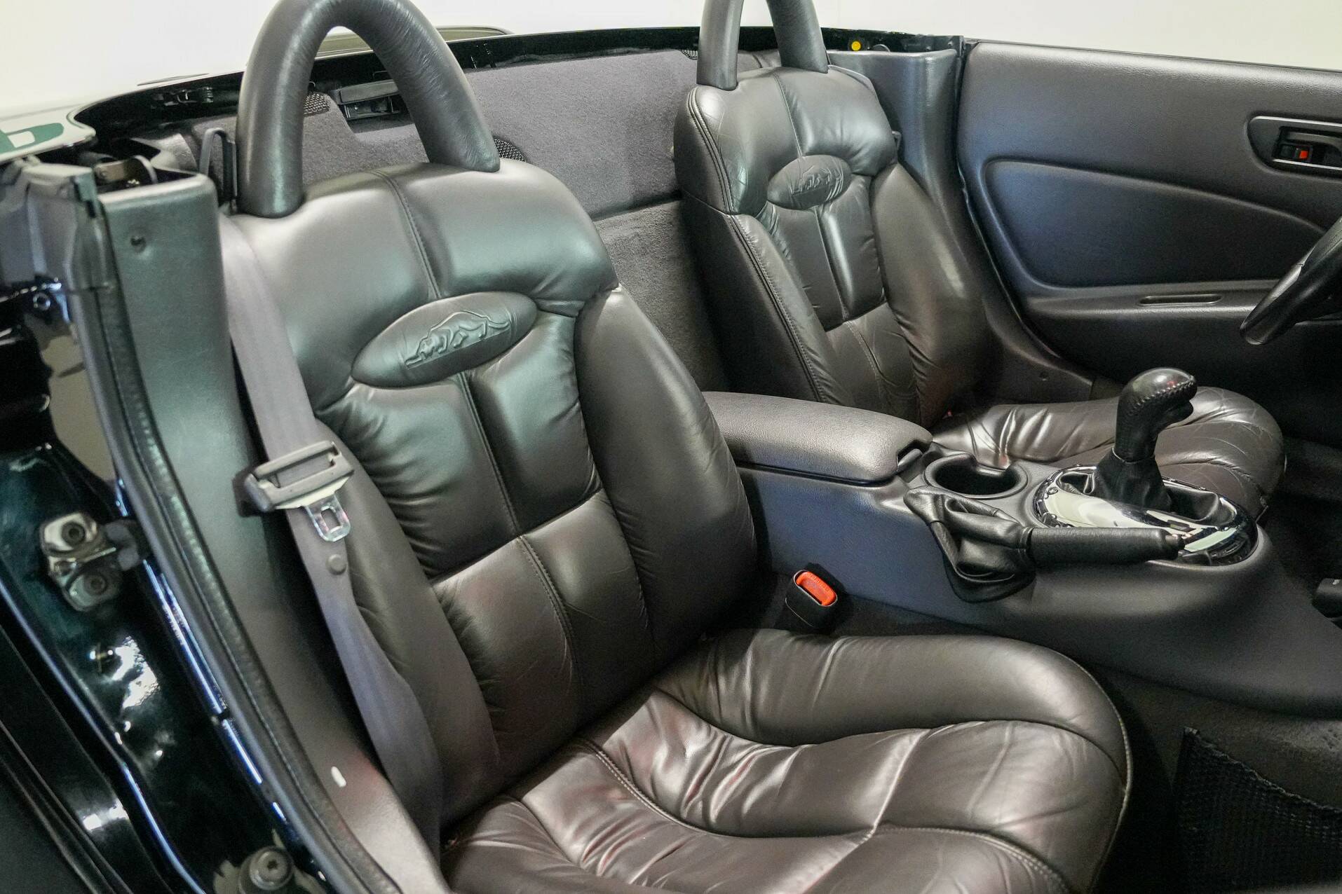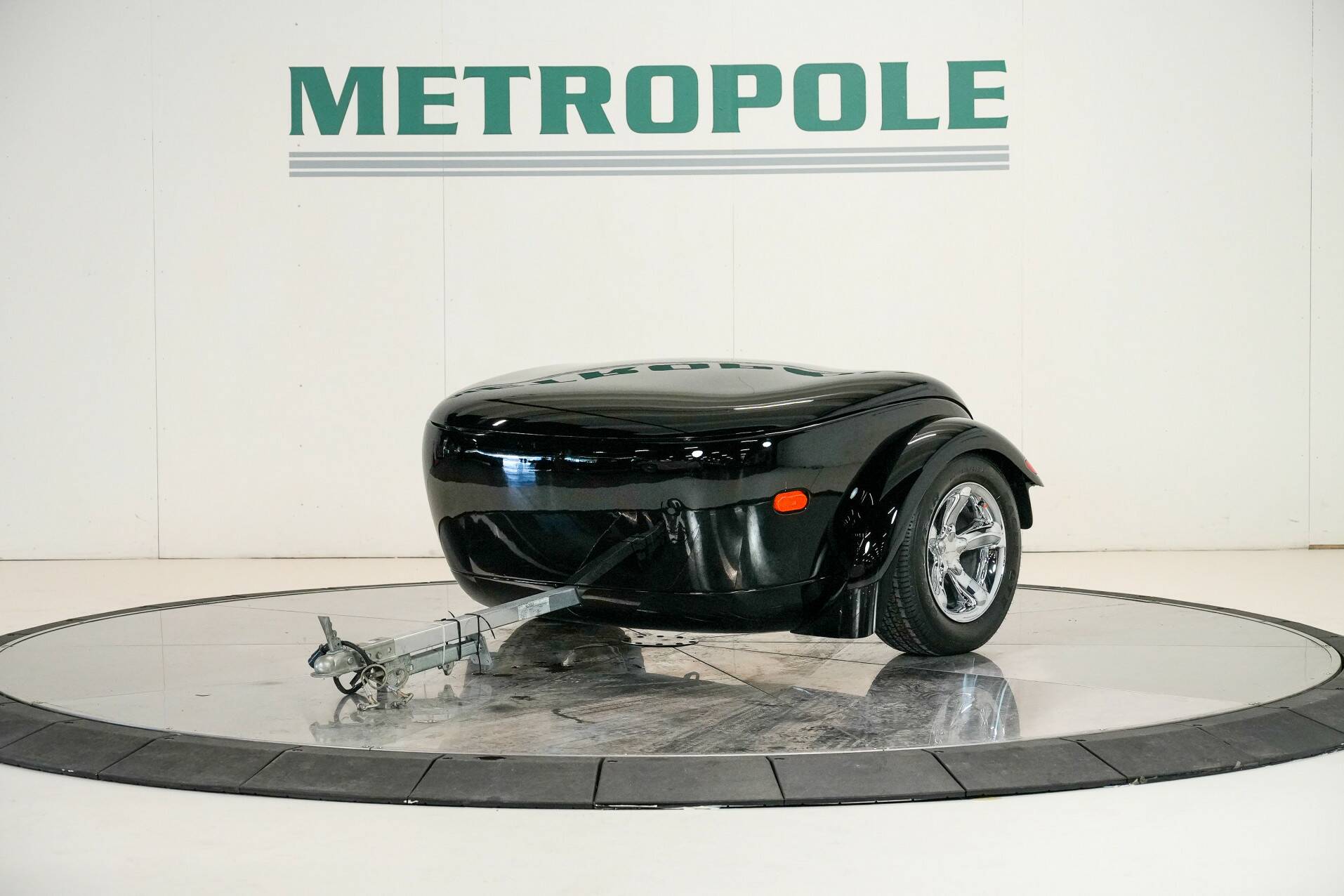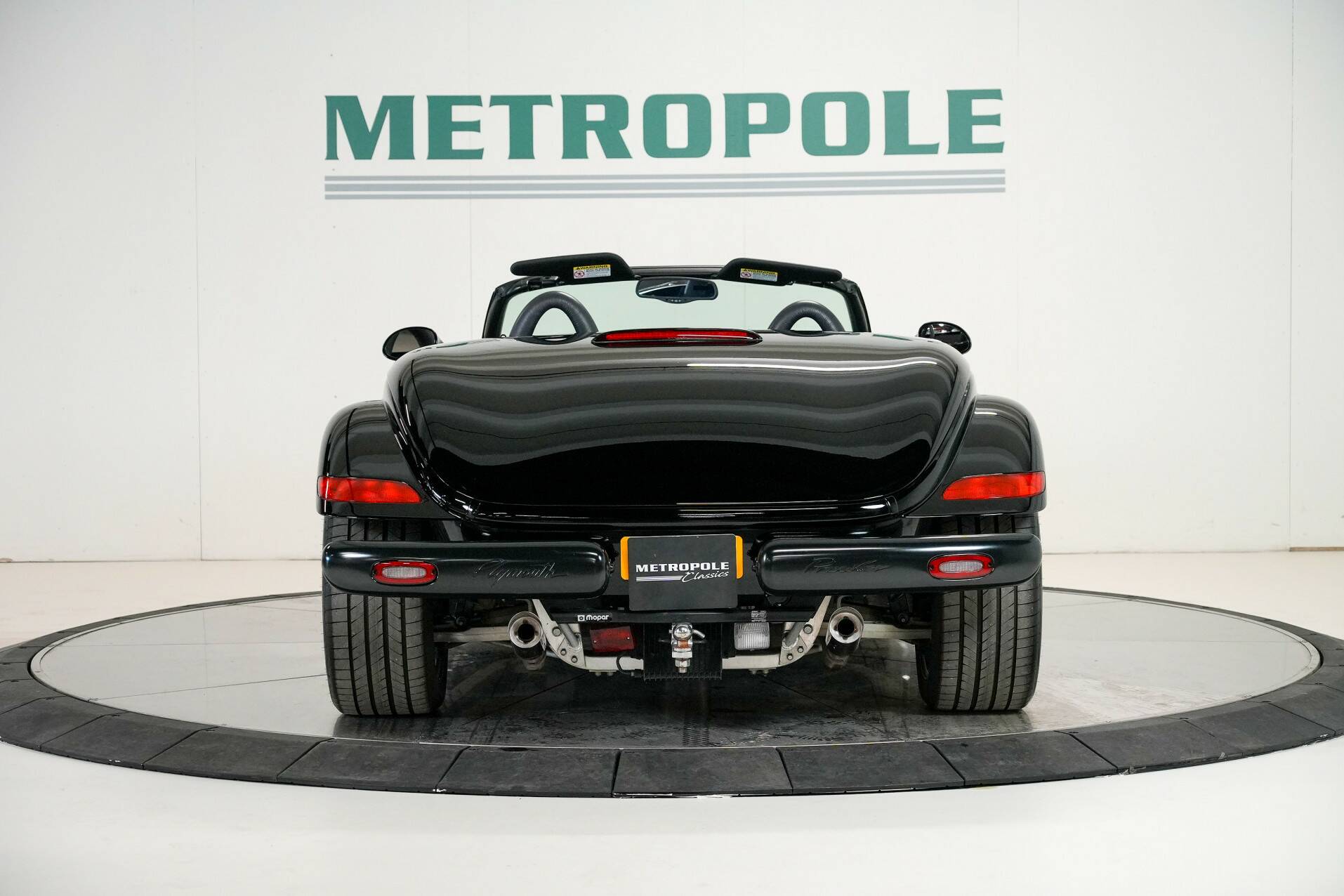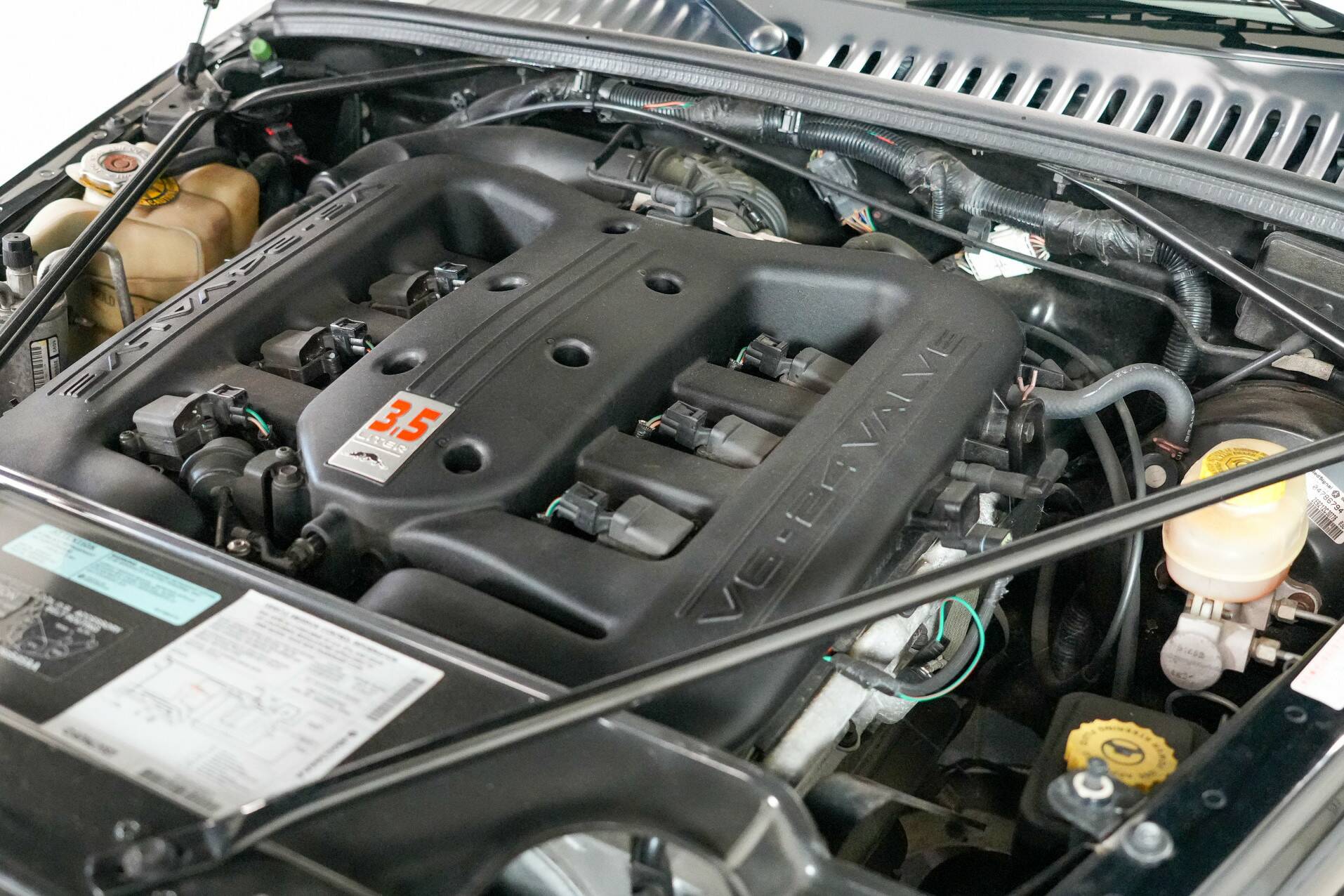 The car shown here is virtually unused and appears new. It is black with a black leather interior. White gauges are visible on the dashboard. It also features a 24-valve engine with a 3.5-liter displacement and 257 horsepower, providing ample power. It also comes with a matching trailer so you can carry suitcases or something similar. A truly special car for someone looking for something completely different than a regular car. You do need a certain amount of courage to venture out in a Plymouth Prowler.