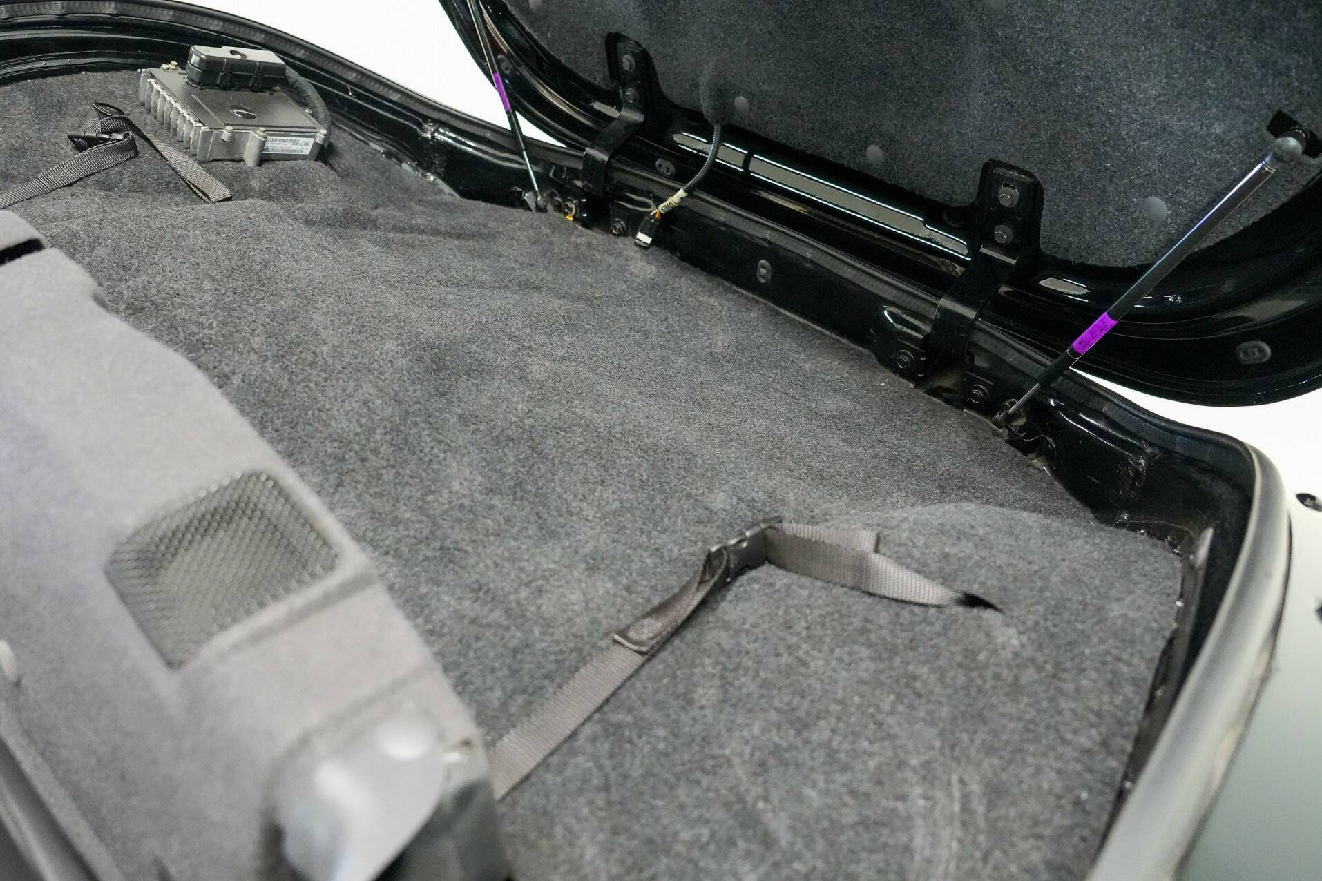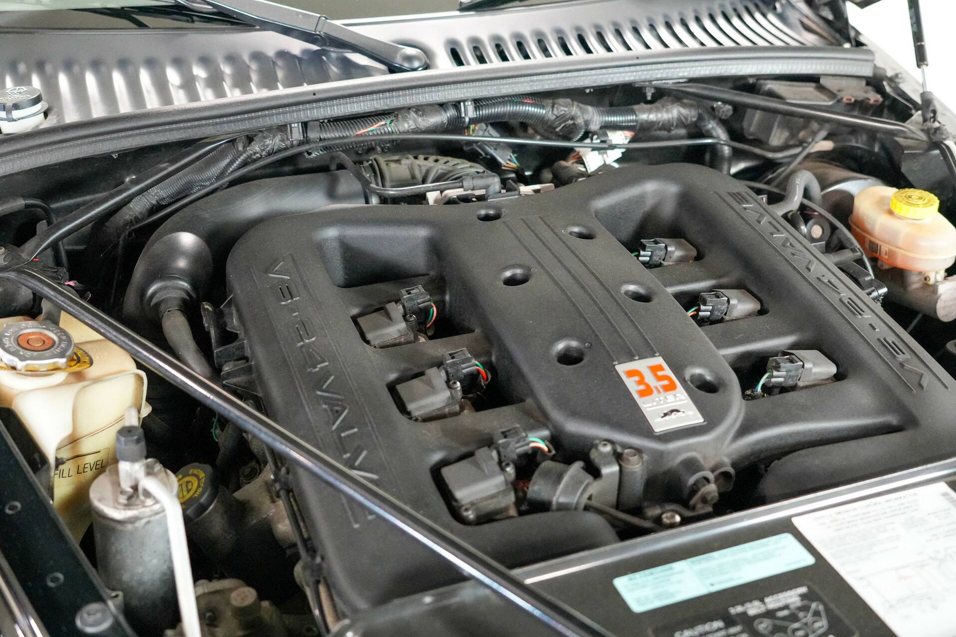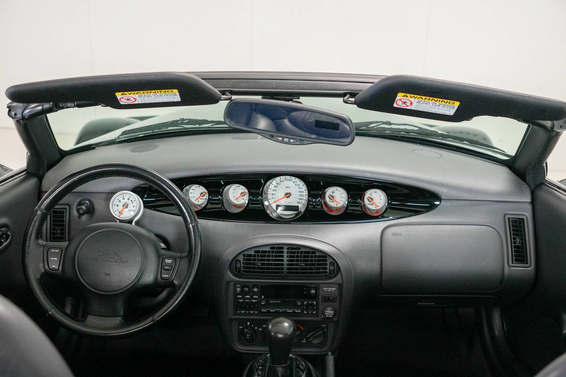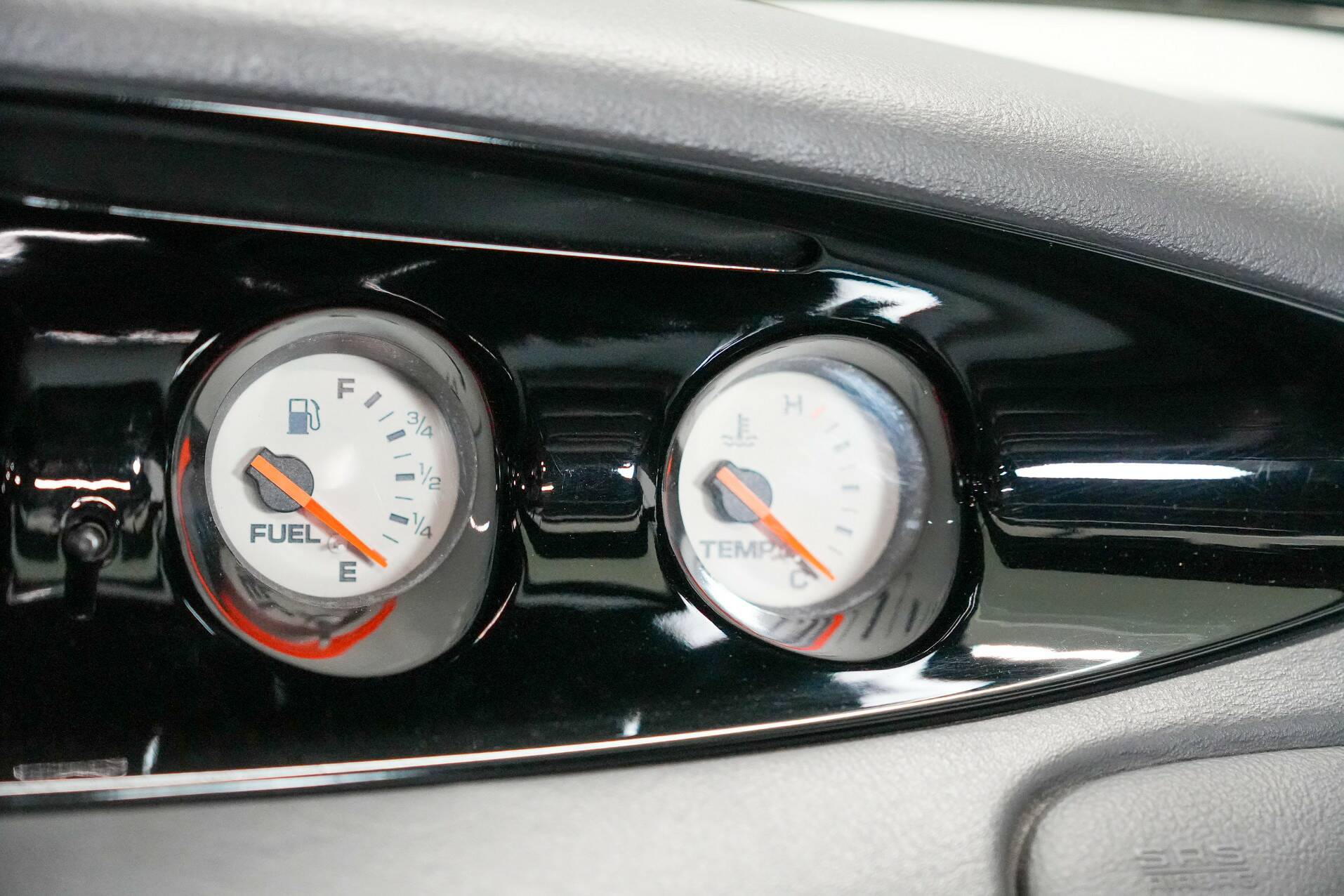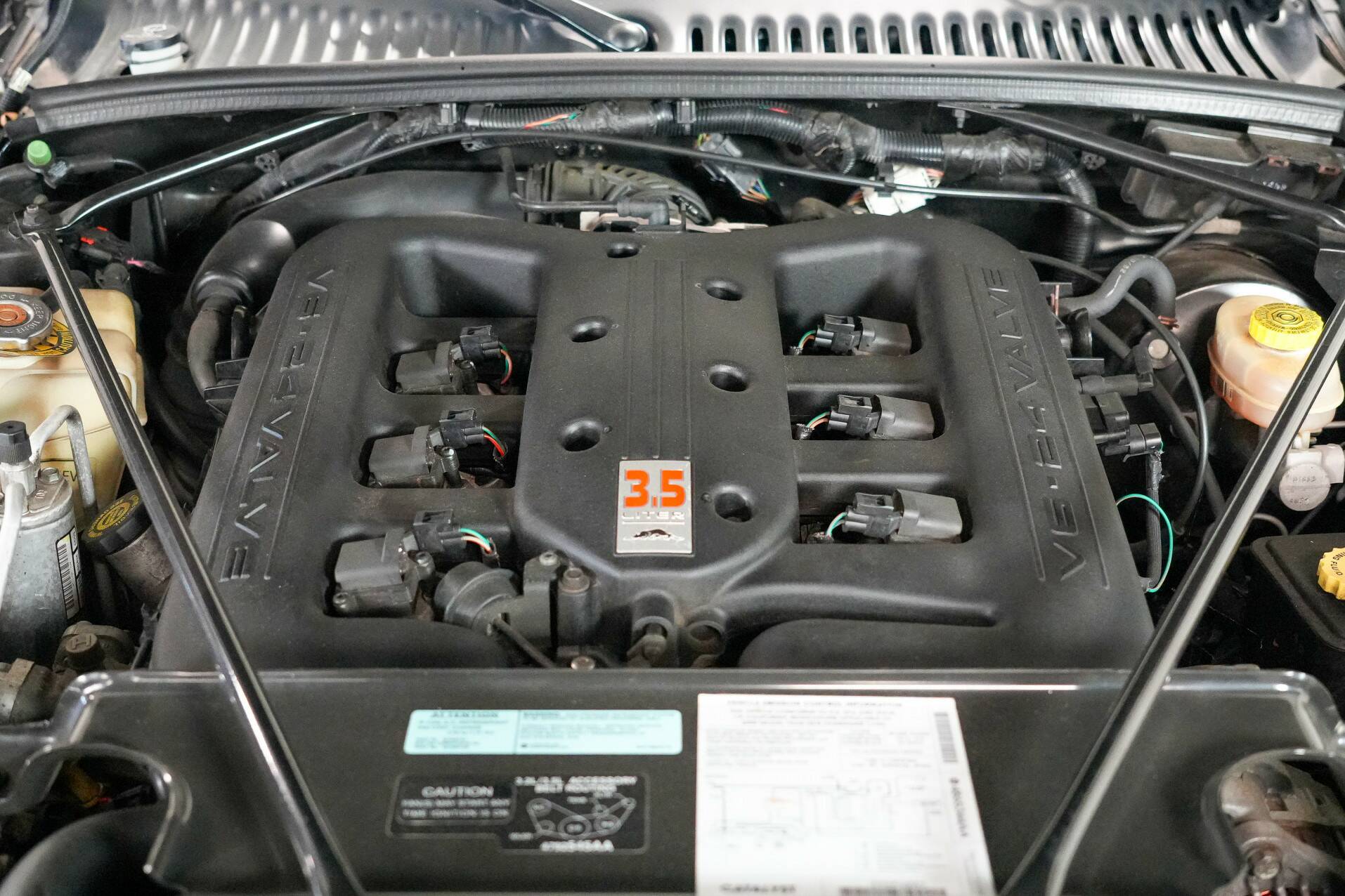 The car shown here is virtually unused and appears new. It is black with a black leather interior. White gauges are visible on the dashboard. It also features a 24-valve engine with a 3.5-liter displacement and 257 horsepower, providing ample power. It also comes with a matching trailer so you can carry suitcases or something similar. A truly special car for someone looking for something completely different than a regular car. You do need a certain amount of courage to venture out in a Plymouth Prowler.