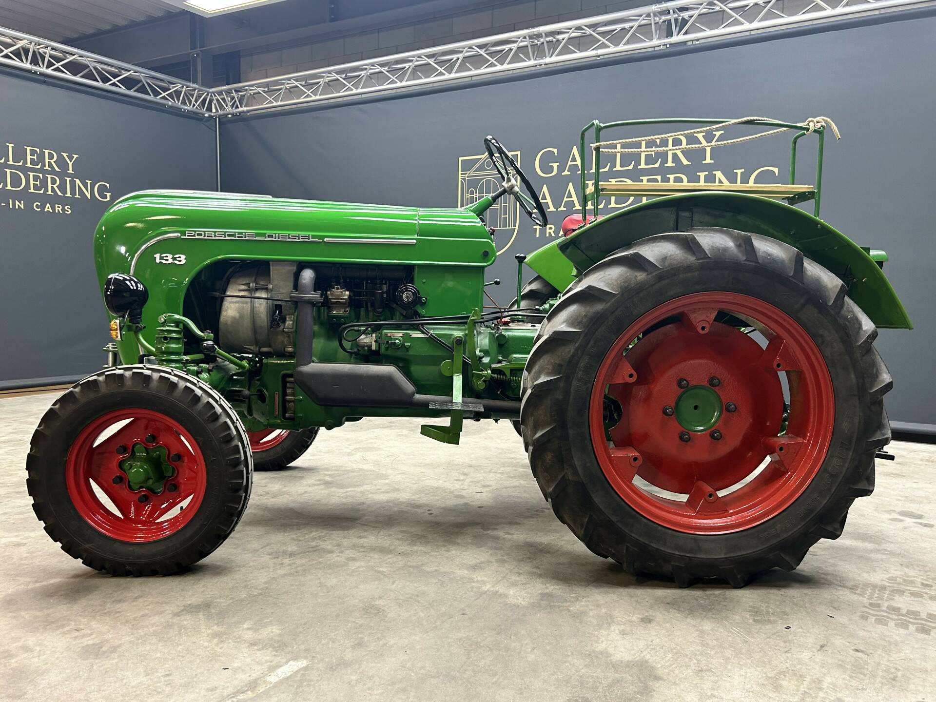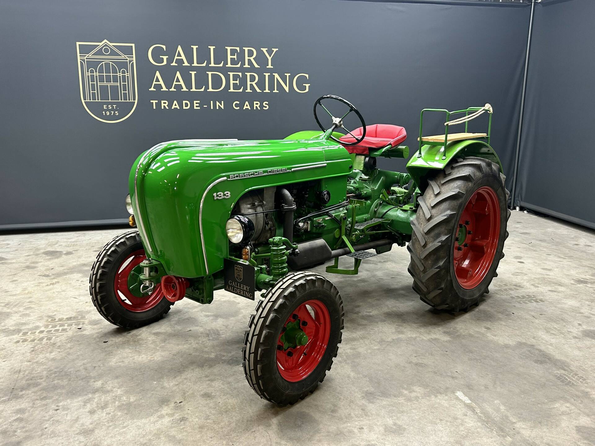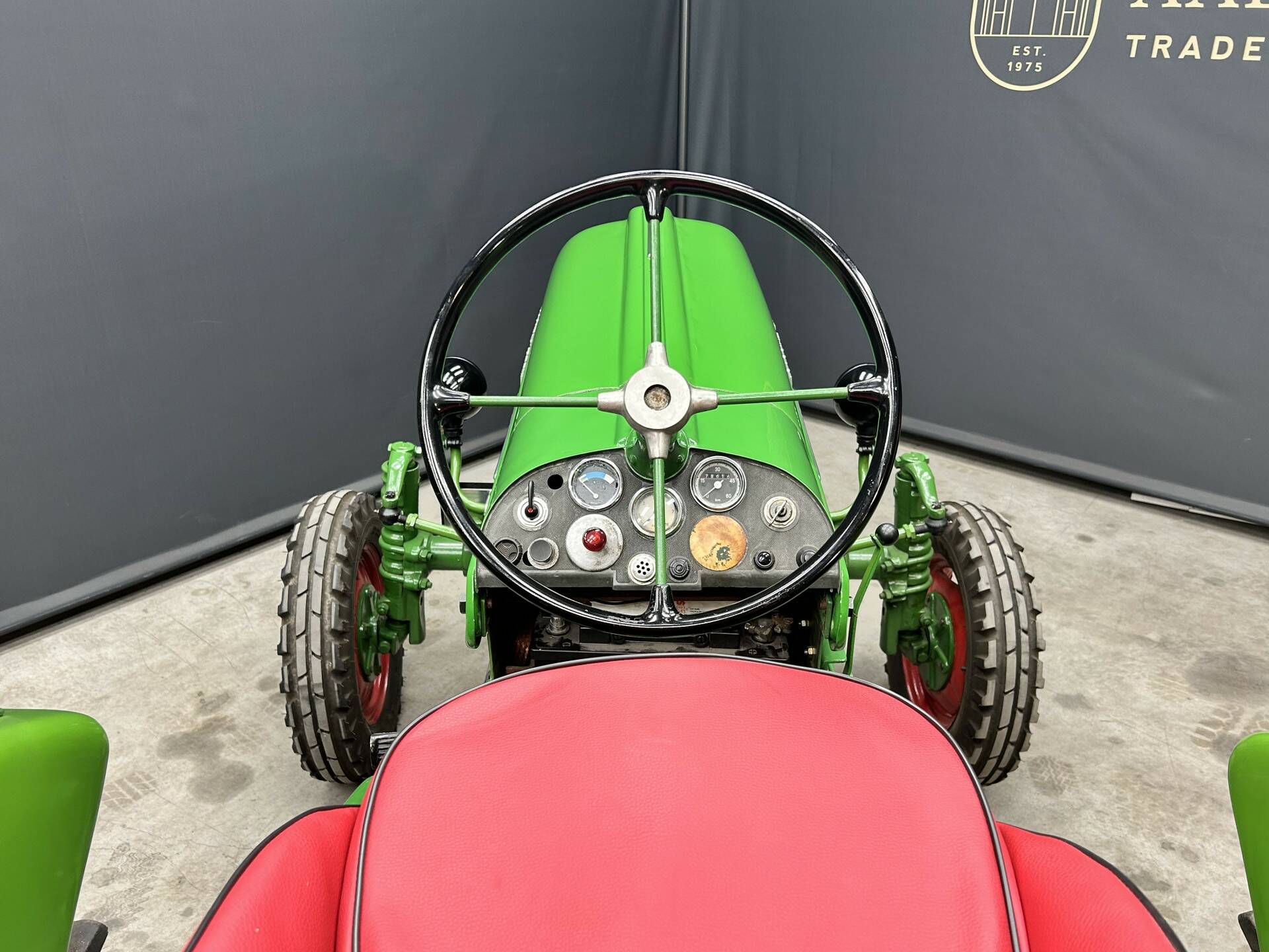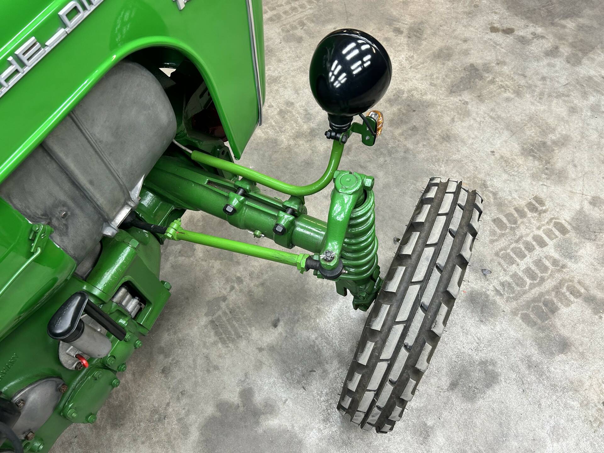 The 1956 Porsche A133 seamlessly blends practical strength with striking design. Finished in its original "Allgaier" green and presented as a rare 3-person version, this tractor brings the past to life with refined charm and exceptional versatility.