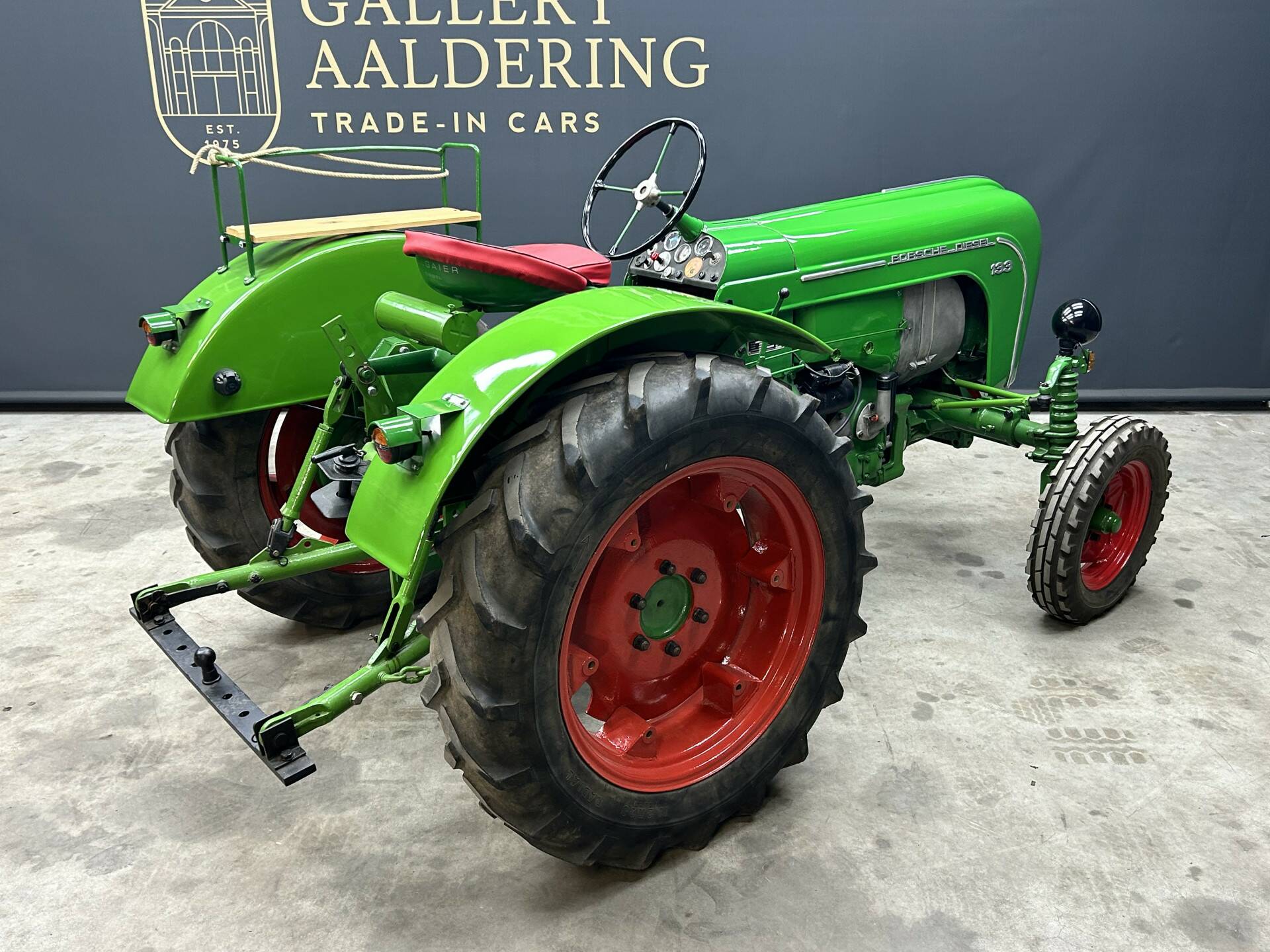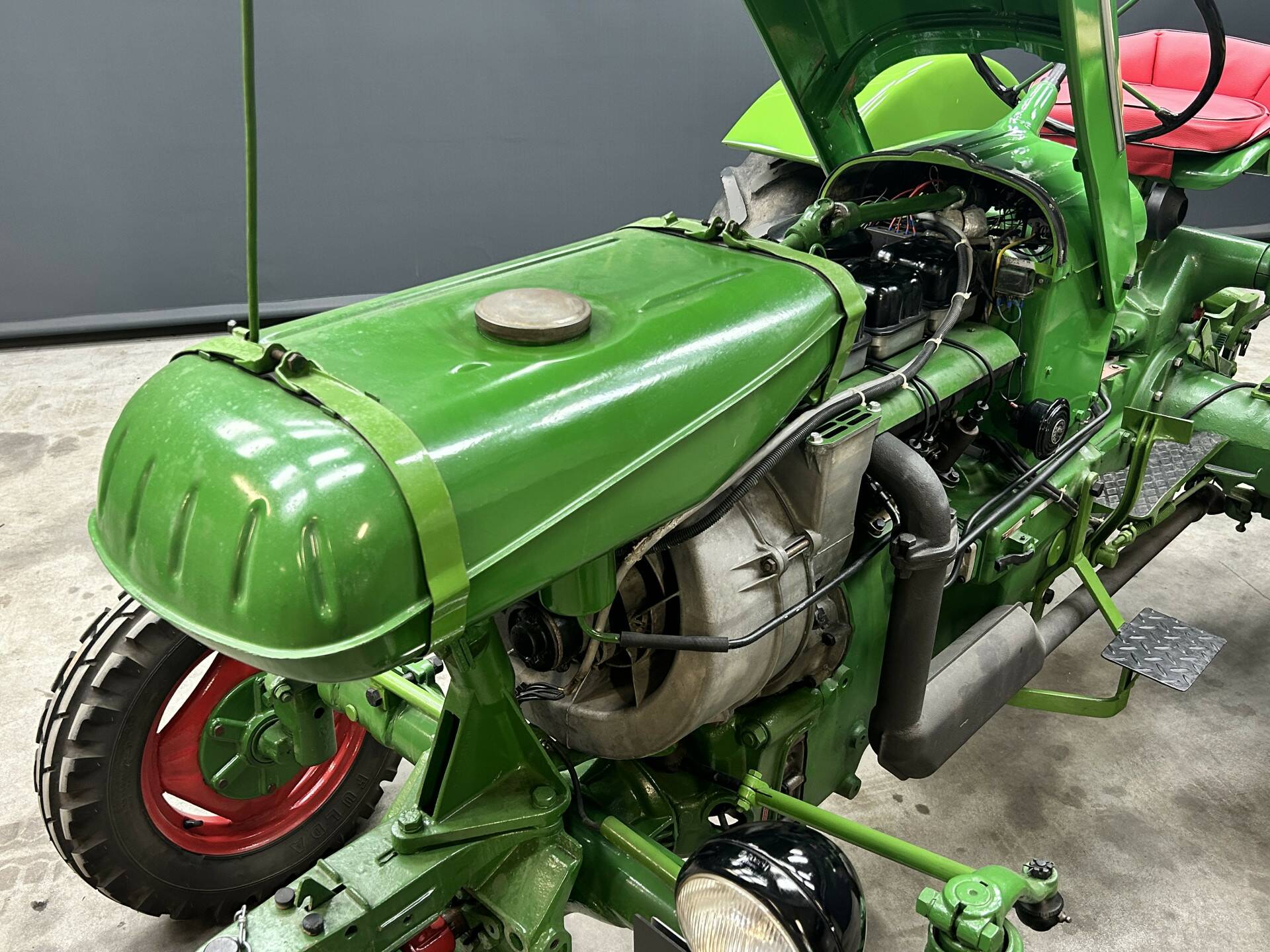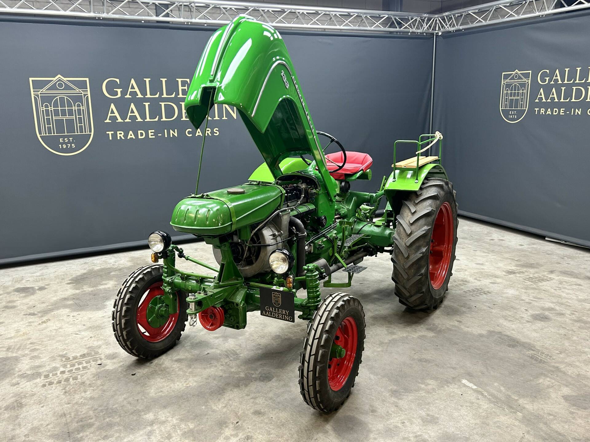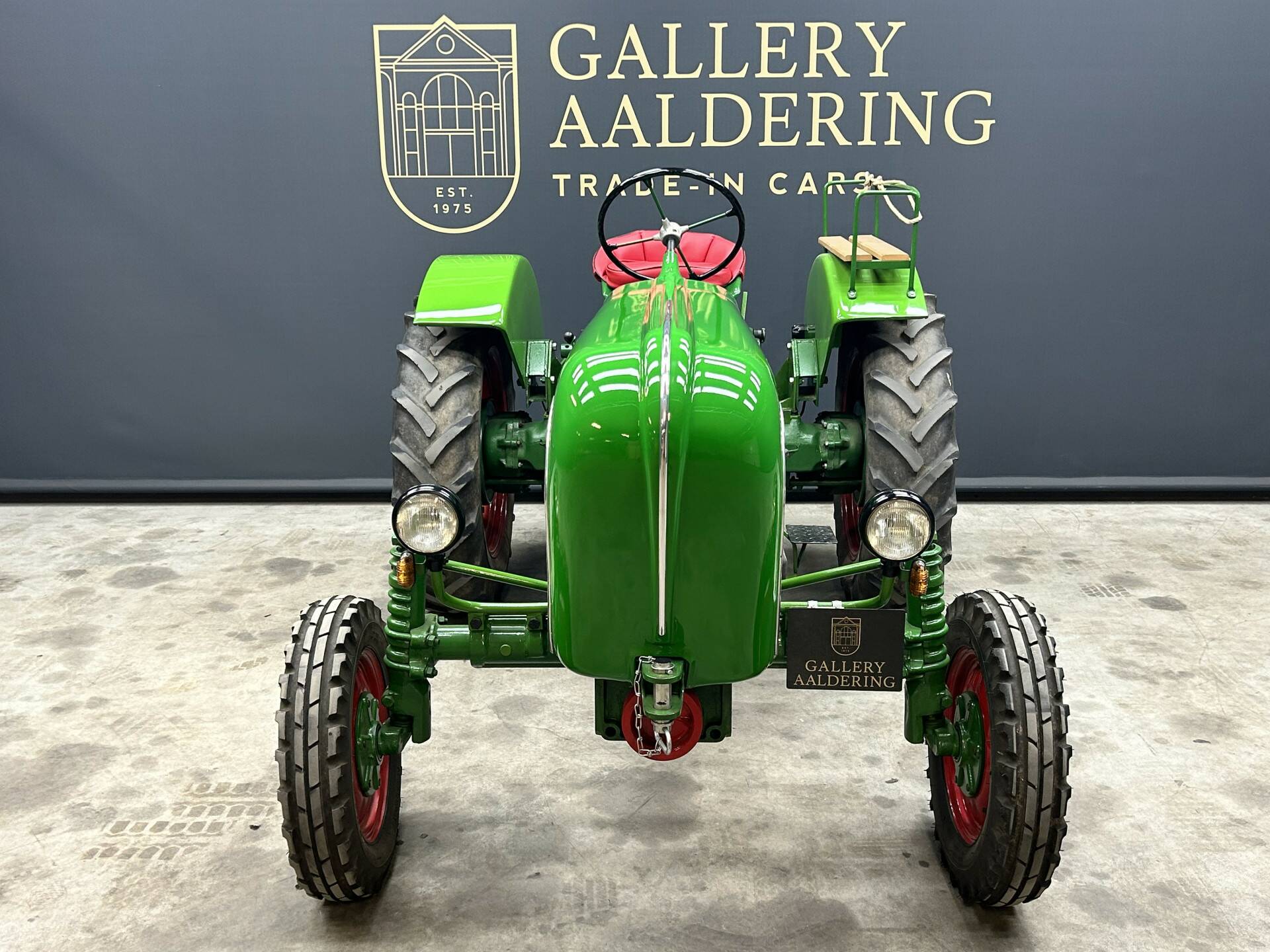 The 1956 Porsche A133 seamlessly blends practical strength with striking design. Finished in its original "Allgaier" green and presented as a rare 3-person version, this tractor brings the past to life with refined charm and exceptional versatility.