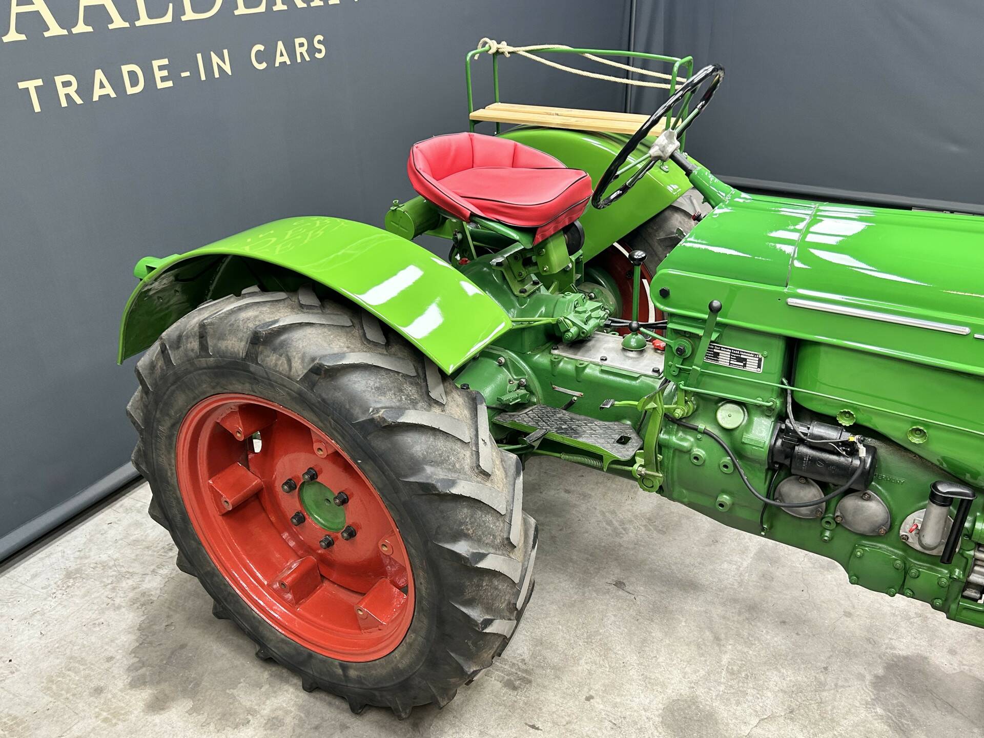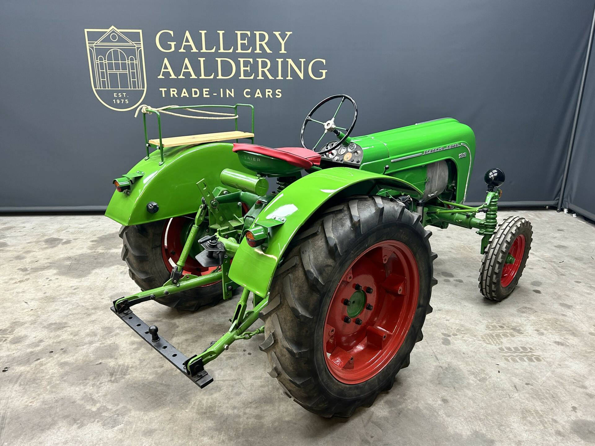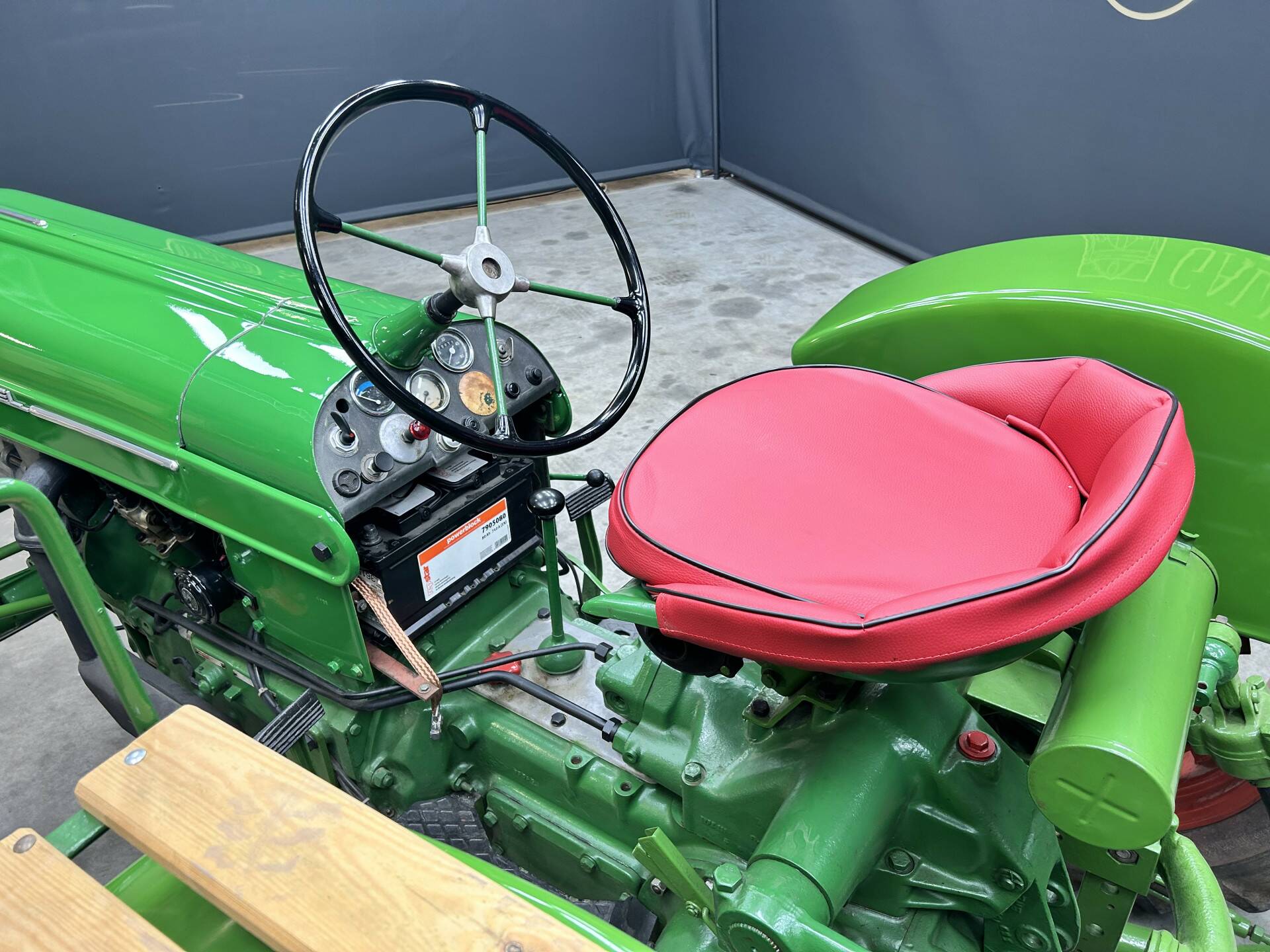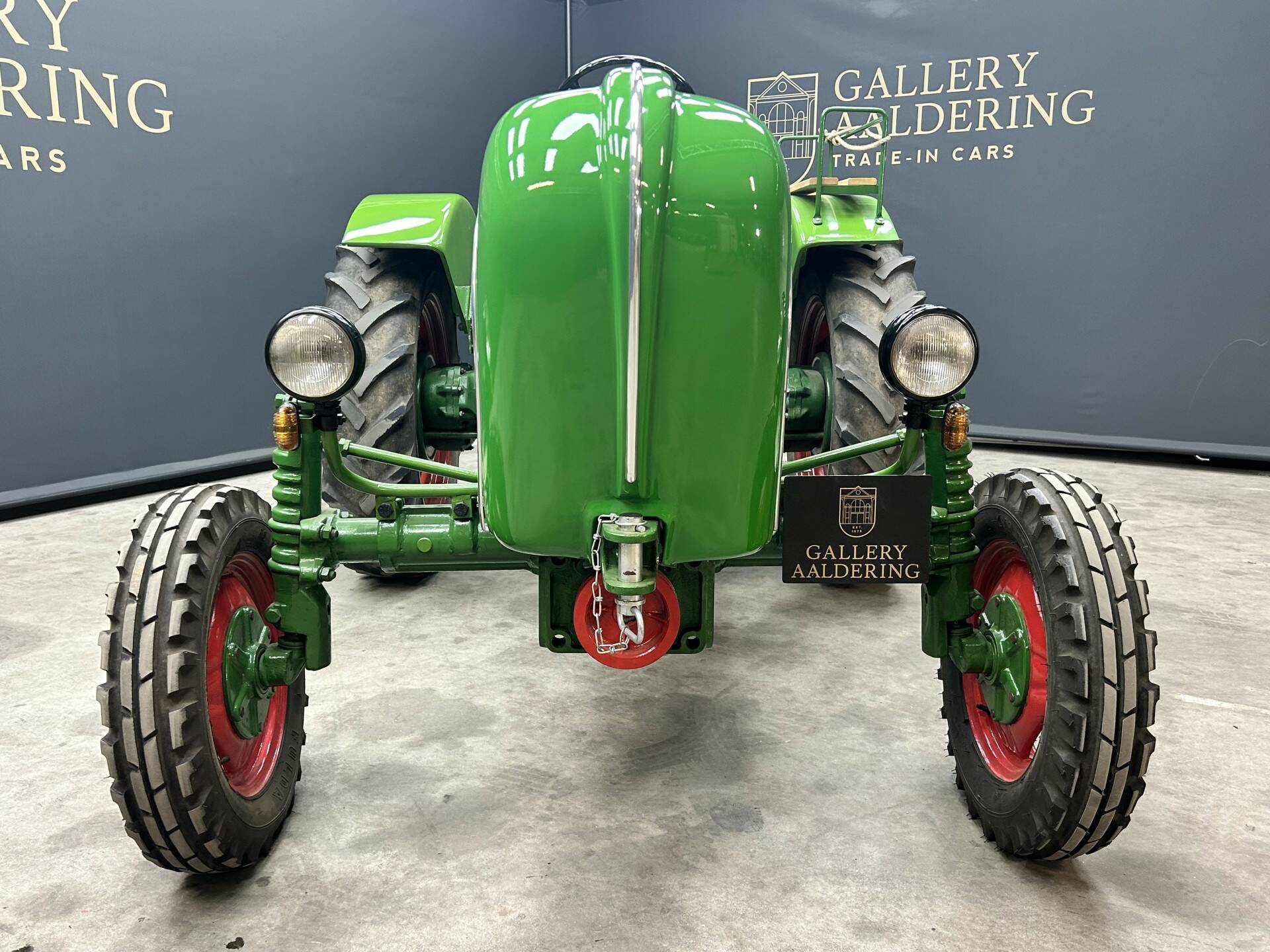 The 1956 Porsche A133 seamlessly blends practical strength with striking design. Finished in its original "Allgaier" green and presented as a rare 3-person version, this tractor brings the past to life with refined charm and exceptional versatility.