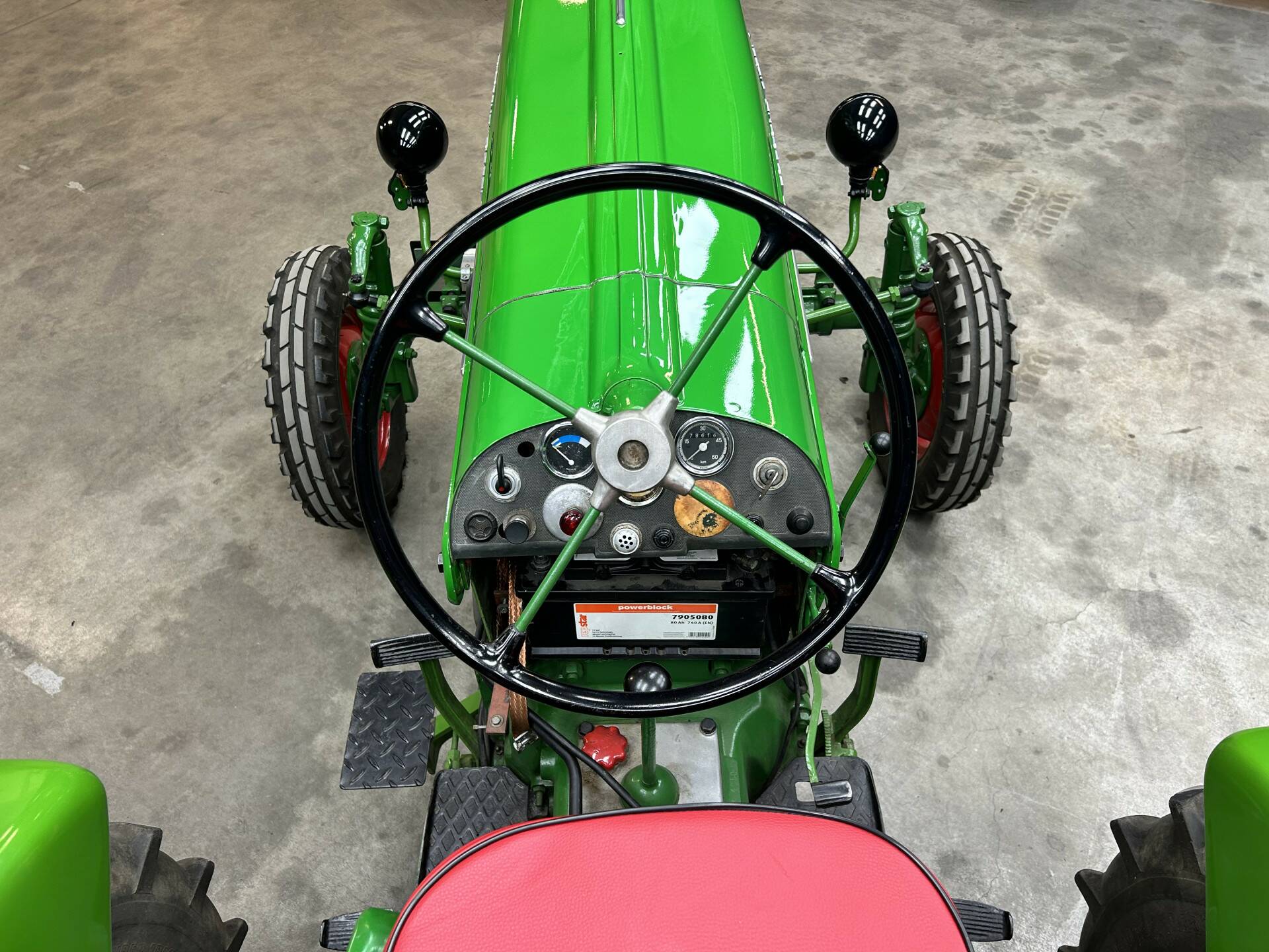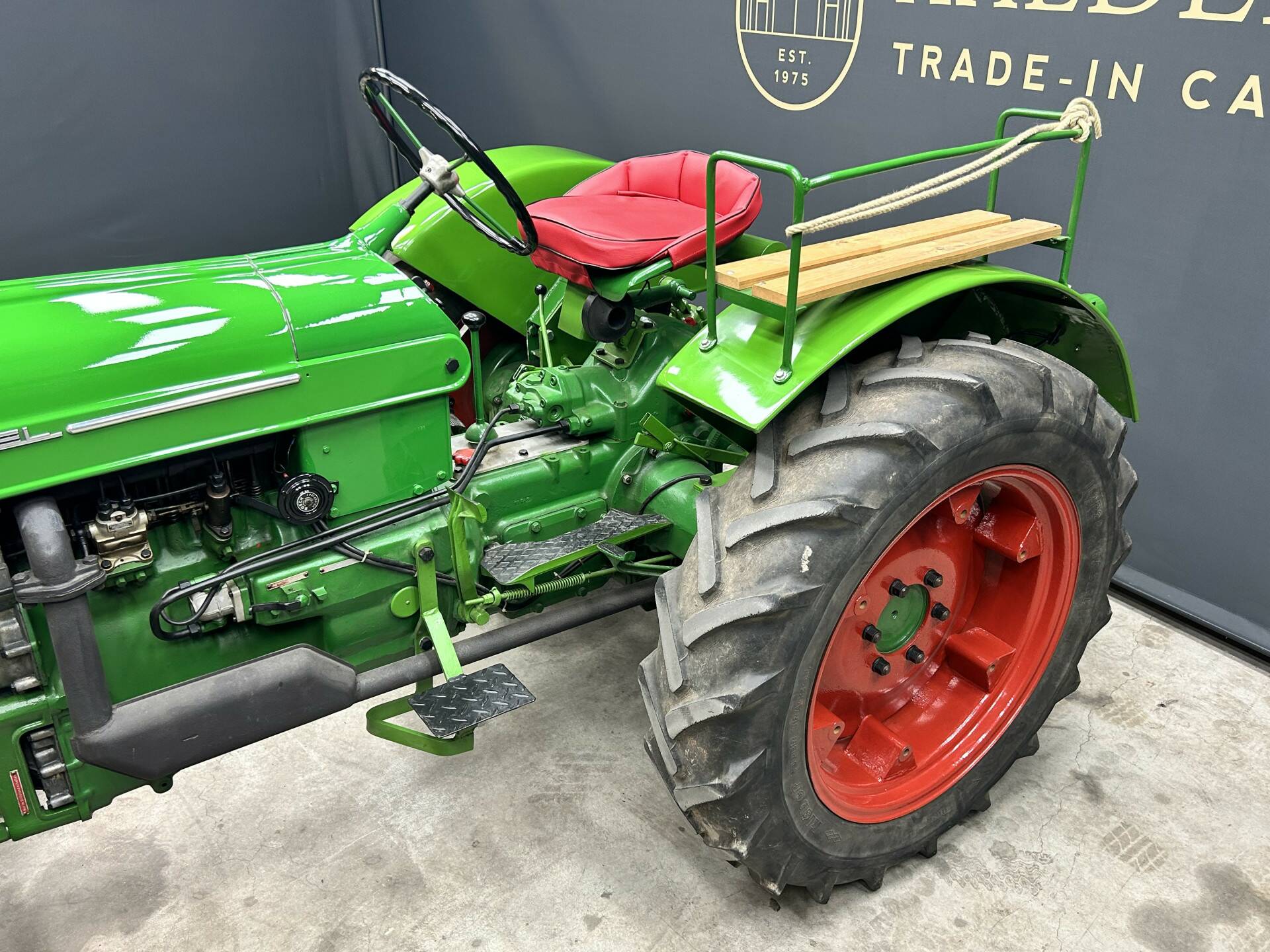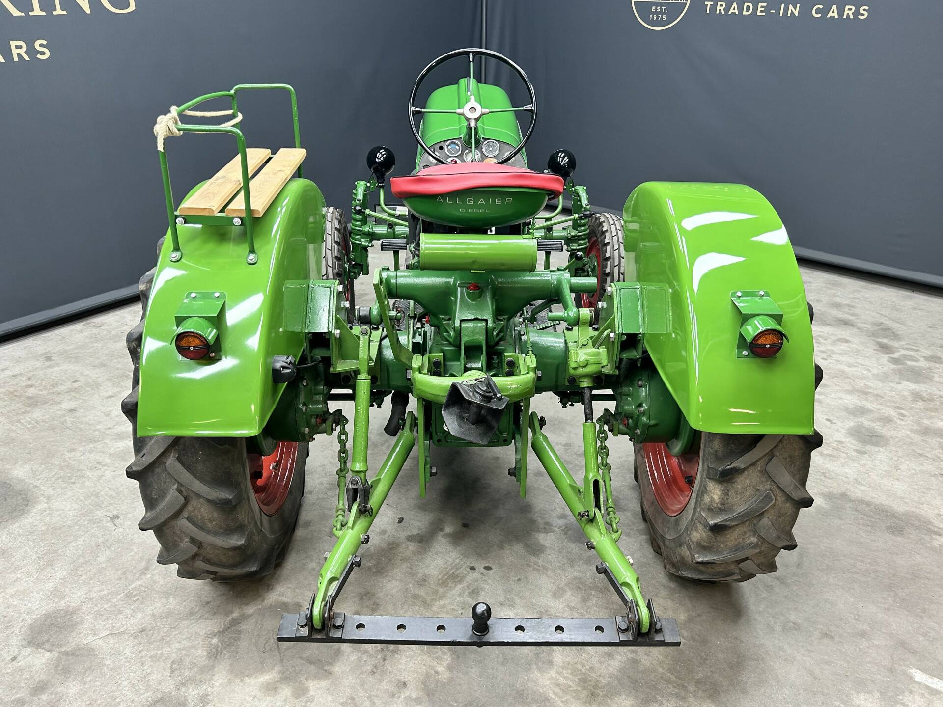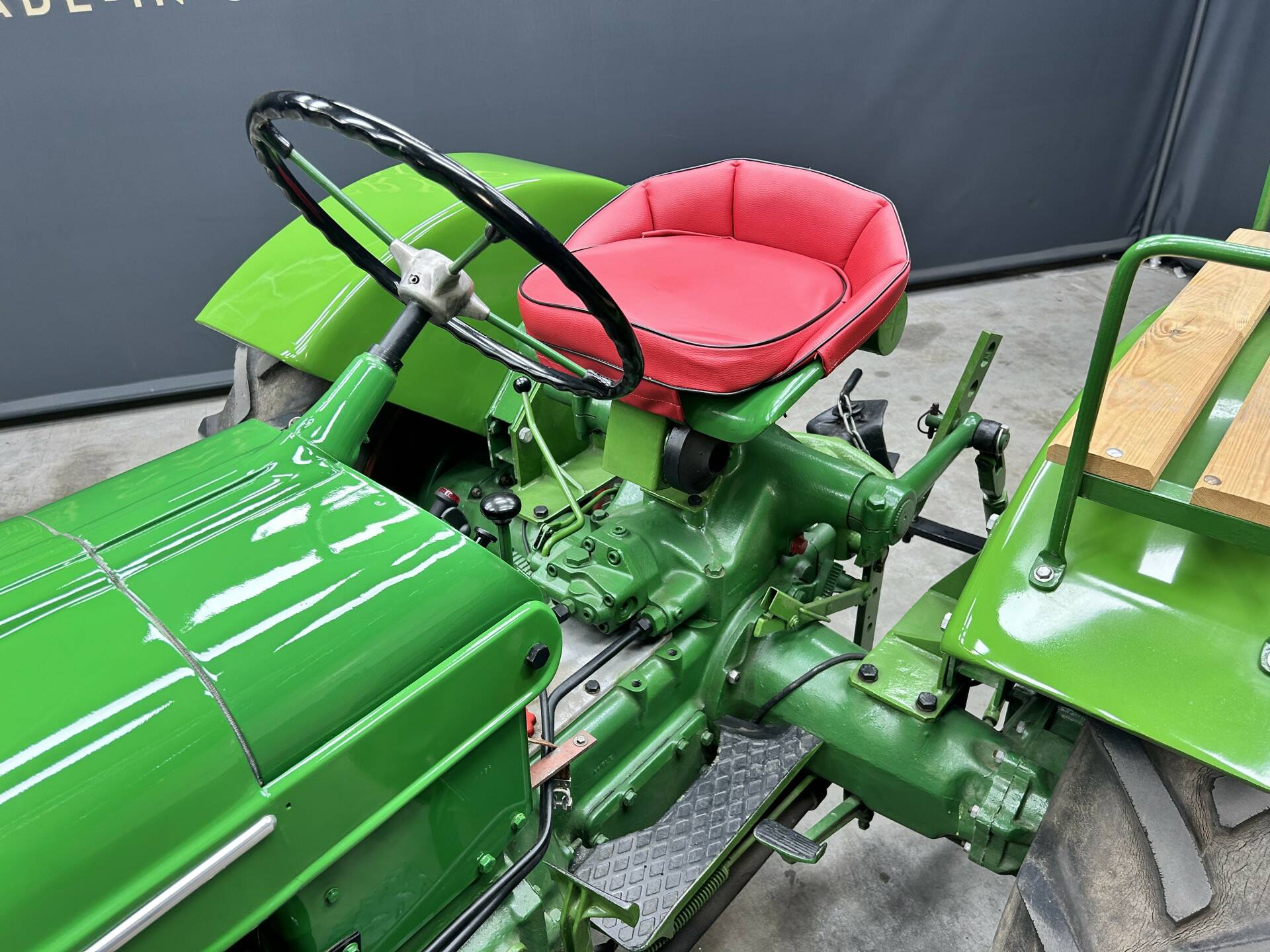 The 1956 Porsche A133 seamlessly blends practical strength with striking design. Finished in its original "Allgaier" green and presented as a rare 3-person version, this tractor brings the past to life with refined charm and exceptional versatility.