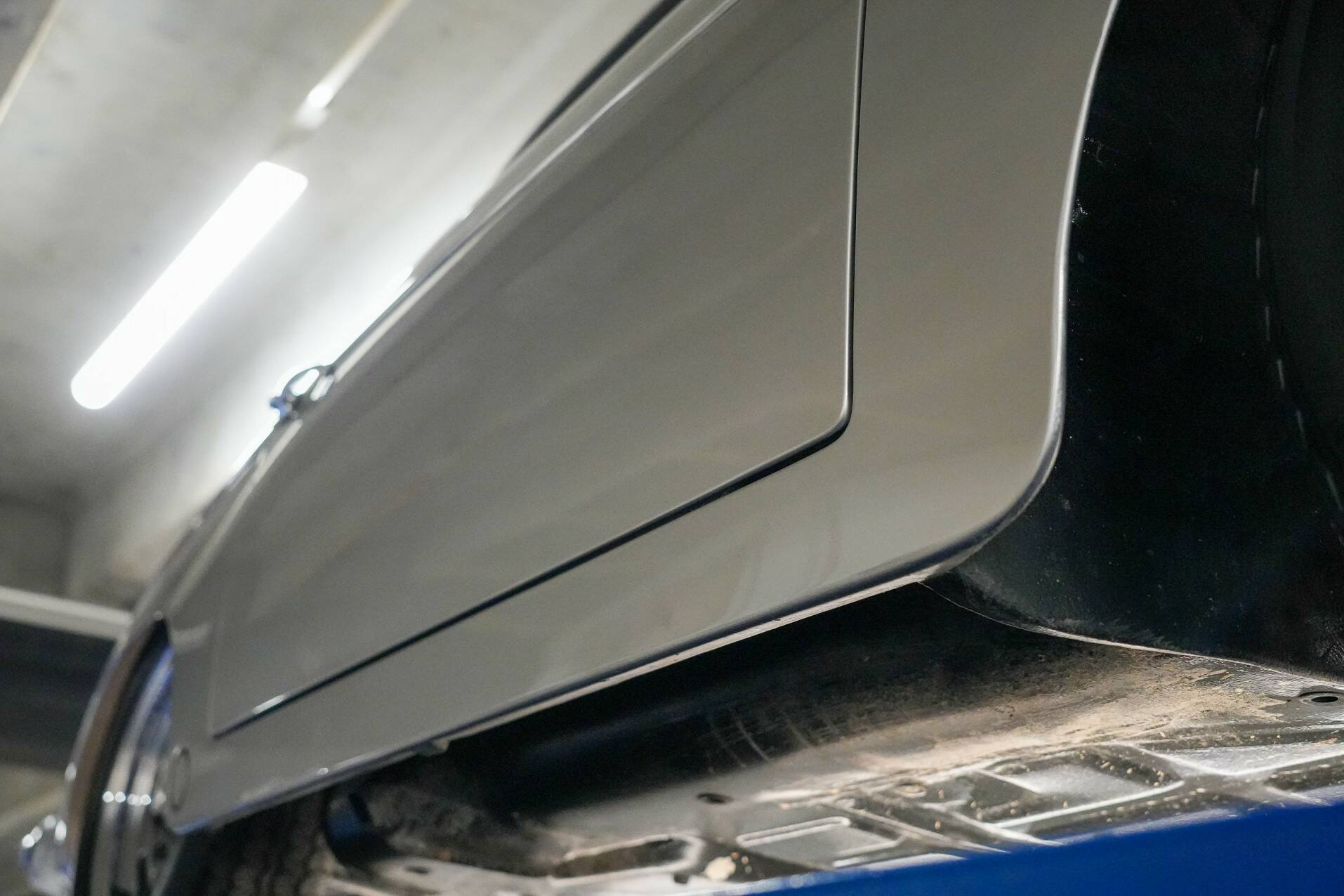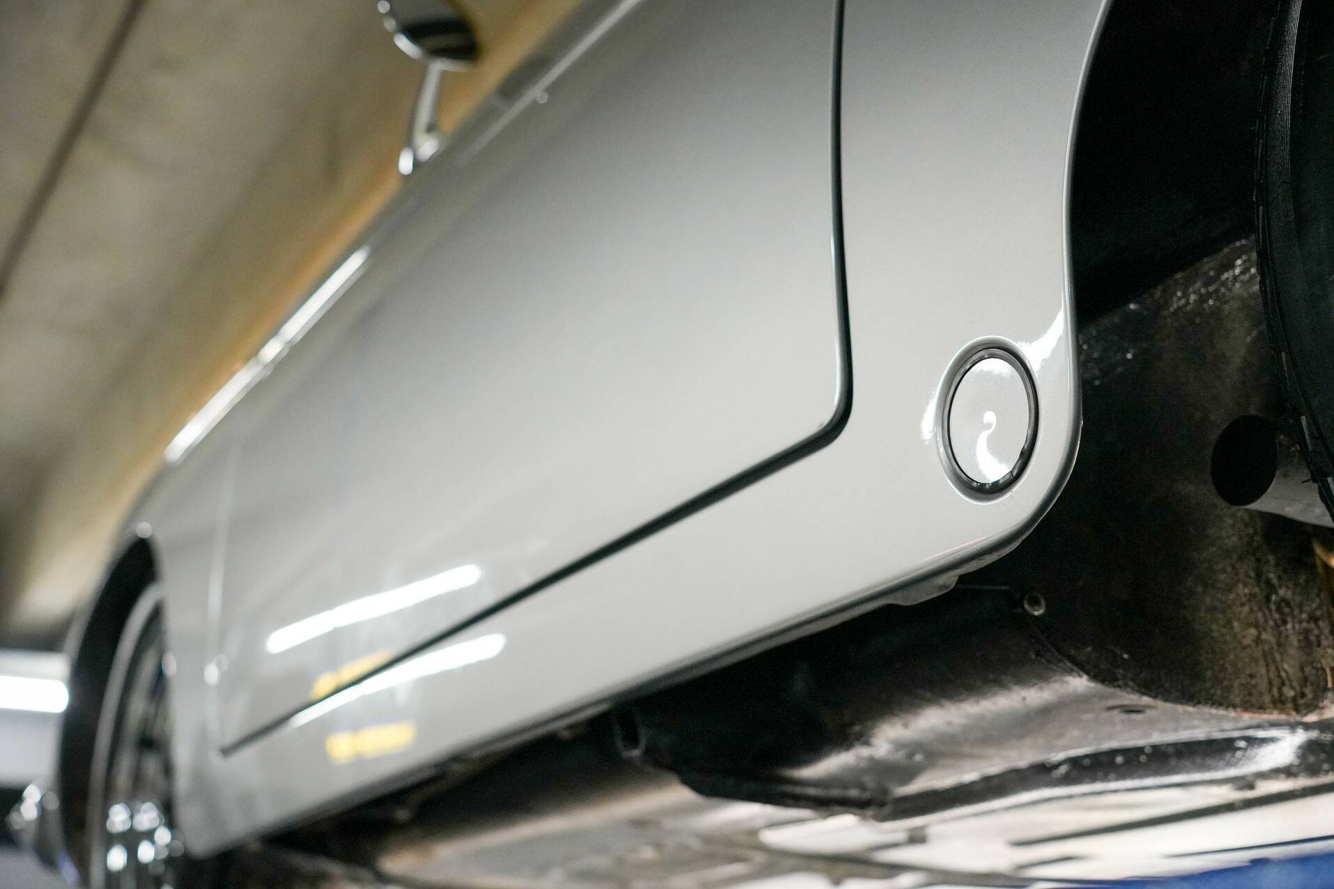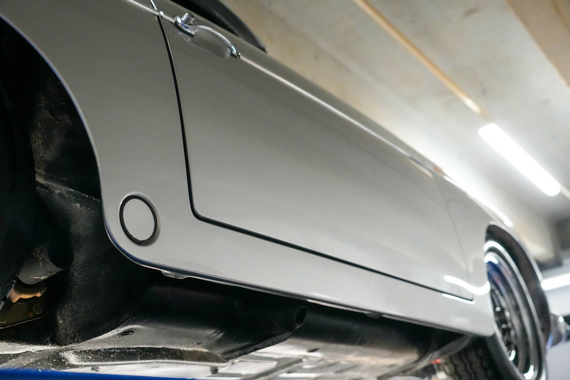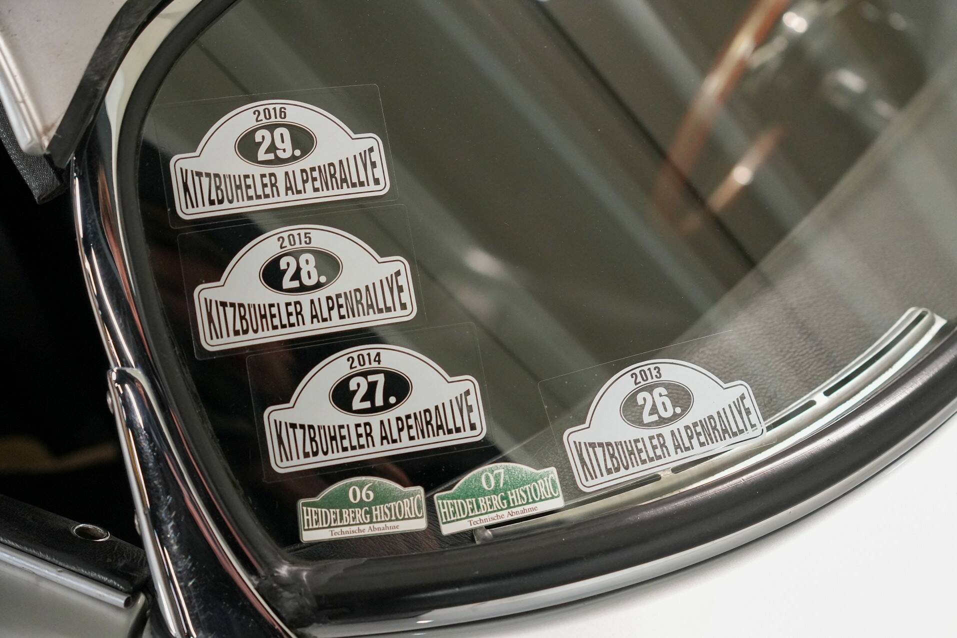 When purchased by the current owner in 1999, the car had an older restoration and was used frequently for rallies across Europe. In 2015 to facilitate its restoration the body was mounted on a straightening jig to make subsequent work easier and ensure exact gap dimensions. The body was then immersed in a KTL sealing bath.