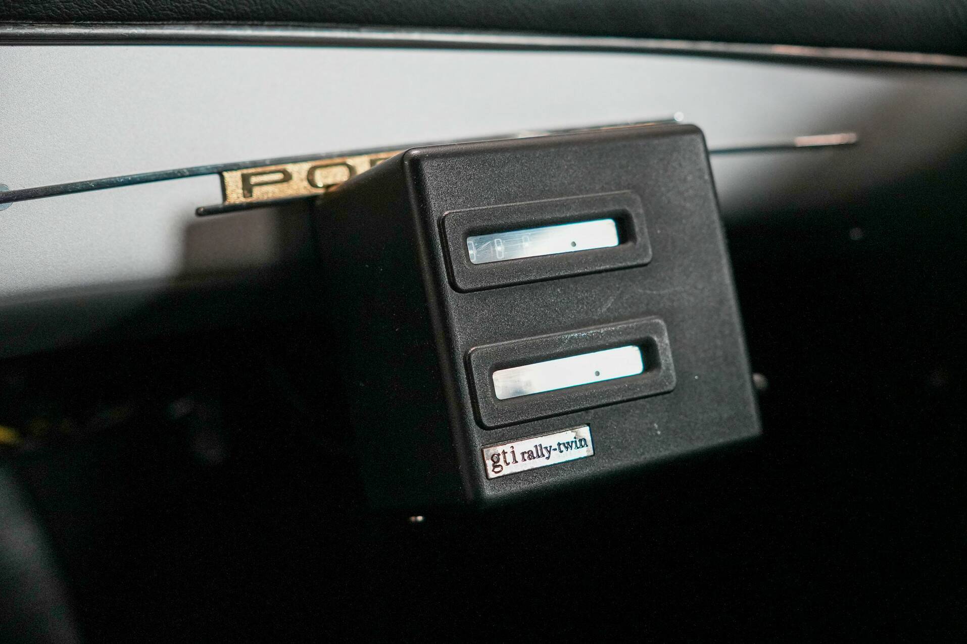 Additionally, the car is equipped with a roll-bar and a twin-pipe exhaust system. An OMP fire extinguisher is installed in the space provided for the rear seat, and OMP seatbelts are installed.