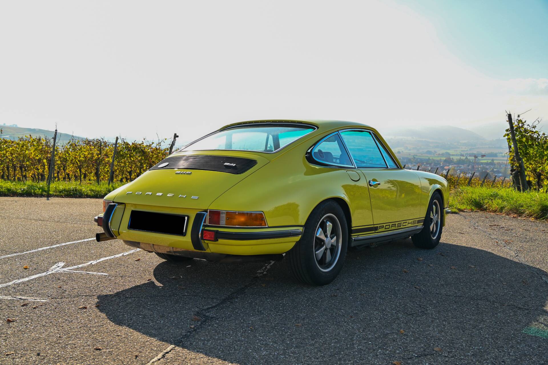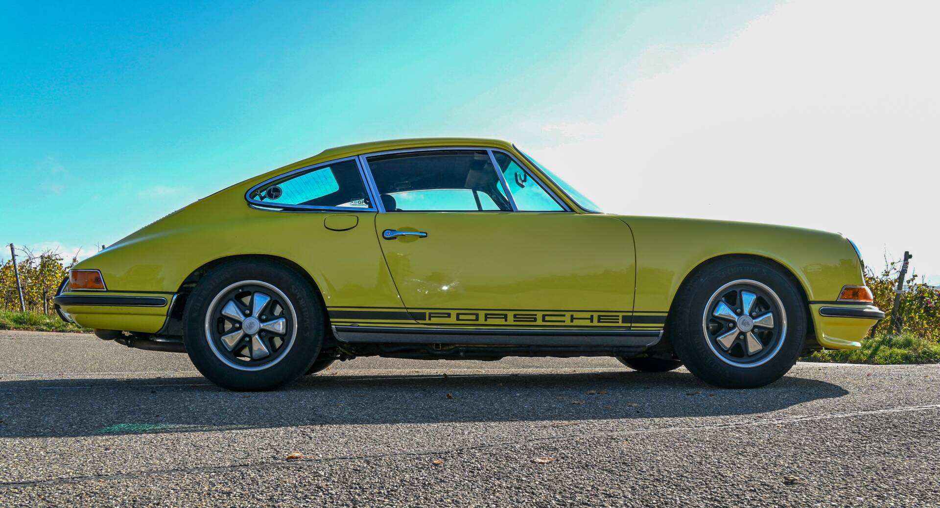 Porsche 911 S 2.4 – Modelljahr 1972 „Ölklappe“ – Hellgelb 117 – 5-Gang – Fuchs