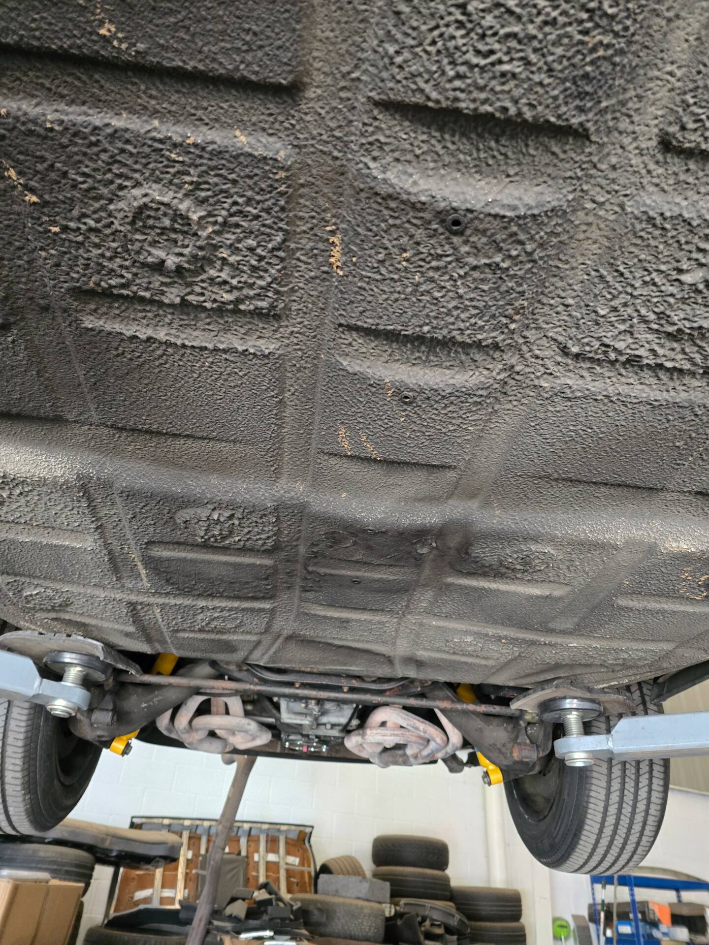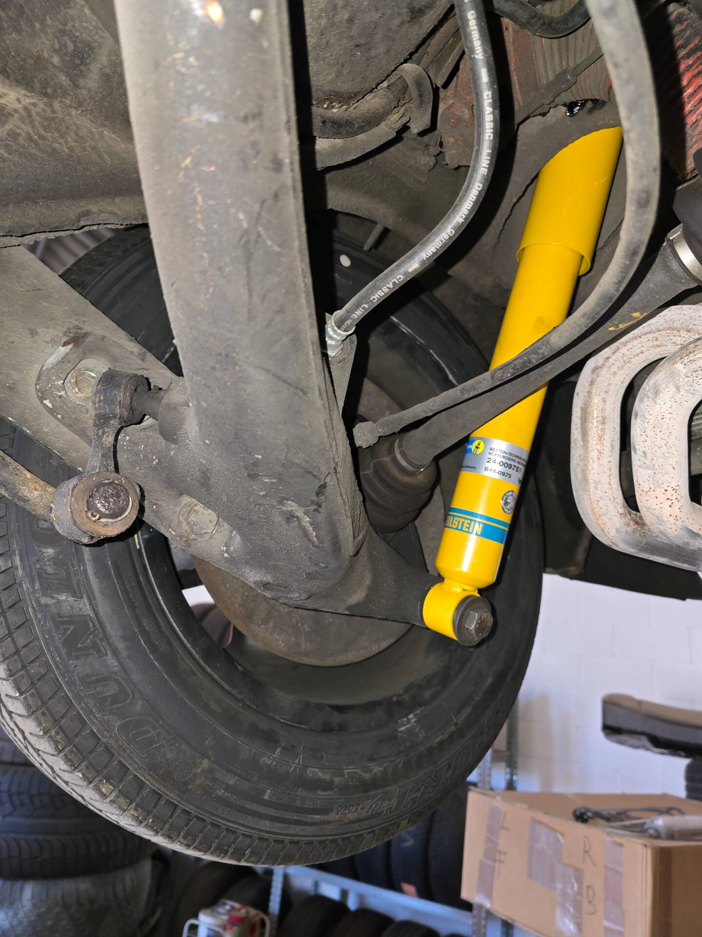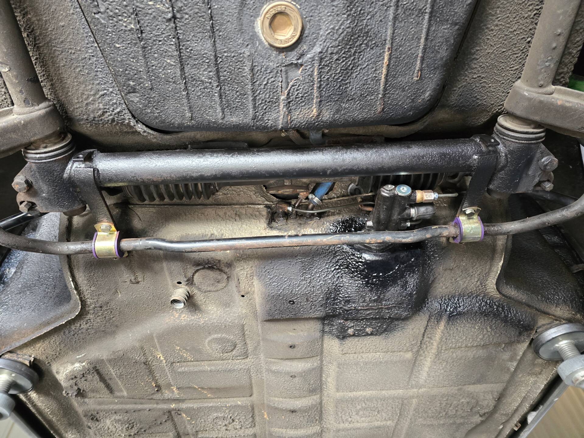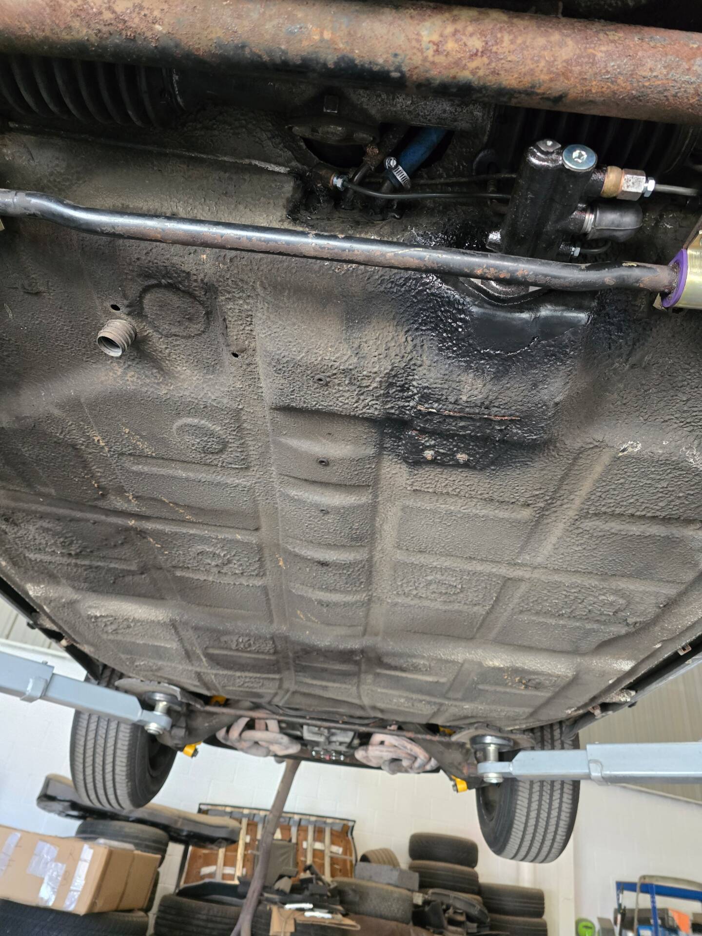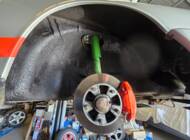 Der 2.7-Liter-Boxer wurde laut Vorbesitzer bereits überholt; belegbare Nachweise hierzu liegen jedoch nicht vor. Der Motorlauf wird als einwandfrei beschrieben, auch nach längeren Fahrten zeigt sich der Motor trocken und zuverlässig. Die jüngste große Wartung beim Porsche-Spezialisten (Mai 2025, ca. 3.500 EUR) umfasste eine umfassende Motorabstimmung, ergänzt durch frisches Porsche Classic Öl 20W50 sowie neue Zündkerzen, Mengenteiler-Check und Wechsel des Ölfilters. Die Bremsanlage erhielt einen neuen Hauptbremszylinder, neue Leitungen und Bremsflüssigkeit; die Stoßdämpfer (inkl. Domlager vorn) wurden ebenso wie alle vier Reifen erneuert. Die Vorderreifen stammen von Pirelli (DOT 2225), die Hinterreifen von Dunlop (DOT 2019). Verbaut sind PU-Buchsen für ein präzises, vibrationsarmes Fahrgefühl. Die originale Abgasanlage wurde durch eine Spaghettianlage ersetzt, die Wärmetauscher entfallen.