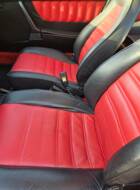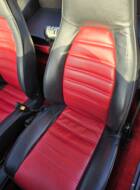 Der Innenraum präsentiert sich in einem außergewöhnlich gepflegten Originalzustand mit nahezu vollständiger Erhaltung der ab Werk verbauten Elemente. Das Lenkrad und die Instrumente zeigen nur minimale Gebrauchsspuren, die Sitzbezüge und Türverkleidungen wurden offenbar stets sorgsam behandelt. Das Blaupunkt-Radio wurde durch ein modernes Gerät ersetzt, das originale Frankfurt-Radio samt Kabelsatz ist jedoch vorhanden und kann auf Wunsch wieder installiert werden. Der Umbau des Tachometers erfolgte auf km/h-Skala, während die Wegstrecke weiterhin in Meilen gezählt wird (aktueller Stand: ca. 101.321 mls ≈ 163.000 km).