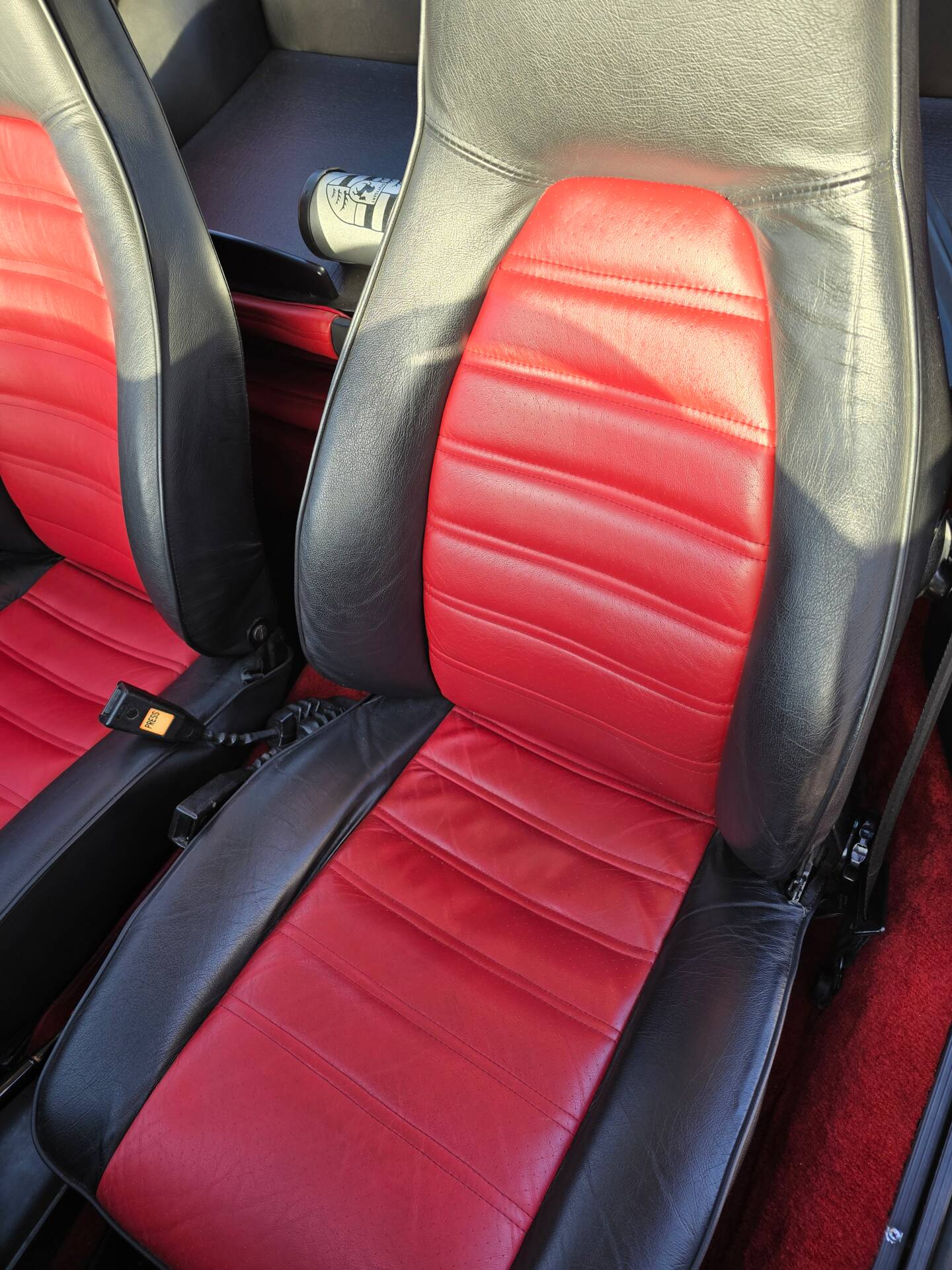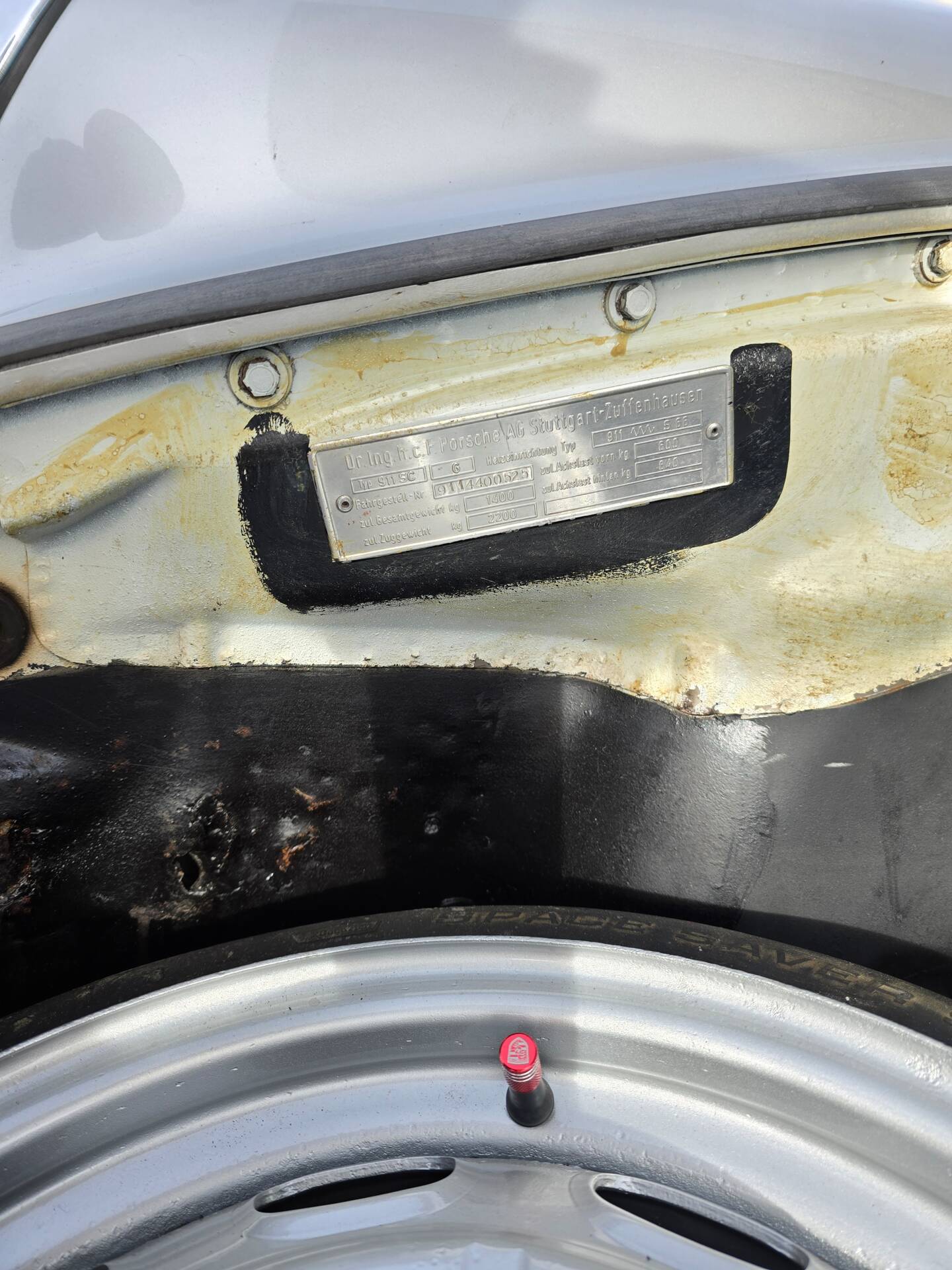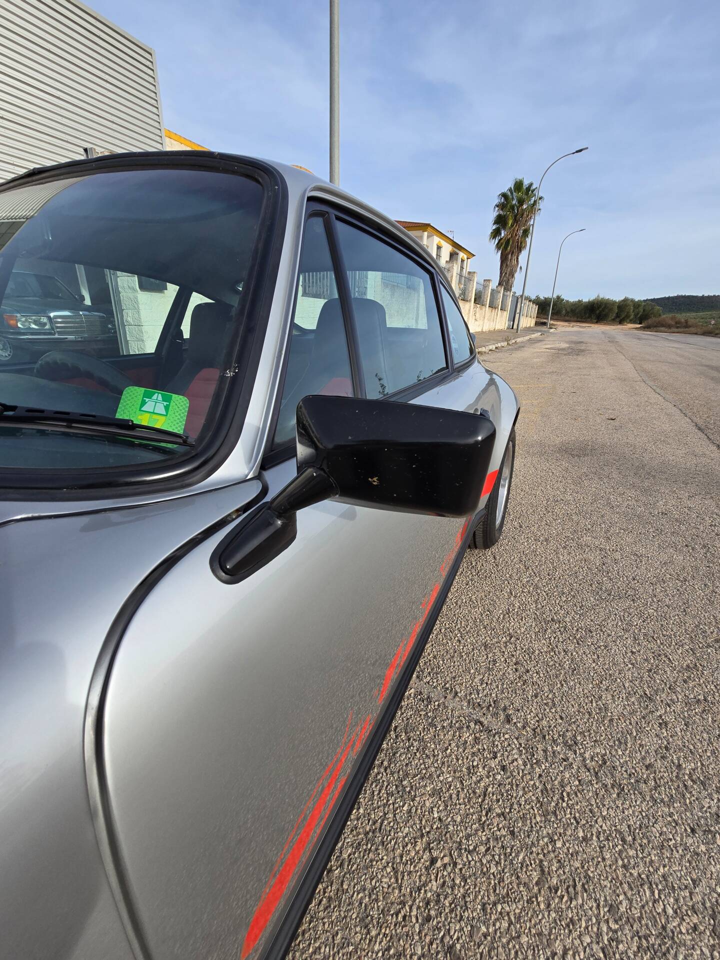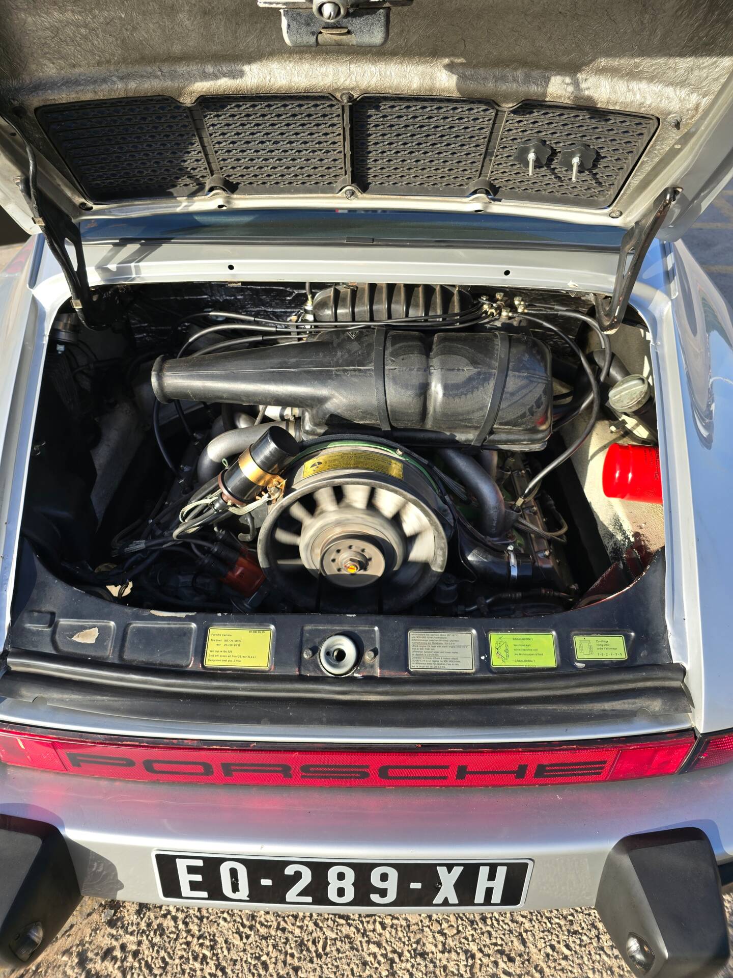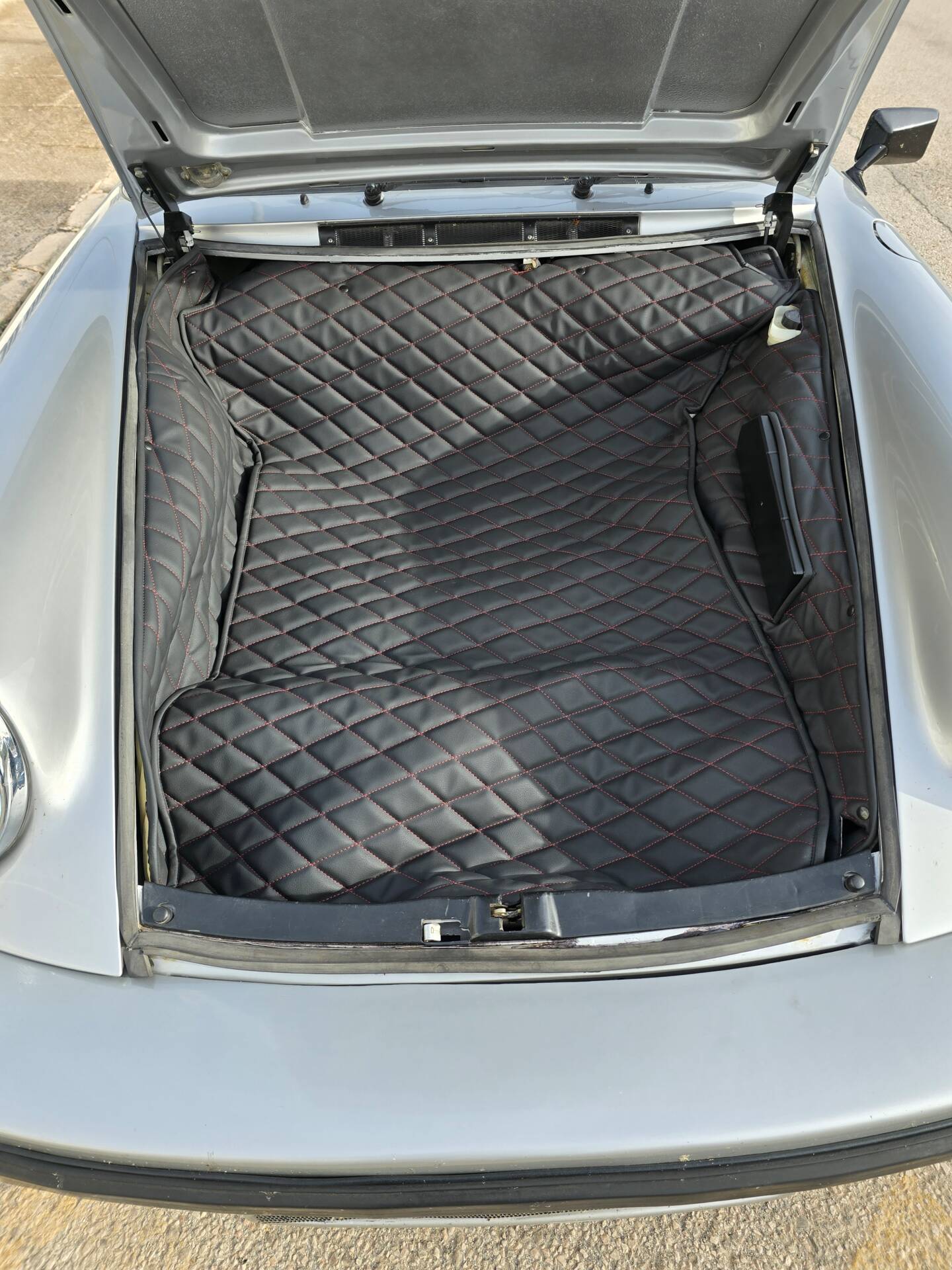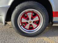 Der Wagen wurde ab Werk in Grandprix-Weiß ausgeliefert und im Zuge einer früheren Restaurierung in ein klassisches Porsche Silber umlackiert. Die aktuelle Farbkombination harmoniert mit den rot lackierten Fuchsfelgen im RS-Stil (Maxilite) und verleiht dem Coupé eine eigenständige, sportliche Optik. Der originale „Entenbürzel“ ist ebenso vorhanden wie die ab Werk montierten elektrischen Fensterheber und Colorverglasung. Die H4-Scheinwerfer wurden auf offiziell zugelassene LED-Birnen von Philips umgerüstet, um den zeitgenössischen Charakter mit verbesserter Alltagstauglichkeit zu verbinden. Optisch zeigen sich Front- und Heckpartie stimmig, die Lackqualität wird vom aktuellen Besitzer als sehr gut beschrieben.