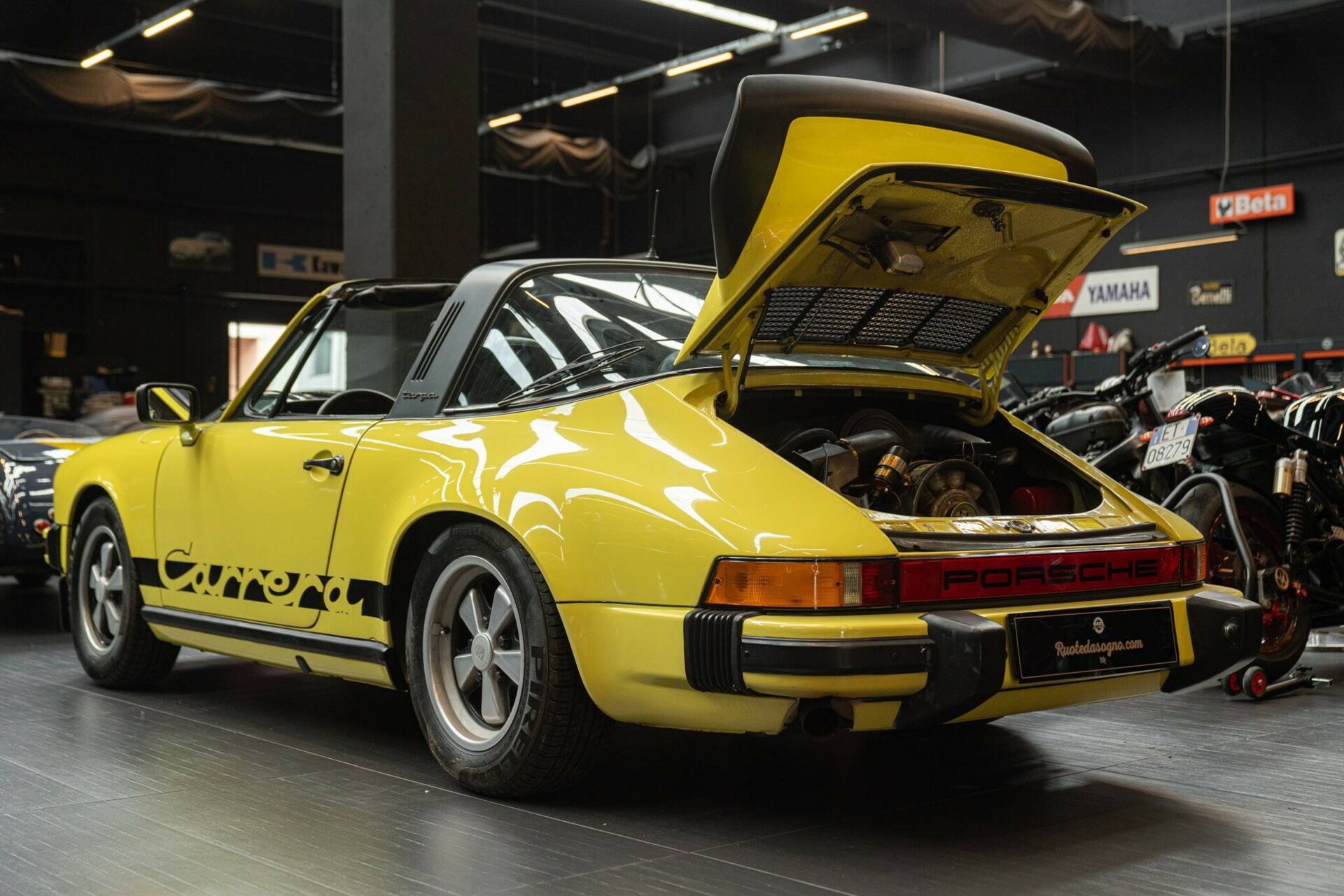 Carrera 2.7 MFI 210 CV stesso motore della Carrera RS pre-bumper versione Targa, rara vettura prodotta in pochissimi esemplari (Anno 1975 circa 180), ufficiale italiana, matching numbers, conservata non restaurata, completa di tutti i decals dell’epoca, ruotino di scorta mai usato, compressore e kit attrezzi originali. Targa originale Firenze. Vernice originale escluso cofano anteriore e paraurti anteriore, nessun incidente, sostituito il libretto di circolazione per modifica misure pneumatici approvati Porsche Italia, tenuta con cura e ricoverata sempre in garage, dichiarazione del proprietario precedente che non sono mai stati ritirati i libretti al momento dell’ acquisto da nuova. Km 48.000 originali. Apprezzata dai collezionisti per la sua rarità e da chi ricerca prestazioni ed esclusività.
