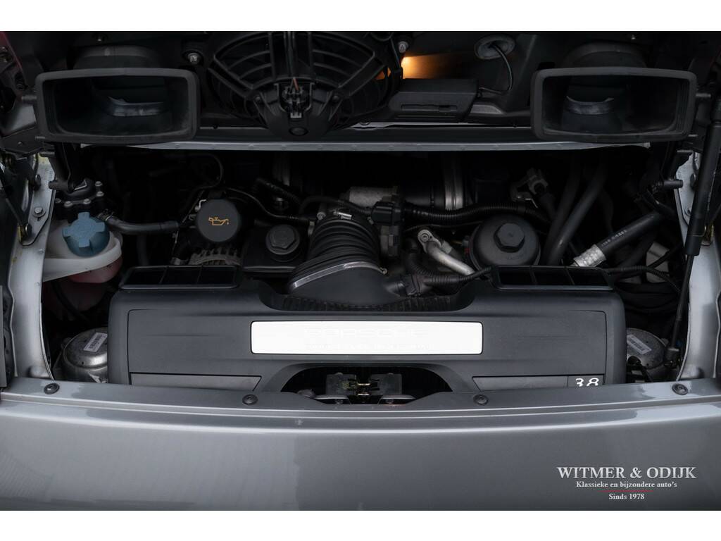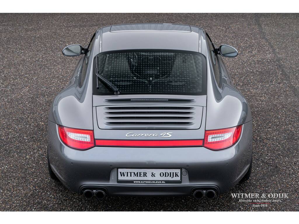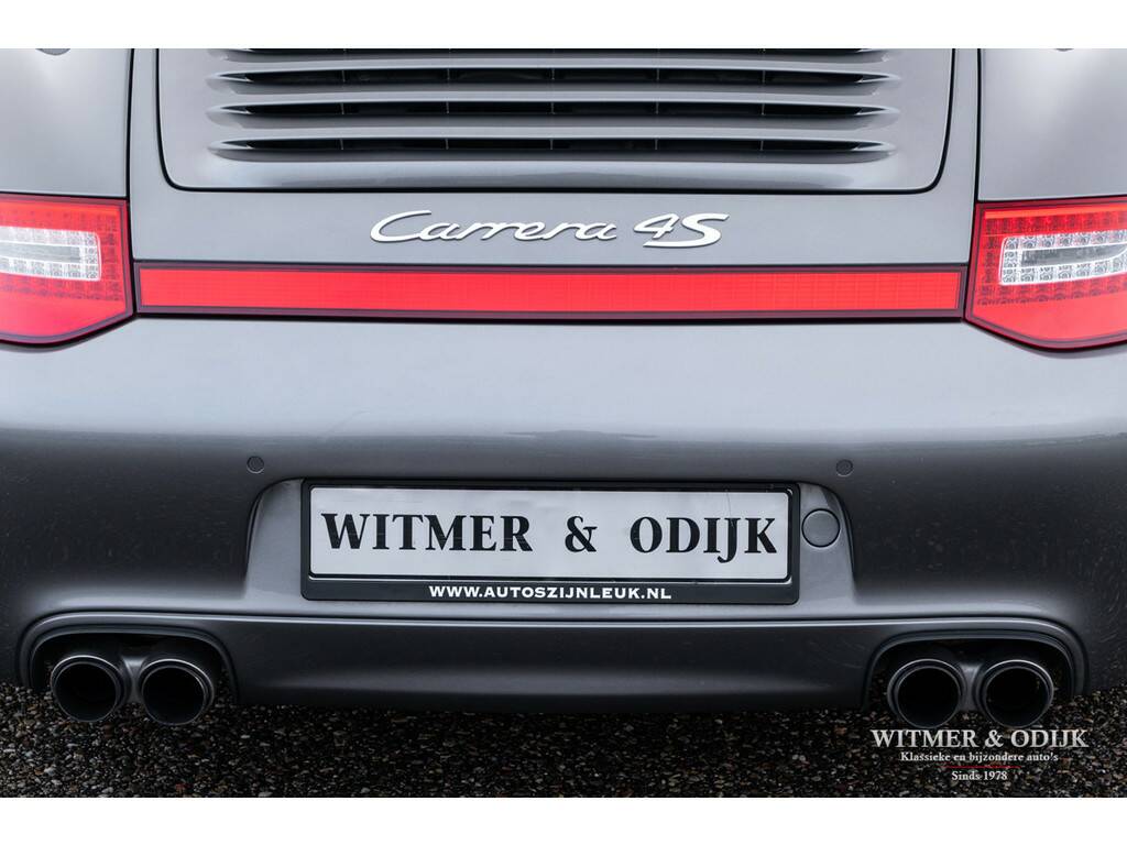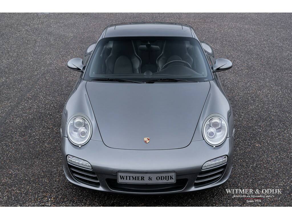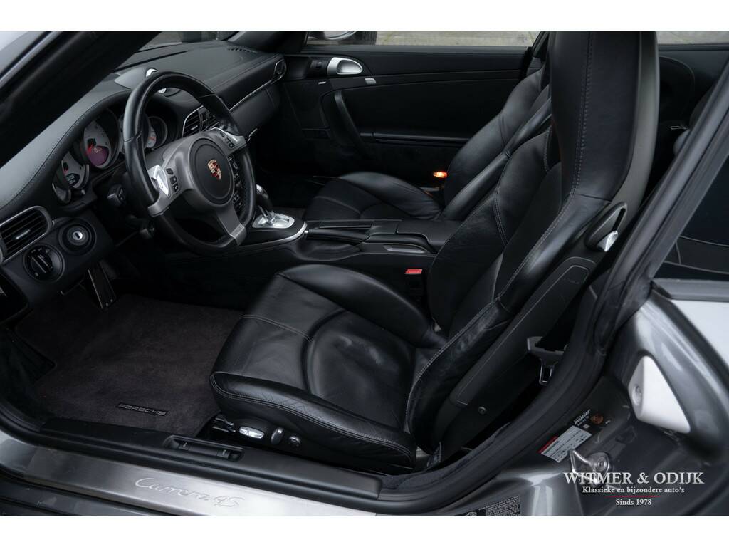 In 2008 diende zich een face-lift van de zo succesvolle Porsche 997 aan. Optisch beperkte zich dat alleen tot andere lichtunits en een aantal details in het interieur. Veel spectaculairder nieuws was dat Porsche voor het eerst in een serie geproduceerde 911 de automatische versnellingsbak met dubbele koppeling ging toepassen. In feite is de 997 voorzien van twee gezamenlijk gemonteerde semi-automaten die op afstand met de hand middels knoppen op het stuur te bedienen zijn en ook allebei een koppeling hebben. Vandaar de afkorting PDK die staat voor Porsche Doppel Kupplung. De tweede bak zet de opvolgende versnelling waarin de eerste bak staat vast klaar middels de dubbele koppeling terwijl de ene koppeling ontkoppeld en de ander koppelt. Hierdoor zijn de schakeltijden voor het eerst sneller dan wanneer men handmatig schakelt. De tot dat moment gebruikte Tiptronic automaat was een conventionele automaat met een koppelomvormer die flink wat energie gebruikte dus voelbaar snelheid inleverde. Met de PDK techniek behoorde dat ook bij automatisch rijden tot het verleden. Ook de motor werd gemodificeerd, de inhoud werd vergroot, waarbij het vermogen steeg naar 385pk in de S versie, en het onderstel werd verbeterd. Zo kreeg de PDK auto het instelbare sportonderstel met Active Suspension Management wat ook de GT3 destijds had en werd het uitlaatsysteem herzien voor een sportievere klank. Kortom het loont om te investeren in een tweede serie 997 mét PDK. Economisch slim is het dan om een PDK auto uit het eerste jaar te nemen. Wanneer het dan ook nog de fraaiste Carrera 4S variant met de bredere Turbo carrosserie is likt menig liefhebber zijn vingers af. Tel hier dan ook nog eens de uitgebreide optielijst en het goede verhaal achter de auto bij op, uw ideale 911 staat wellicht bij ons. Zeer compleet uitgevoerd met o.a. automatische climat control, Porsche Active Suspension Management, Porsche Stability Management, boordcomputer, automatische PDK versnellingsbak, 19 inch Carrera 4S velgen, BiXenon verlichting, een volledig in leer uitgevoerd interieur, Porsche Communication Management met DVD navigatie en CD wisselaar, Sport Chrono pakket, stoelverwarming, verstelbaar sportstuur met radio/telefoon bediening, elektrisch schuifdak, elektrisch verstelbare sportstoelen met geheugen, Bose soundsysteem met subwoofer, xenon verlichting, schakelbare sportuitlaat, verlichte logo's in de dorpels, etc. In stijlvol Seal Grey Metallic uitgevoerde carrosserie, volledig origineel en schadevrij. Geen enkel zichtbaar gebruikssporen of vermeldenswaardige steenslag. Mooie lakkwaliteit met diepe glans. Zelfs de in de wagenkleur meegespoten bumpers hebben geen beschadigingen of parkeervegen. De indrukwekkende brede heupen zijn voorzien van originele en onbeschadigde steenslagstickers. Al het glas is origineel en vrij van steenslag. Laat u niet misleiden door de kilometerstand, deze Carrera 4S is een bijna als nieuw uitziende goed verzorgde liefhebbersauto, dat is duidelijk zichtbaar. Je hebt de auto en je hebt het verhaal bij de auto, zeggen wij wel eens. In dit geval is dat verhaal dik in orde; origineel, schadevrij, dealer onderhouden, serviceboekje netjes gestempeld en facturen voorhanden.