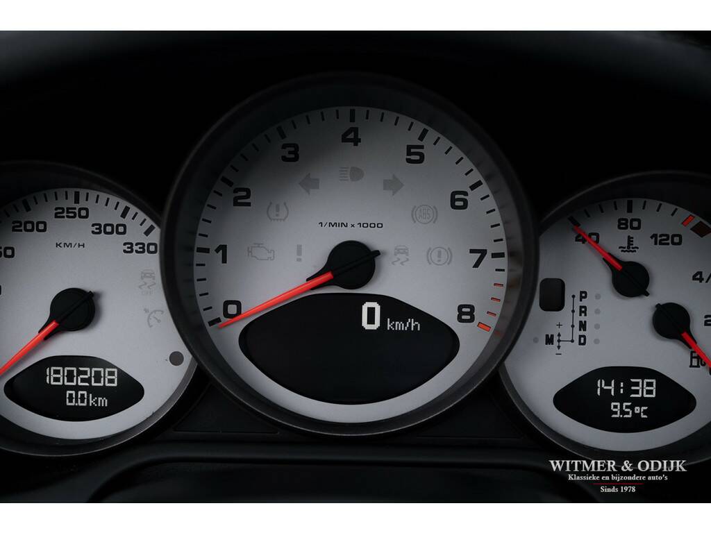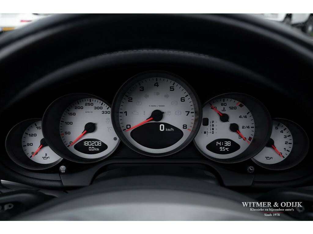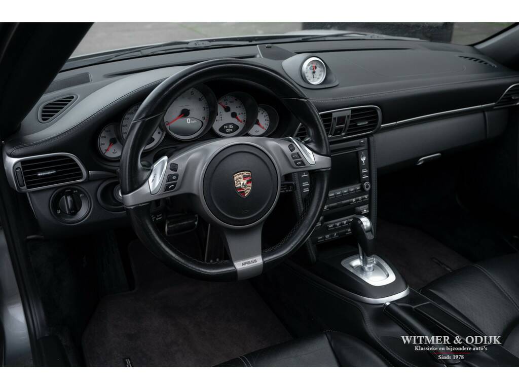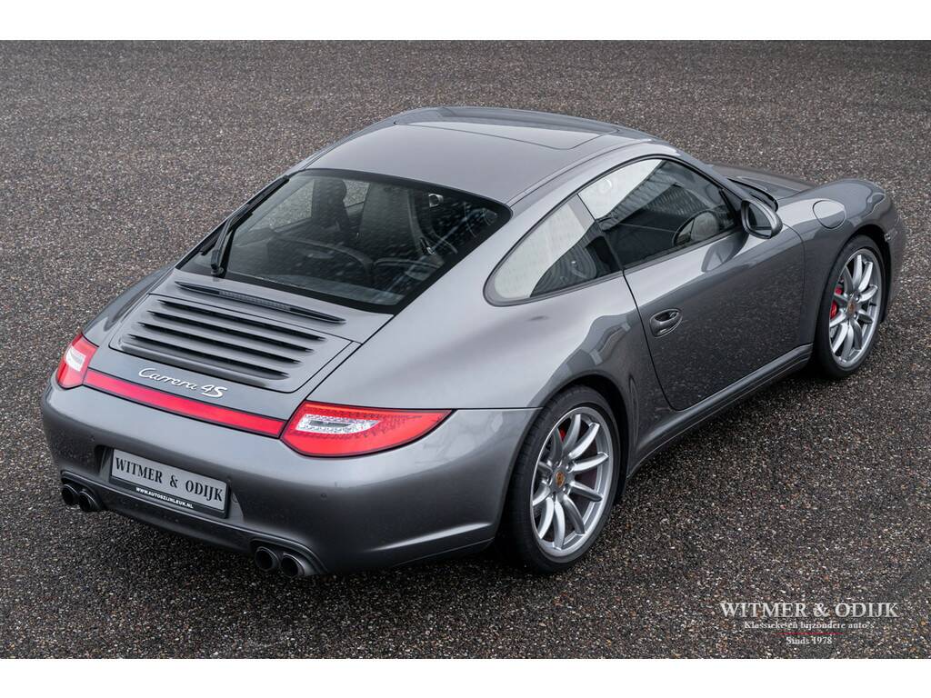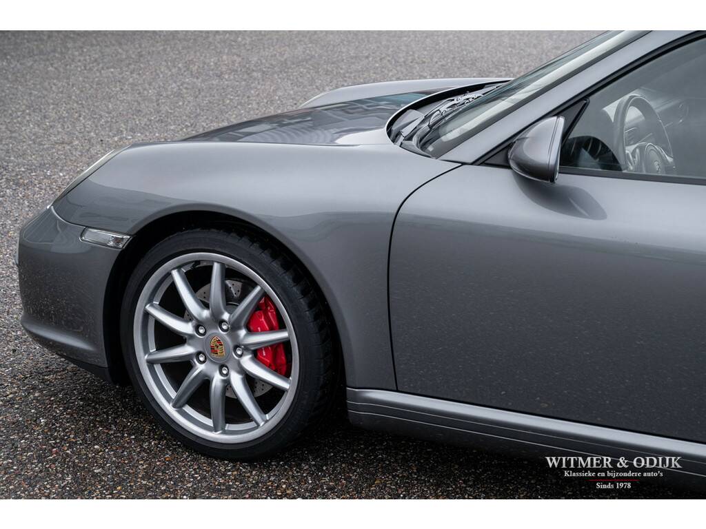 In 2008 diende zich een face-lift van de zo succesvolle Porsche 997 aan. Optisch beperkte zich dat alleen tot andere lichtunits en een aantal details in het interieur. Veel spectaculairder nieuws was dat Porsche voor het eerst in een serie geproduceerde 911 de automatische versnellingsbak met dubbele koppeling ging toepassen. In feite is de 997 voorzien van twee gezamenlijk gemonteerde semi-automaten die op afstand met de hand middels knoppen op het stuur te bedienen zijn en ook allebei een koppeling hebben. Vandaar de afkorting PDK die staat voor Porsche Doppel Kupplung. De tweede bak zet de opvolgende versnelling waarin de eerste bak staat vast klaar middels de dubbele koppeling terwijl de ene koppeling ontkoppeld en de ander koppelt. Hierdoor zijn de schakeltijden voor het eerst sneller dan wanneer men handmatig schakelt. De tot dat moment gebruikte Tiptronic automaat was een conventionele automaat met een koppelomvormer die flink wat energie gebruikte dus voelbaar snelheid inleverde. Met de PDK techniek behoorde dat ook bij automatisch rijden tot het verleden. Ook de motor werd gemodificeerd, de inhoud werd vergroot, waarbij het vermogen steeg naar 385pk in de S versie, en het onderstel werd verbeterd. Zo kreeg de PDK auto het instelbare sportonderstel met Active Suspension Management wat ook de GT3 destijds had en werd het uitlaatsysteem herzien voor een sportievere klank. Kortom het loont om te investeren in een tweede serie 997 mét PDK. Economisch slim is het dan om een PDK auto uit het eerste jaar te nemen. Wanneer het dan ook nog de fraaiste Carrera 4S variant met de bredere Turbo carrosserie is likt menig liefhebber zijn vingers af. Tel hier dan ook nog eens de uitgebreide optielijst en het goede verhaal achter de auto bij op, uw ideale 911 staat wellicht bij ons. Zeer compleet uitgevoerd met o.a. automatische climat control, Porsche Active Suspension Management, Porsche Stability Management, boordcomputer, automatische PDK versnellingsbak, 19 inch Carrera 4S velgen, BiXenon verlichting, een volledig in leer uitgevoerd interieur, Porsche Communication Management met DVD navigatie en CD wisselaar, Sport Chrono pakket, stoelverwarming, verstelbaar sportstuur met radio/telefoon bediening, elektrisch schuifdak, elektrisch verstelbare sportstoelen met geheugen, Bose soundsysteem met subwoofer, xenon verlichting, schakelbare sportuitlaat, verlichte logo's in de dorpels, etc. In stijlvol Seal Grey Metallic uitgevoerde carrosserie, volledig origineel en schadevrij. Geen enkel zichtbaar gebruikssporen of vermeldenswaardige steenslag. Mooie lakkwaliteit met diepe glans. Zelfs de in de wagenkleur meegespoten bumpers hebben geen beschadigingen of parkeervegen. De indrukwekkende brede heupen zijn voorzien van originele en onbeschadigde steenslagstickers. Al het glas is origineel en vrij van steenslag. Laat u niet misleiden door de kilometerstand, deze Carrera 4S is een bijna als nieuw uitziende goed verzorgde liefhebbersauto, dat is duidelijk zichtbaar. Je hebt de auto en je hebt het verhaal bij de auto, zeggen wij wel eens. In dit geval is dat verhaal dik in orde; origineel, schadevrij, dealer onderhouden, serviceboekje netjes gestempeld en facturen voorhanden.