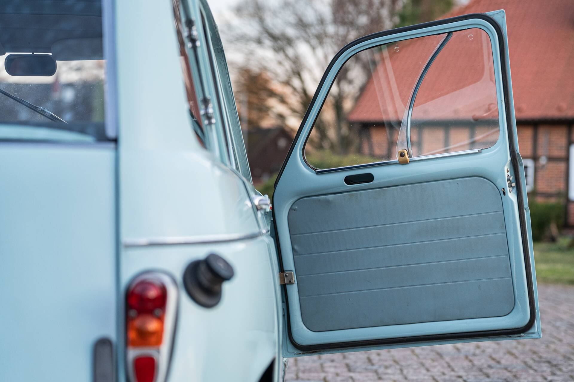 Sichern Sie sich also ein Stück Geschichte mit diesem schönen hellblauen R4 von 1962. Hierbei handelt es sich um einen extrem seltenen R4 Super mit großem Faltdach ab Werk. Quasi die blaue Mauritius unter den R4. Das Chassis wurde hier und da schon geschweißt und versiegelt. Selbstverständlich wurde auch die Lackierung vor vielen Jahren erneuert. Der 839ccm Motor leistet 26 PS und läuft wie eine Nähmaschine. Deutsche Papiere mit H Zulassung liegen vor.